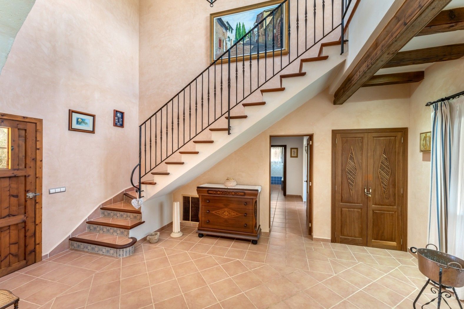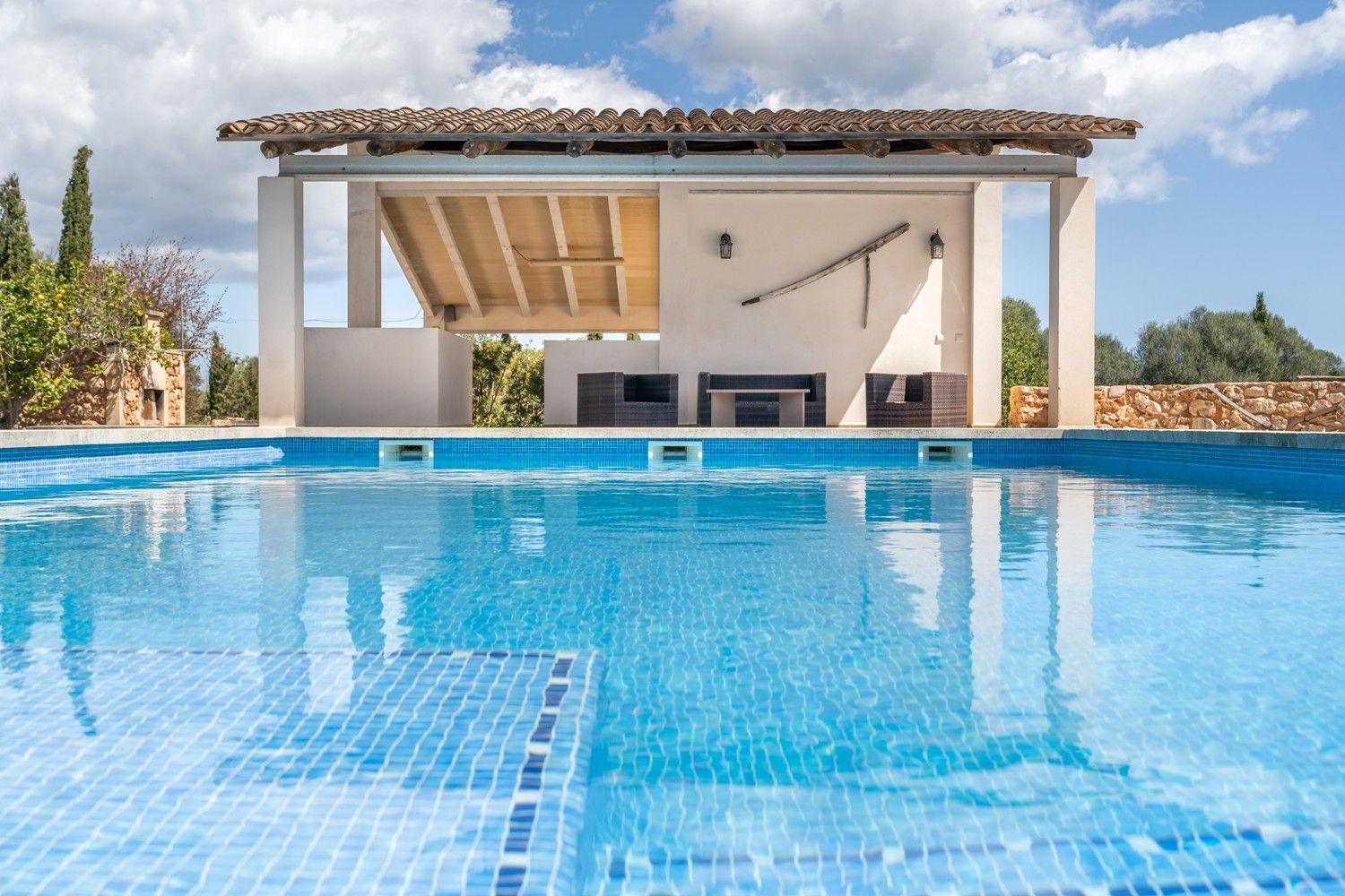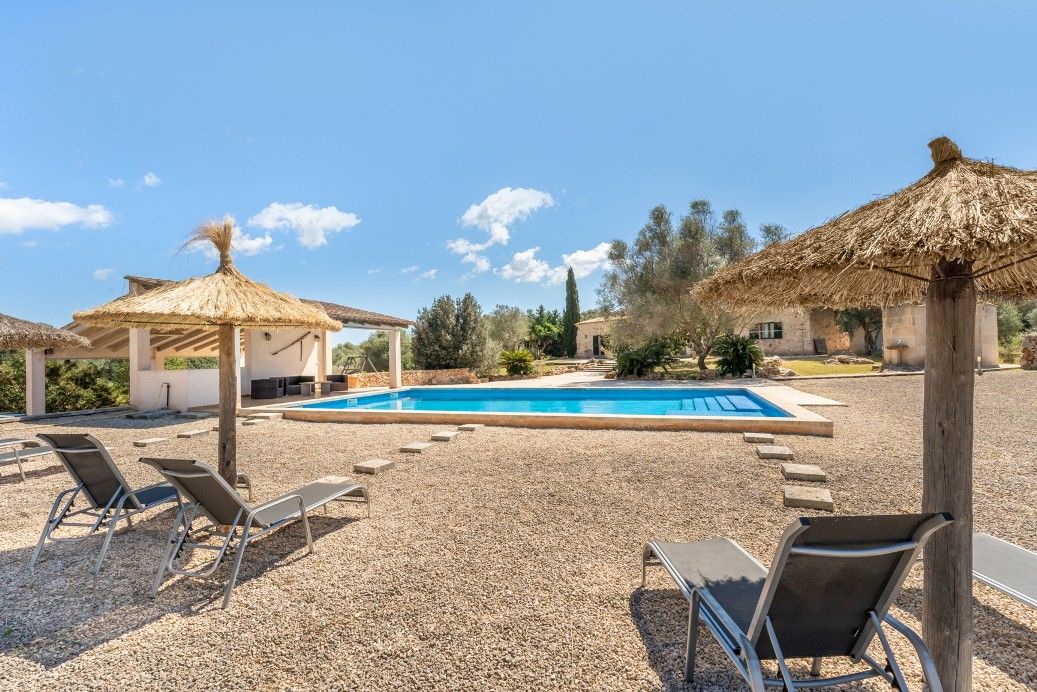 Cette finca typique de Majorque est située sur un terrain d'environ 14.000 m² entre Es Llombards et Santanyí. Elle possède l'une des licences de location de vacances les plus recherchées, pouvant accueillir jusqu'à 10 personnes. La propriété a été construite en 2009 et est en très bon état, mais il faut tenir compte du fait qu'elle n'a pas de certificat d'occupation. Elle dispose d'un hall d'entrée spacieux au rez-de-chaussée, d'un salon, d'une grande salle à manger avec cuisine ouverte, de quatre chambres et de trois salles de bains (dont une en suite). Depuis le salon, on accède à une terrasse couverte d'environ 25 m². Il y a également un débarras et une buanderie à ce niveau. A l'étage supérieur se trouve la chambre principale avec salle de bains en suite. Le chauffage au sol et l'air conditionné assurent une température agréable dans la maison tout au long de l'année. La finca dispose d'une grande piscine d'environ 84 m² avec terrasse couverte et espace barbecue. Il y a également deux places de parking couvertes, une aire de jeux pour enfants et une table de ping-pong. Il s'agit d'une propriété facile à entretenir, située dans un quartier très calme qui favorise les locations de vacances, le point de départ idéal pour explorer l'île. Un investissement hautement recommandé.