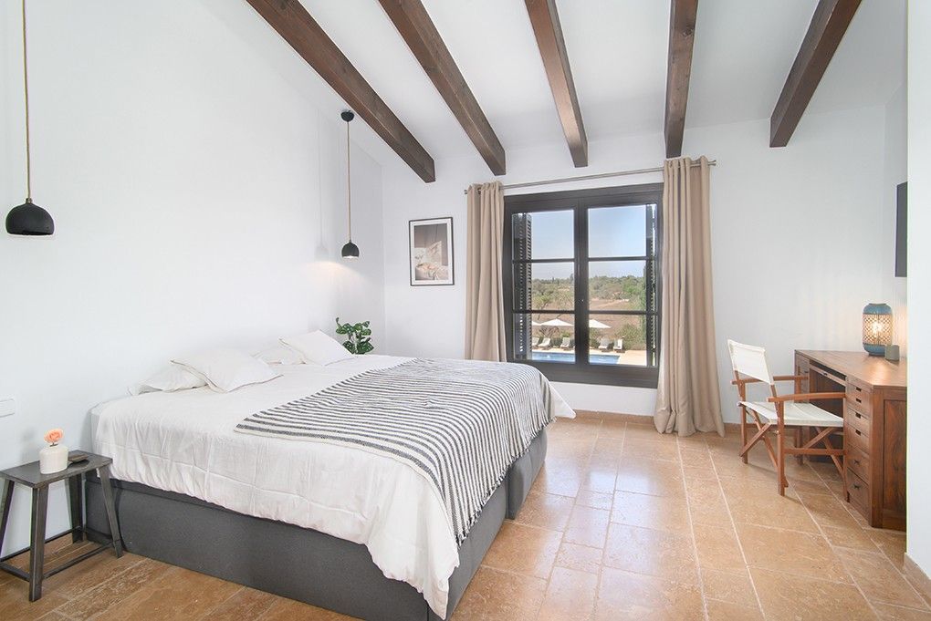 Cette propriété de luxe, construite en 2008 avec des matériaux de première qualité, se trouve dans la campagne de la commune de Llucmajor. Une allée bien entretenue mène à l'entrée de la maison. En entrant dans la propriété, le cœur bat plus vite dans le magnifique salon/salle à manger avec cheminée, accès à la terrasse et vue sur la piscine. S'y ajoutent une cuisine entièrement équipée, une chambre à coucher et des toilettes pour les invités. L'escalier en pierre naturelle discrètement éclairé mène au premier étage de la propriété avec trois chambres et trois salles de bains en suite et une galerie avec vue sur Llucmajor. En quelques minutes, on accède à toutes les commodités, comme les magasins, les banques, les restaurants, les cafés, les marchés hebdomadaires, les hôtels 5 étoiles, les terrains de golf et de tennis, les spas, les centres équestres ainsi que les médecins et les pharmacies. Autres extras : double garage, deux grands débarras, piscine, barbecue, cheminée, interphone, système d'alarme.