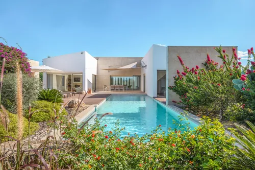 La maison est conçue sur un seul étage et en plan de loft ouvert, ce qui donne une sensation d'espace, de lumière et de sérénité. L'espace principal comprend une suite parentale spacieuse, tandis que deux chambres d'amis - chacune avec sa propre salle de bains et un accès séparé - offrent un maximum d'intimité et de confort.