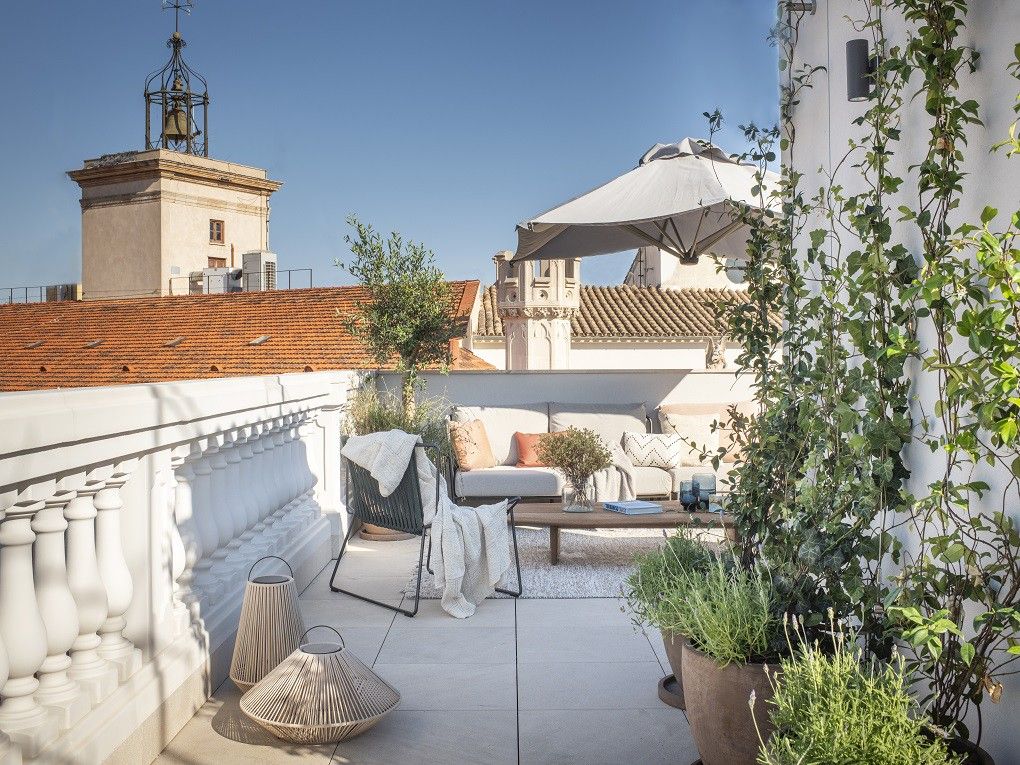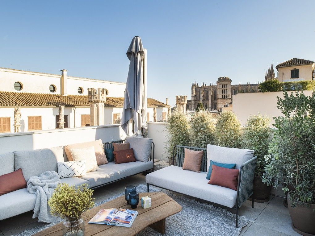 Cette maison de ville exquise, située au cœur de la vieille ville, s'étend sur cinq étages et a été récemment rénovée au plus haut niveau. Elle allie le raffinement moderne à une élégance intemporelle et n'utilise que des matériaux de première qualité. Grâce à son excellent emplacement, c'est un véritable joyau aux possibilités infinies. La propriété prête à être occupée offre trois appartements avec un total de quatre chambres à coucher, quatre salles de bains en suite et un ascenseur qui permet d'accéder directement à chaque unité. Une terrasse sur le toit avec une vue panoramique à couper le souffle complète la propriété. La maison de ville est entièrement meublée avec des pièces de designer et décorée avec de l'art contemporain soigneusement sélectionné. L'appartement du premier étage se distingue par son espace de vie ouvert et sa cuisine adjacente, qui sont reliés sans interruption. Une cheminée à gaz confère au salon chaleur et classe. La chambre à coucher calme à l'arrière est équipée d'étagères en bois fabriquées sur mesure, d'armoires et d'une penderie dans des tons verts olive doux, inspirés par l'olivier voisin de la Plaça Cort. Au deuxième étage, l'appartement offre la même distribution : un salon, une cuisine adjacente avec des fenêtres du sol au plafond qui s'ouvrent sur la Plaça Cort, ainsi qu'une chambre avec un dressing et une salle de bain en suite. Le penthouse s'étend sur deux étages : la partie inférieure comprend un salon, deux chambres et deux salles de bains en suite. Les sols en bois, le chauffage au sol, les armoires encastrées, les portes vitrées et les accents en fer apportent un confort et un luxe supplémentaires. L'étage supérieur offre de vastes espaces de vie, une salle à manger et une cuisine. Un escalier mène à la vaste terrasse sur le toit, qui offre beaucoup d'espace pour les dîners en plein air et la détente. Une vue à presque 360 degrés sur Palma vous attend. La cathédrale attire immédiatement l'attention, suivie par les montagnes et les toits de la ville. Qu'il s'agisse d'une résidence familiale ou d'une opportunité d'investissement, cette propriété exceptionnelle a tout pour plaire : des détails uniques, un excellent artisanat, des commodités modernes et une distribution bien pensée dans un emplacement exceptionnel.