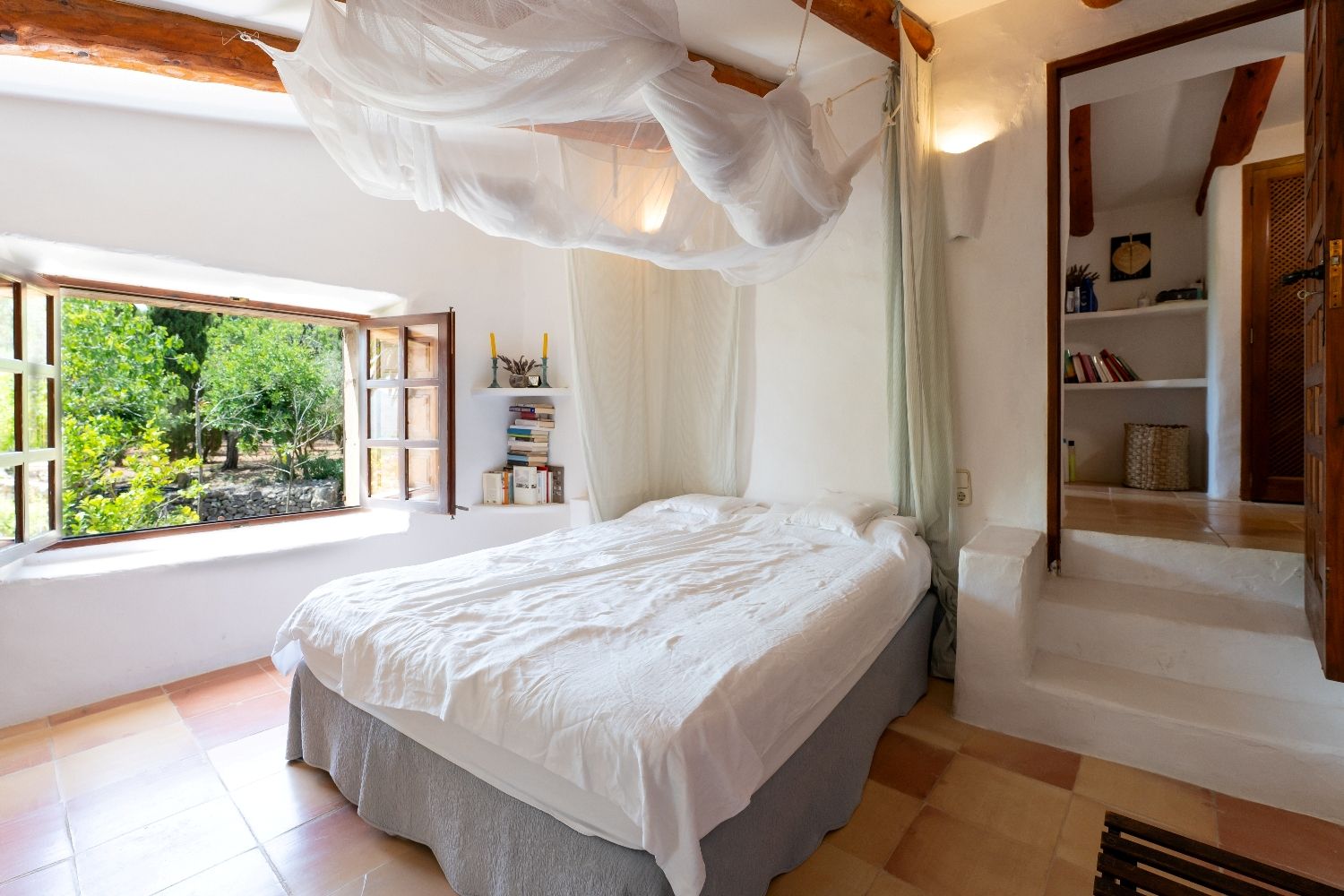 Au milieu d'une nature magnifique, nichée dans la campagne vallonnée de Son Macia, avec une intimité et une tranquillité absolues, vous trouverez cette propriété authentique avec une élégante maison d'hôtes. Vous entrez dans la maison par une entrée couverte isolée reliée à une charmante terrasse couverte et vous êtes accueillis par le charme et l'ambiance immaculés de la construction traditionnelle. Le centre de la maison est la salle à manger, qui se prolonge par un salon confortable avec cheminée et accès à une merveilleuse terrasse couverte donnant sur le magnifique jardin. Réparties sur plusieurs niveaux, les quatre chambres à coucher sont de tailles différentes et ont toutes été conçues individuellement. Trois salles de bains et des toilettes pour les invités sont disponibles. La cuisine, accessible de l'intérieur comme de l'extérieur, est très spacieuse. La maison d'amis, construite en forme de loft, impressionne par son grand espace salon-salle à manger-chambre à coucher avec cheminée, sa petite kitchenette et sa salle de douche. Une fois de plus, il y a une magnifique terrasse couverte qui offre une belle vue sur la mer. En outre, il y a une piscine avec terrasse couverte et un garage séparé. Cette propriété authentique est un véritable bijou majorquin, que l'on ne trouve plus guère dans ce style. Malgré sa situation idyllique, vous êtes rapidement à Manacor, Porto Cristo ou Porto Colom. À proximité, vous trouverez des terrains de golf, l'académie de tennis de Rafael Nadal et plusieurs marinas. L'aéroport est accessible en 50 minutes en voiture.