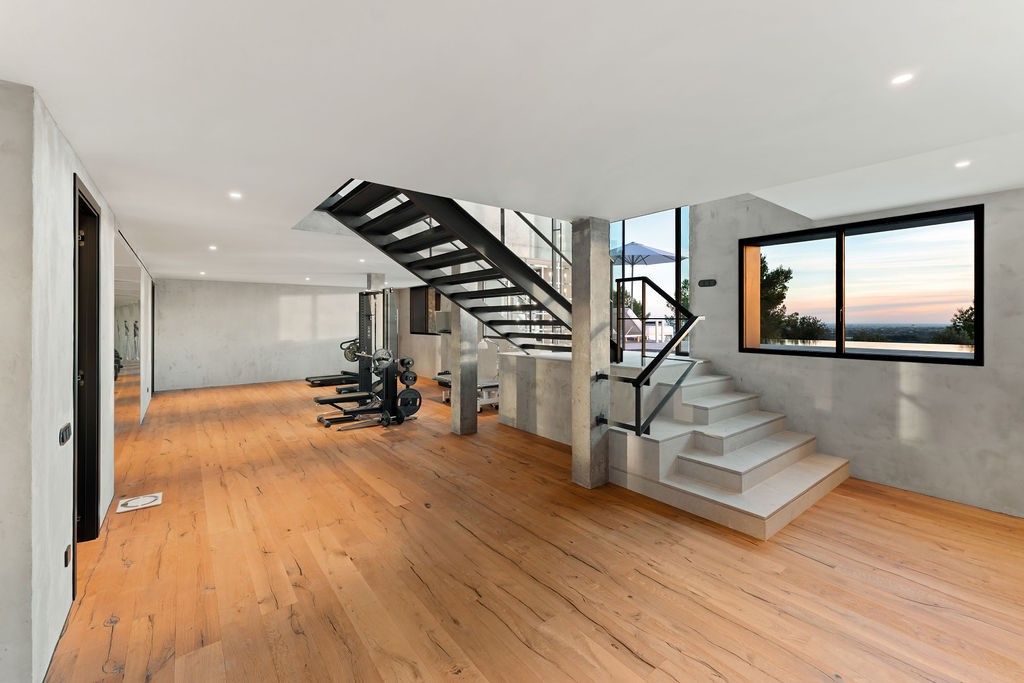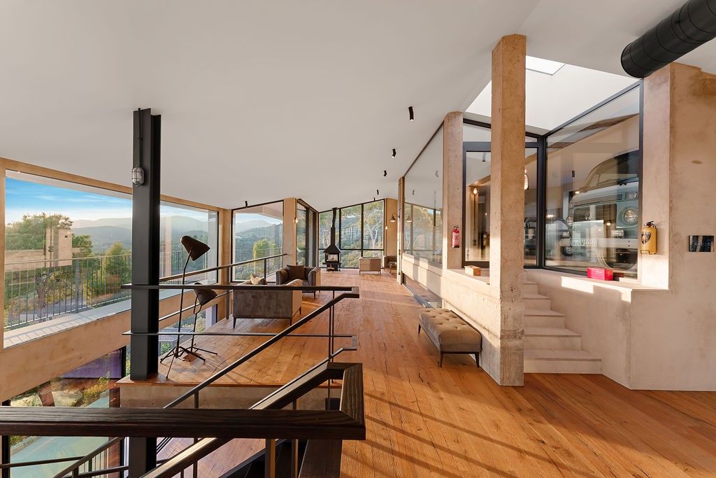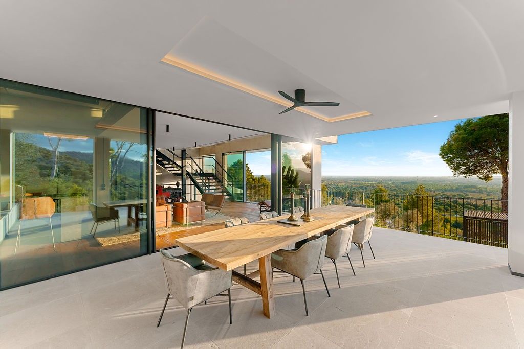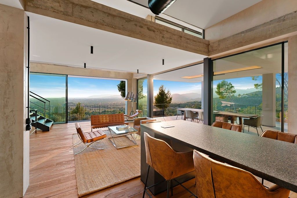 Découvrez la quintessence de la vie moderne et luxueuse dans cette villa "Bauhaus Loft Design". La propriété est parfaitement située, à 170 mètres au-dessus du niveau de la mer, directement entourée par la réserve naturelle de la montagne Tramuntana, et offre des vues panoramiques dégagées et à couper le souffle sur la baie de Palma. À quelques minutes du terrain de golf Son Termes et à 10 minutes en voiture du charme historique de la vieille ville, cette résidence allie harmonieusement un design de pointe et une variété d'équipements haut de gamme. L'intérieur présente un design industriel exquis qui associe des lignes épurées, des espaces ouverts et une palette de couleurs sophistiquées. Les grandes fenêtres, dotées d'un vitrage protecteur thermo-lumineux, inondent les œuvres d'art de l'intérieur et encadrent la vue envoûtante sur la baie.