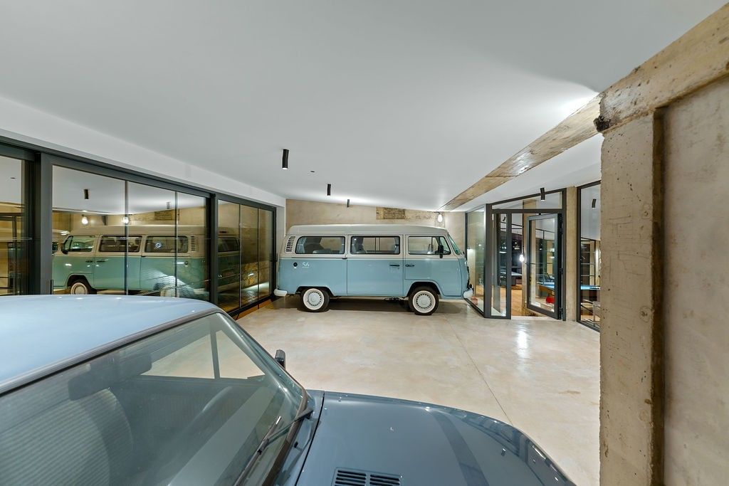 Autres caractéristiques luxueuses : double garage, abri pour trois voitures, allée privée menant au "parking de la salle d'exposition" ou à la salle de loisirs, et système photovoltaïque qui alimente le chauffage par le sol et la climatisation.