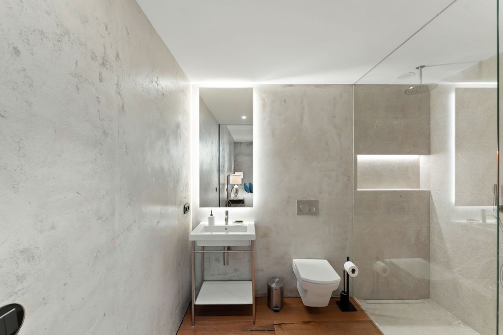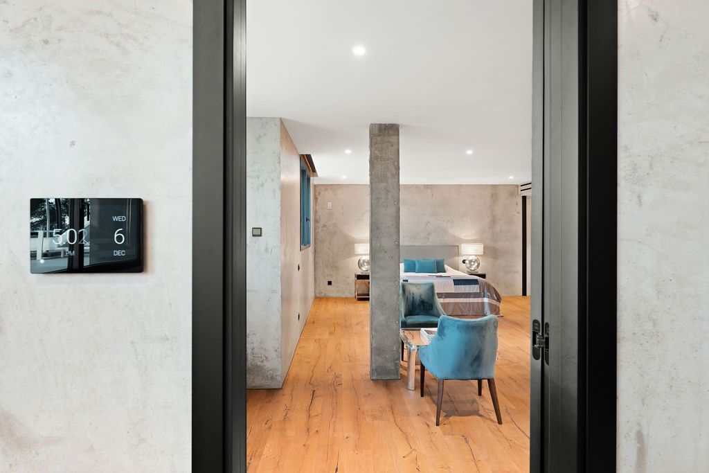 La maison dispose d'une suite parentale spacieuse avec un dressing impressionnant et une généreuse salle de bains attenante, ainsi que d'une suite d'amis avec salle de bains à l'étage inférieur. Il est également possible de créer une autre suite d'invités et une chambre supplémentaire dans la maison principale. Si nécessaire, une maison d'hôtes séparée peut être construite sur la propriété.