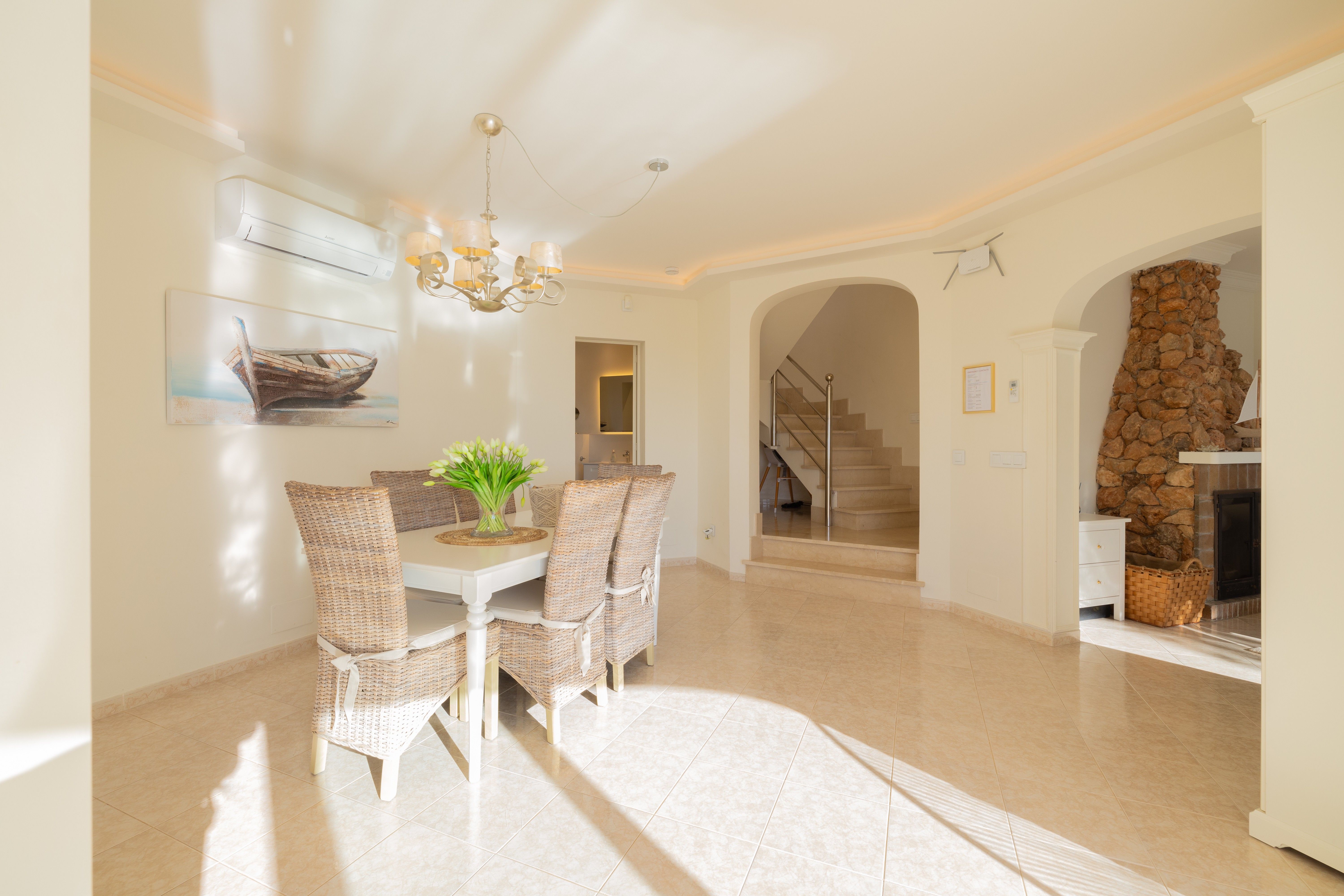 Cette incroyable propriété, située directement sur la plage de Cala Pi, s'étend sur deux étages et dispose d'un espace extérieur impressionnant. En entrant, vous serez directement accueilli par un magnifique salon qui mène d'une part à la salle à manger et d'autre part à la cuisine. De là, vous avez également accès à l'une des deux salles de bains de la maison. Depuis la cuisine, vous avez déjà une vue magnifique sur la plage. La salle à manger est spacieuse et dispose d'un accès à la terrasse. Au même étage se trouve une autre pièce avec de grandes fenêtres qui offrent également une vue magnifique ; parfaite comme espace chill-out couvert. Au deuxième étage se trouvent les chambres à coucher : trois chambres magnifiquement rénovées, qui offrent toutes une vue unique sur la plage. Toutes trois ont accès à une très grande terrasse extérieure. La deuxième salle de bains se trouve également à cet étage. L'espace extérieur, qui offre diverses possibilités, est un véritable bijou. Outre la piscine d'eau salée chauffée, cet espace est parfait pour les réunions de famille et les moments de convivialité entre amis. Et bien sûr, on peut aussi profiter de la vue sur la plage depuis cet endroit. Cette propriété offre le privilège de profiter du climat méditerranéen en toute intimité, tout en étant à quelques minutes de la spectaculaire plage de Cala Pi. De plus, elle constitue une fantastique opportunité d'investissement car elle est dotée d'une licence de location saisonnière. Autres caractéristiques de l'équipement : Cheminée, climatisation split, licence ETV pour 5, terrasse, véranda, jardin, piscine d'eau salée chauffée, vues incroyables, situation sur la plage, eau et électricité de ville et parking.