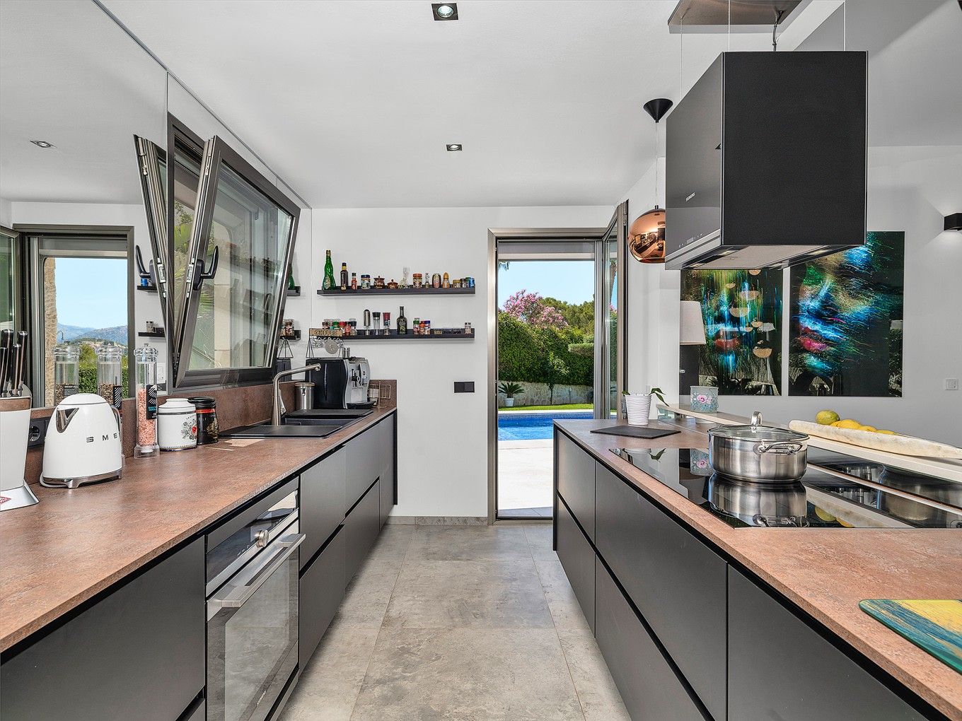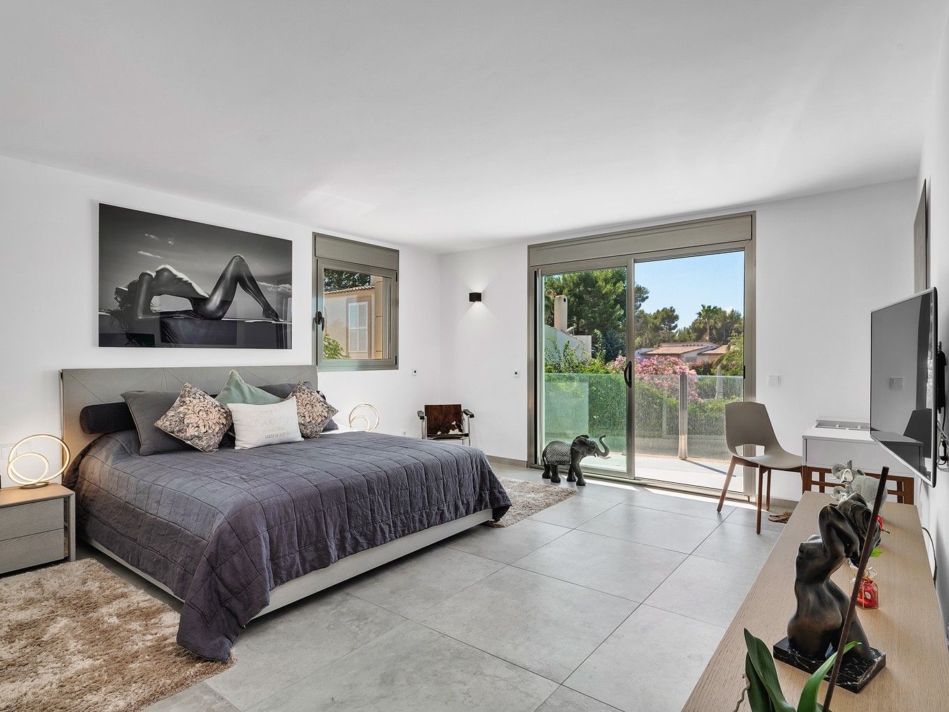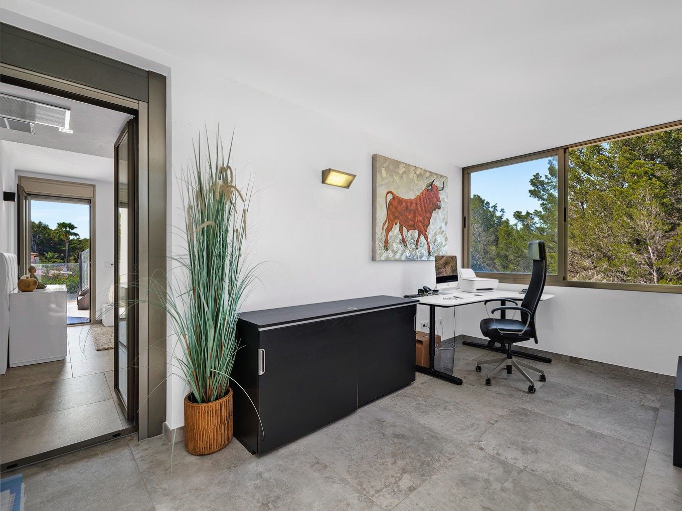 Il s'agit ici d'une spacieuse villa familiale située à Nova Santa Ponsa. La maison est en très bon état et offre beaucoup d'espace pour la famille. Le rez-de-chaussée est composé d'un grand salon et d'une salle à manger avec cuisine et débarras, l'étage inférieur donne accès au jardin et à la piscine. Il y a également un WC pour les invités, deux chambres et une salle de bain. L'étage supérieur comprend 3 chambres spacieuses avec salle de bain en suite et un bureau. Dans l'ensemble, il s'agit d'une maison moderne avec beaucoup d'espace pour se sentir bien et profiter. L'espace extérieur bien entretenu et spacieux avec une belle piscine d'eau salée offre également beaucoup d'espace et d'intimité. Depuis la terrasse au premier étage, on jouit d'une vue magnifique sur la baie de Santa Ponsa. Les autres caractéristiques d'équipement sont : Climatisation chaud/froid, chauffage au sol, pompe à chaleur, garage, etc.
