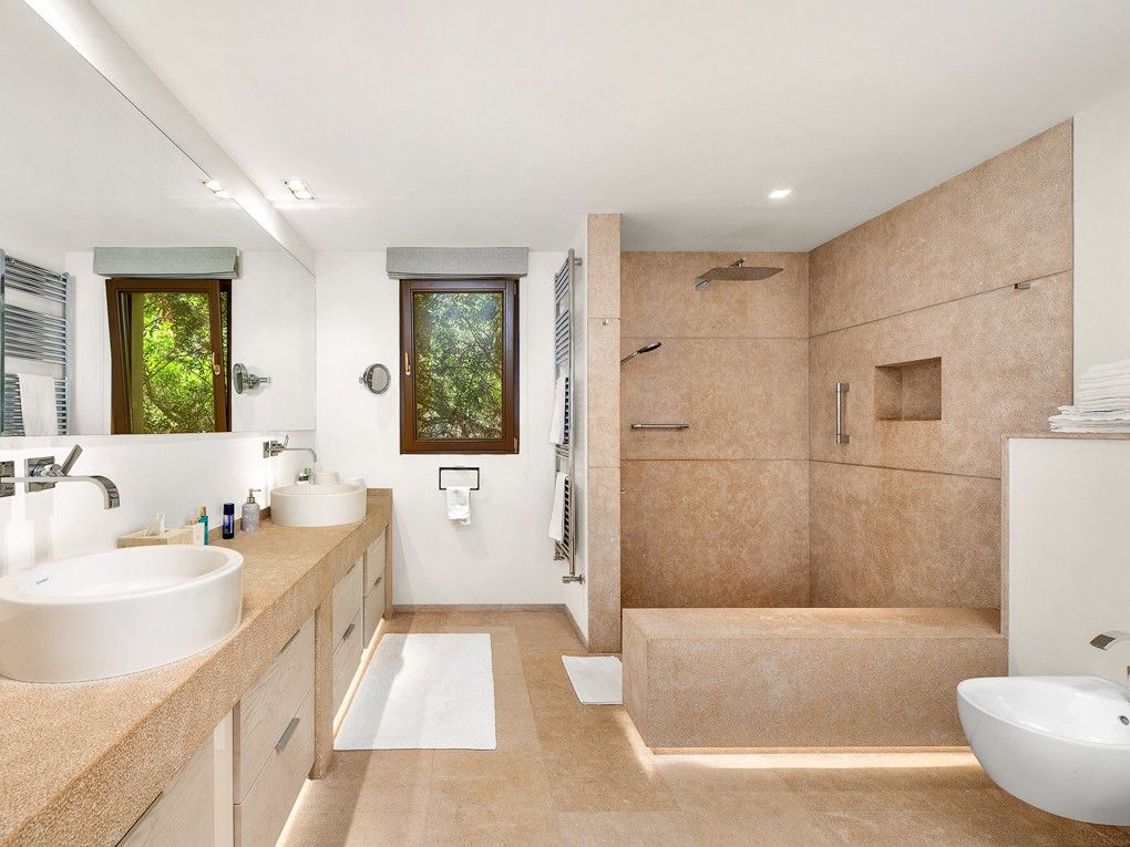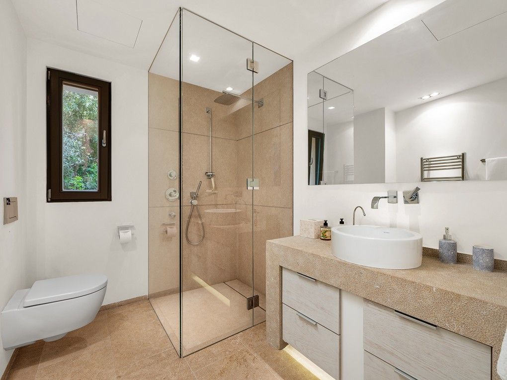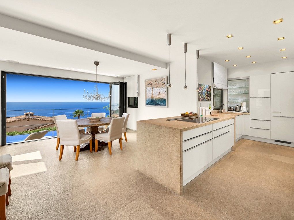 Cette villa exceptionnelle, entièrement rénovée, est située dans un endroit calme et de première classe. Elle se distingue par sa combinaison unique de vues imprenables sur la mer, d'orientation sud et de qualité exceptionnelle, ce qui lui permet de répondre à presque tous les souhaits. Lors de la rénovation, la villa a été transformée en un design architectural moderne avec des pièces inondées de lumière et des tons chauds. Seuls des matériaux de qualité ont été utilisés : Sols en pierre naturelle, robinetterie design et cuisine design exclusive, le tout intégré dans un concept d'aménagement harmonieux. L'espace extérieur offre une piscine à débordement et de vastes terrasses orientées vers différents points cardinaux, qui séduiront aussi bien les amateurs de soleil que ceux qui recherchent l'ombre. La villa dispose de trois chambres et de trois salles de bains, toutes équipées selon les normes les plus strictes. Une cheminée dans le salon apporte une touche supplémentaire de convivialité. Parmi les autres extras, on peut citer : un chauffage au sol dans toute la maison, alimenté par l'énergie solaire, une technique de domotique intelligente, la climatisation (chaud/froid), la télévision par satellite, un système d'arrosage et d'éclairage, un système d'alarme, des toilettes pour les invités et un garage.