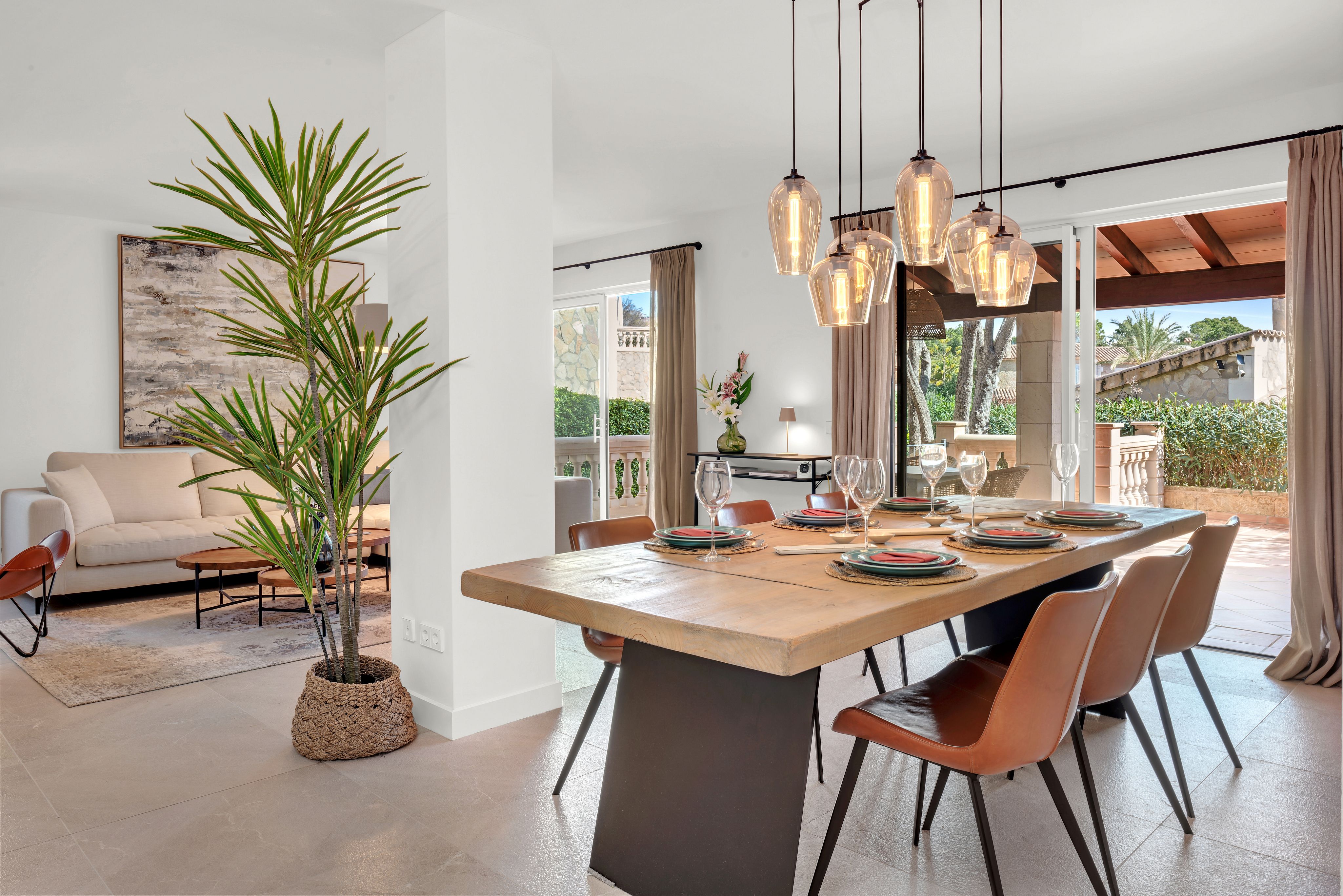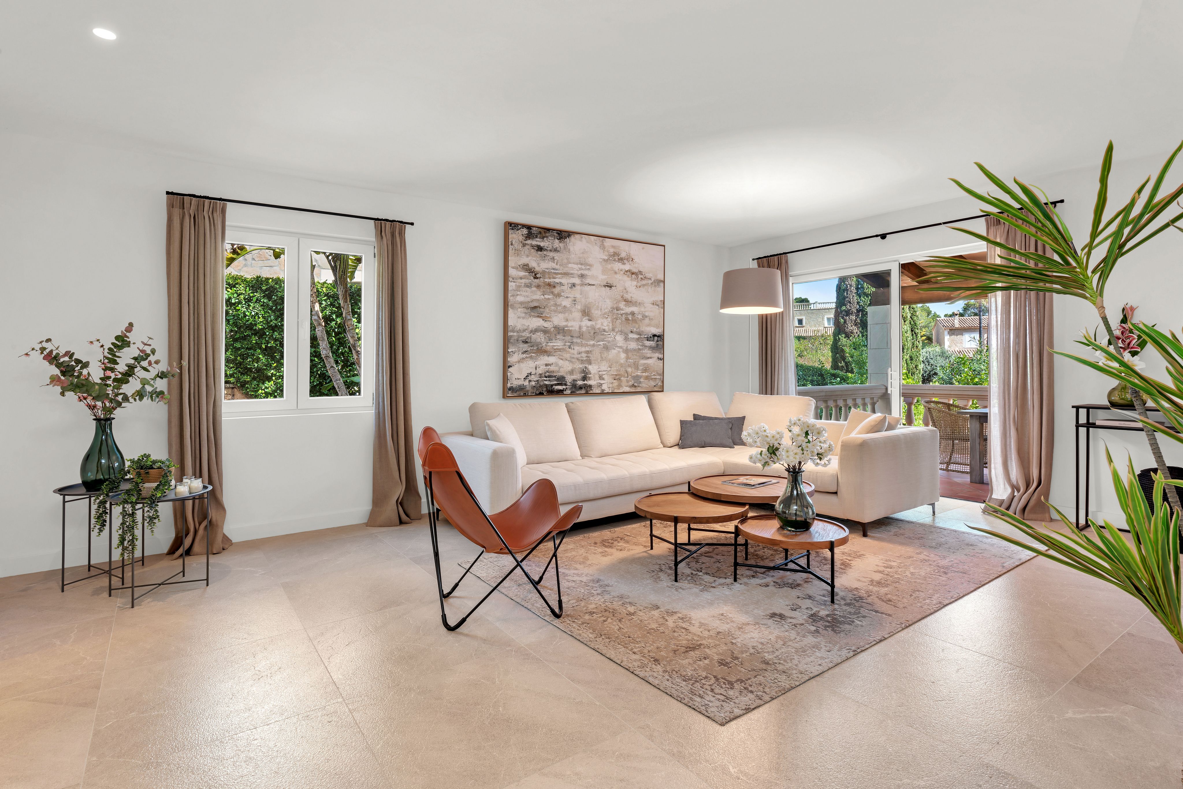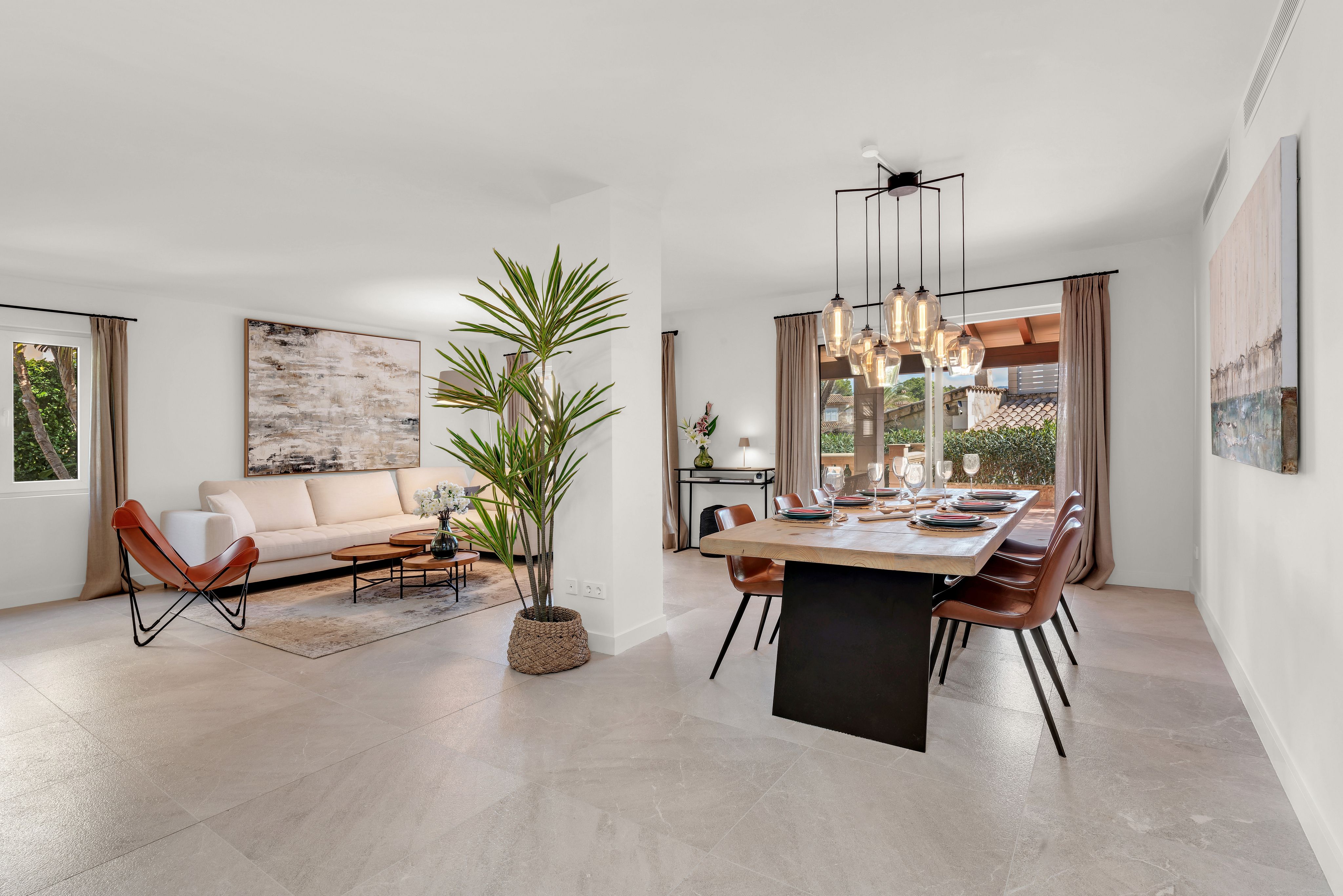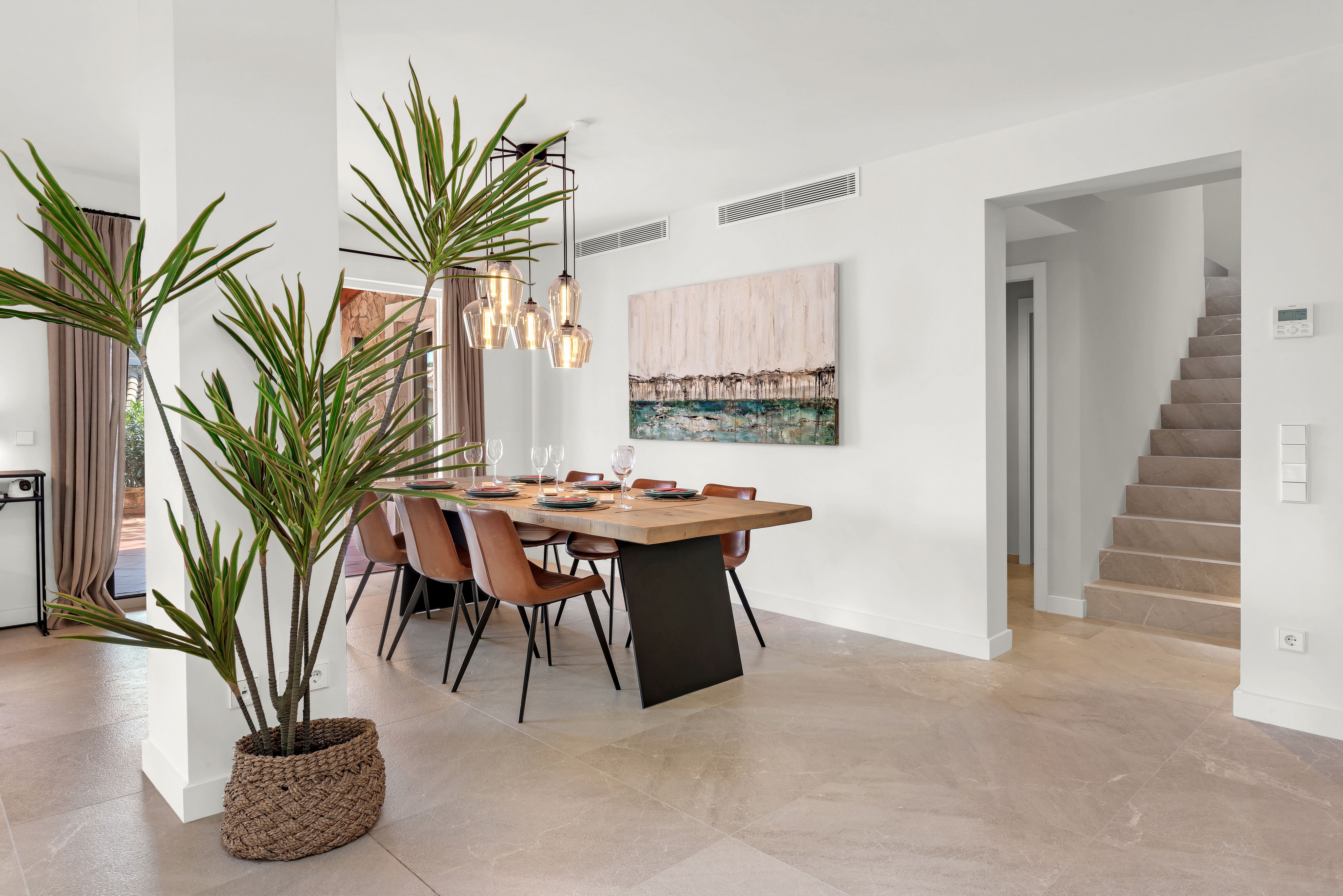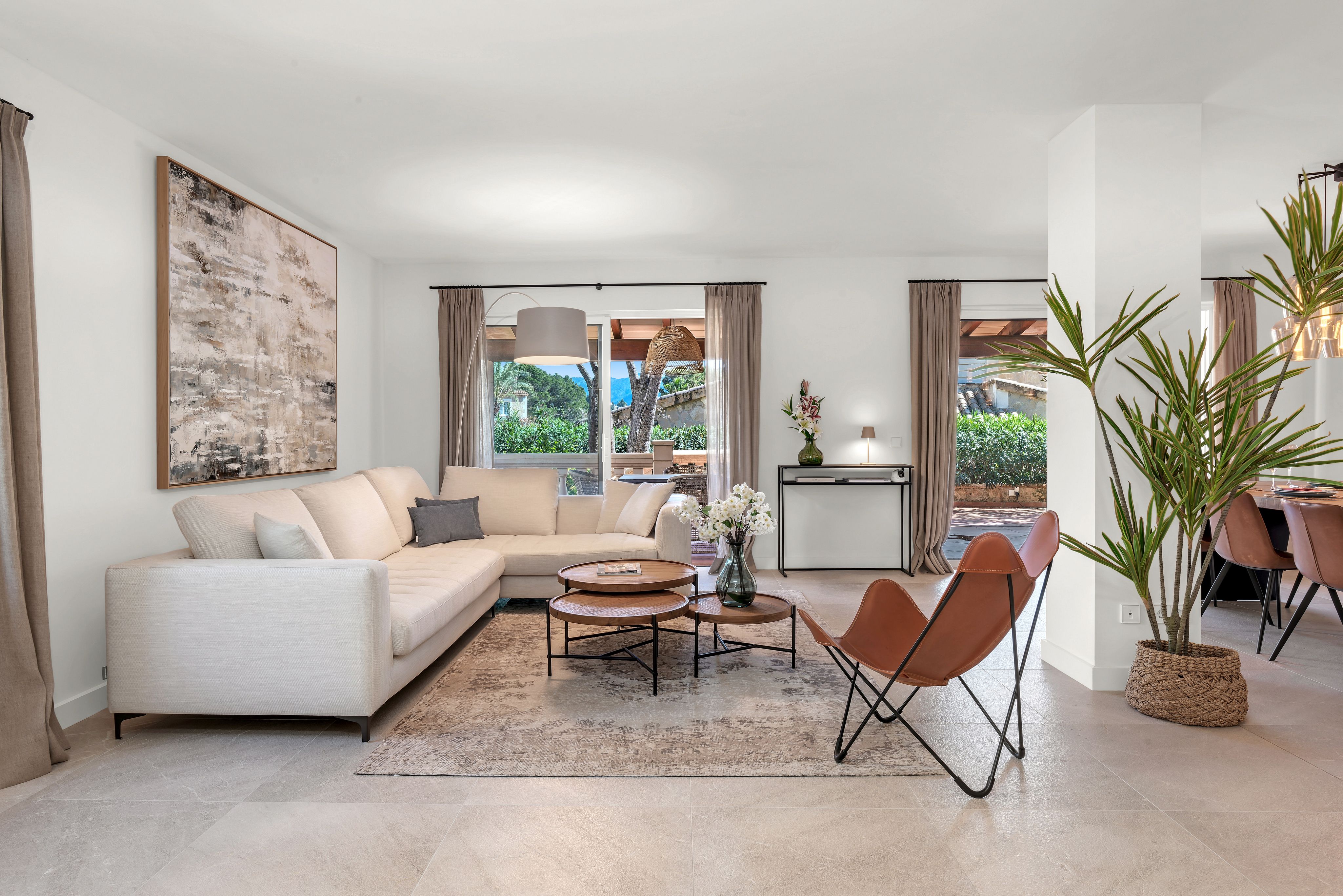 Cette confortable villa avec jardin privé, entièrement rénovée en 2020, est située dans un petit complexe résidentiel très bien entretenu avec une très grande piscine commune. Le complexe se trouve à proximité du club nautique et de la promenade du port de Puerto Andratx. Le jardin privé bien entretenu, les grandes terrasses couvertes et découvertes ainsi qu'un vaste espace piscine invitent à se détendre en plein air. Il s'agit d'une propriété de vacances idéale ! La répartition est la suivante : Au rez-de-chaussée se trouve un très grand salon/salle à manger avec sortie sur la terrasse avec BBQ, une cuisine entièrement équipée qui jouxte le salon, deux chambres à coucher, une salle de bains d'invités ainsi qu'une salle de bains entièrement équipée. À l'étage supérieur se trouvent deux chambres à coucher, un dressing et deux salles de bains. De là, on accède également à la grande terrasse sur le toit. Les autres extras incluent : Parking, climatisation chaud/froid et chauffage au sol dans toute la villa.