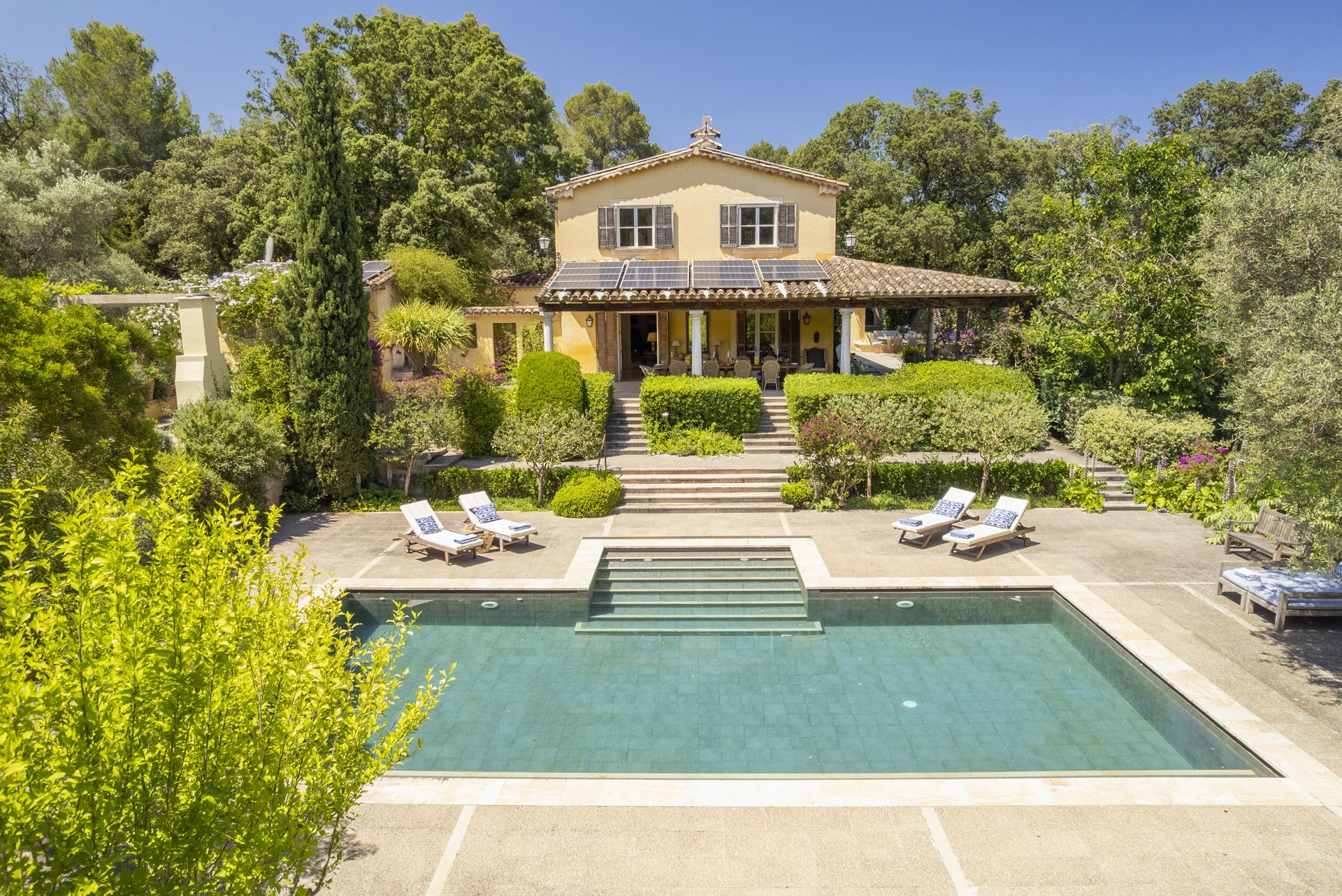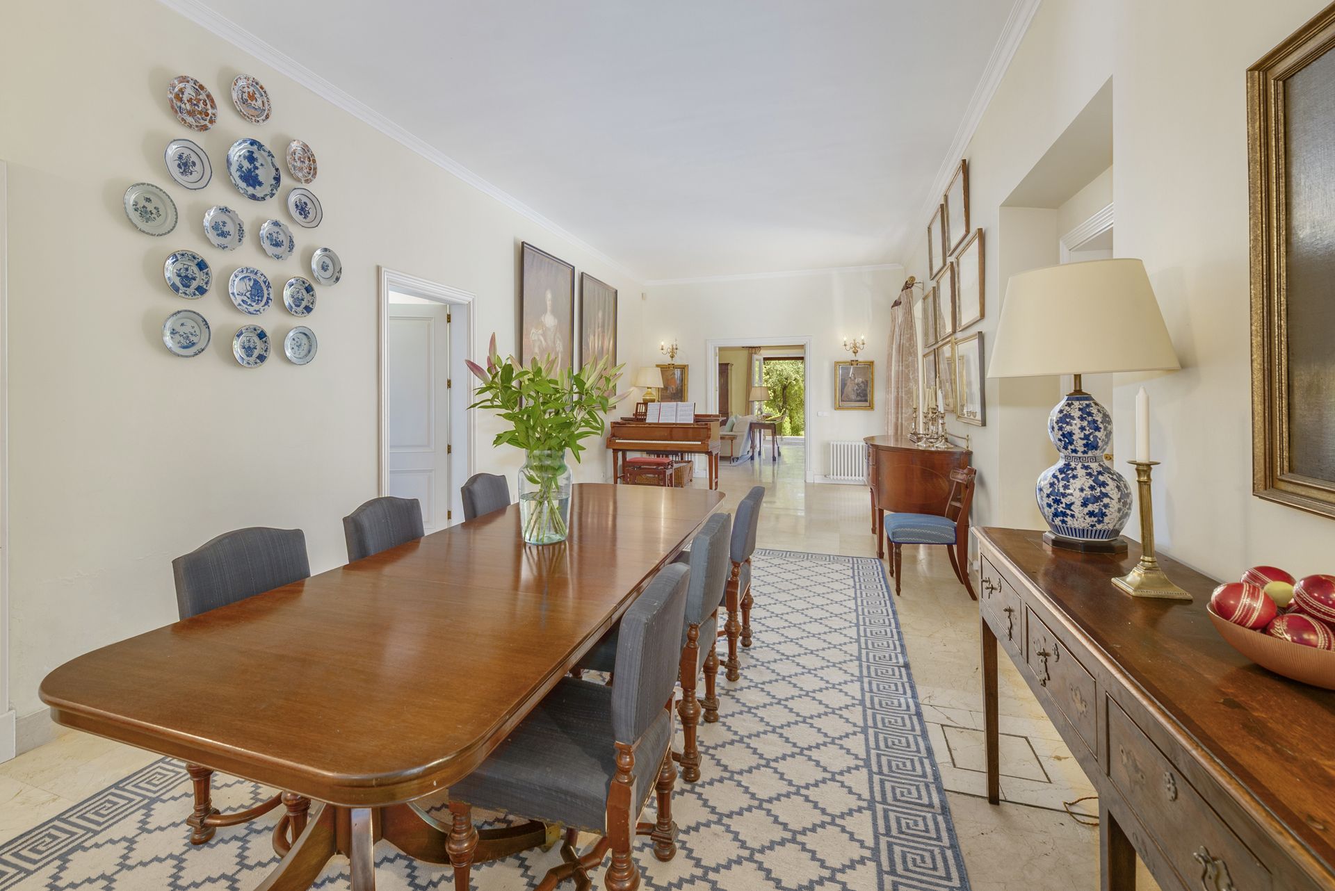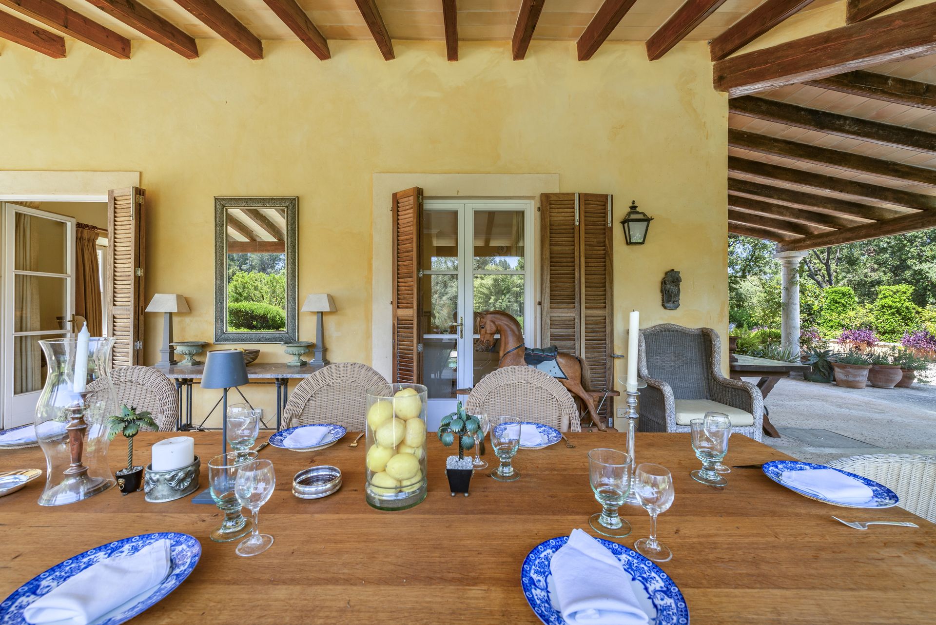 Rifugio esclusivo tra la Tramuntana e il Mar Mediterraneo Maestosa casa di campagna in assoluta privacy, nascosta dalla strada e dalle aree pubbliche, progettata per coloro che apprezzano la discrezione, la tranquillità e uno stile di vita sofisticato. Circondata dall'impareggiabile bellezza tra la Sierra de Tramuntana e lo scintillante Mar Mediterraneo, questa proprietà combina eleganza senza tempo, fascino rustico e raffinatezza moderna. La posizione è eccezionale: a soli cinque minuti dal centro storico di Pollensa, vicino al rinomato campo da golf e alle più belle spiagge dell'isola. La proprietà si estende su ampi giardini accuratamente curati, con alberi secolari, frutteti profumati e numerose aree esterne per una vita mediterranea. Ampie terrazze, eleganti verande ombreggiate e rilassanti aree chill-out creano l'ambiente perfetto per la vita all'aperto. Al centro del giardino si trova una spettacolare piscina privata di acqua salata, accompagnata da una cucina estiva completamente attrezzata - ideale per serate conviviali, cene all'aperto e momenti indimenticabili sotto il cielo stellato di Maiorca. Gli interni della casa trasmettono un'atmosfera di lusso tranquillo e calore naturale, combinando materiali di alta qualità come la pietra naturale, le travi in legno a vista e i pavimenti in terracotta, con infissi e arredi moderni e di alta qualità. La disposizione degli ambienti è stata attentamente studiata per massimizzare il comfort e la funzionalità. Il piano terra offre una camera da letto matrimoniale con bagno privato, due bagni per gli ospiti, diverse zone giorno versatili, un elegante ufficio privato e un'ampia zona giorno e cucina con accesso diretto all'esterno attraverso ampie vetrate con vista sul paesaggio. Al piano superiore si trova l'esclusiva suite padronale con vista parziale sulla baia di Pollensa e sulle aree boschive della proprietà, con il maestoso Tramuntana come sfondo imponente. Anche le altre camere da letto e le aree relax comuni si trovano su questo livello, garantendo privacy e comfort a tutti i residenti. Una proprietà unica in cui natura, privacy e stile di vita mediterraneo si fondono in perfetta armonia.