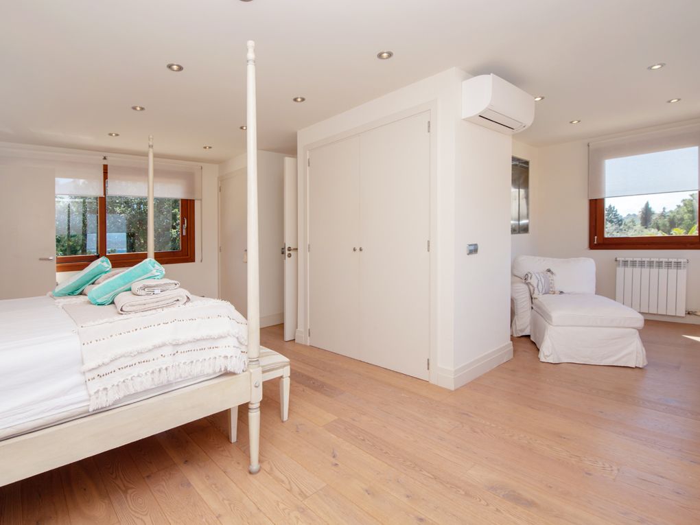 La vostra vacanza perfetta nel nord di Maiorca: La proprietà si trova sulla pittoresca collina di Bonaire, una tranquilla zona residenziale immersa nella natura. Si trova a pochi minuti dal porto turistico "Cocodrilo" e dalle bellissime spiagge di Sant Joan e Sant Pere. Il giardino, curato nei minimi dettagli, offre ampie zone verdi circondate da alberi e arbusti maturi, garantendo una privacy totale. Con una spaziosa piscina riscaldata, una terrazza con lettini per prendere il sole e un portico coperto con comodi mobili da salotto, l'area esterna è ideale per godersi il tempo con la famiglia. Sono presenti anche un'area barbecue e un bar con un'accogliente zona chill-out. Un'area semicoperta con un grande tavolo da pranzo all'aperto, situata vicino alla cucina, è completata da un tavolo da ping pong per l'intrattenimento. Senza dubbio uno spazio perfetto per rilassarsi e socializzare. All'interno, la proprietà colpisce per le sue decorazioni moderne e gli arredi di alta qualità. L'ampio soggiorno-sala da pranzo invernale con camino si combina perfettamente con la moderna cucina, completamente attrezzata per soddisfare le esigenze più complesse. Su questo livello si trovano tre camere da letto doppie: due con letti singoli e una con letto matrimoniale, oltre a due bagni, uno con doccia e l'altro con vasca. Pochi gradini portano a un secondo soggiorno, arredato con pavimenti in legno e ampi divani. Da qui, grandi porte si aprono sulla veranda che conduce al giardino e alla piscina. Adiacente a questo soggiorno si trova una camera da letto con accesso diretto al giardino, letto matrimoniale e bagno privato con doccia. La suite padronale si trova al piano superiore e offre un letto a baldacchino, una zona lettura, una cabina armadio e un bagno privato. Da questa camera gli ospiti possono godere di una vista mozzafiato sulle montagne e sulla baia di Pollensa. Una casa elegante, armoniosa e confortevole vicino al mare che offre tutto il necessario per uno stile di vita rilassato e lussuoso. NRA: ETV/8773. VUD: ESFCTU0000070430000845360000000000000000000000ETV/87737Servizi