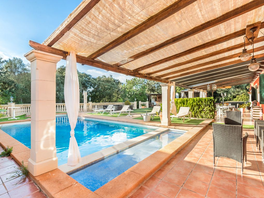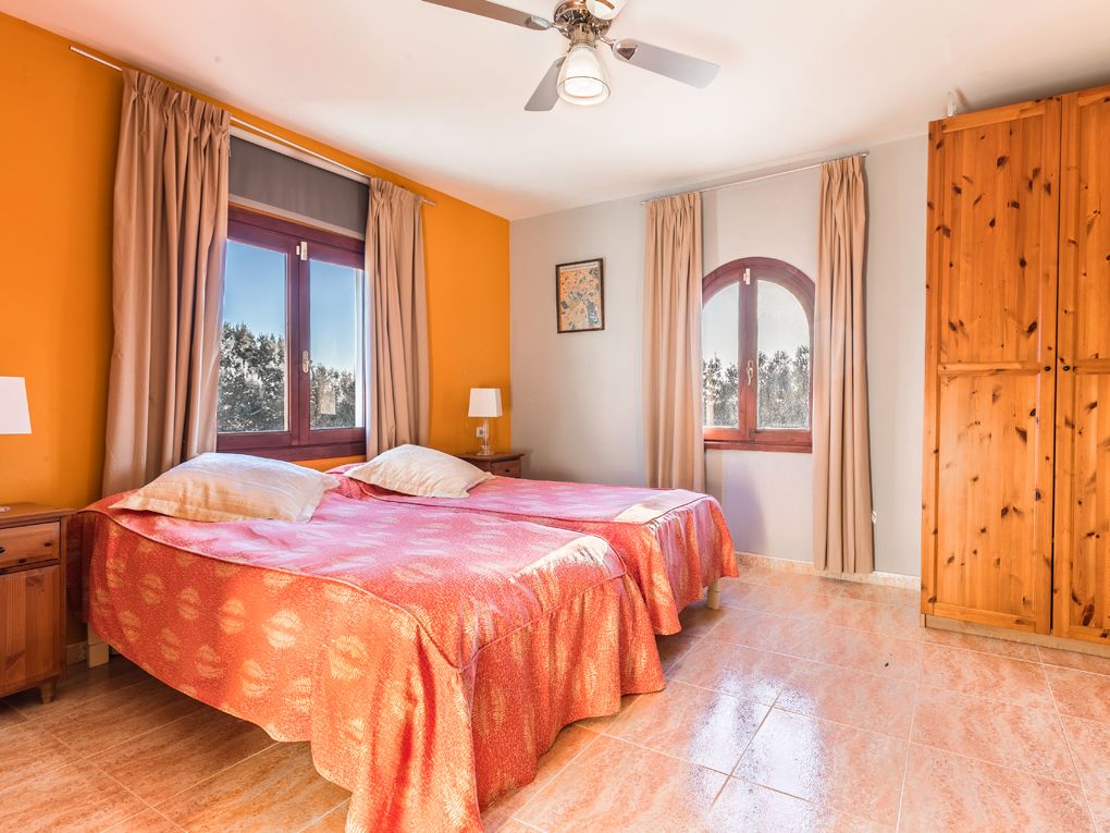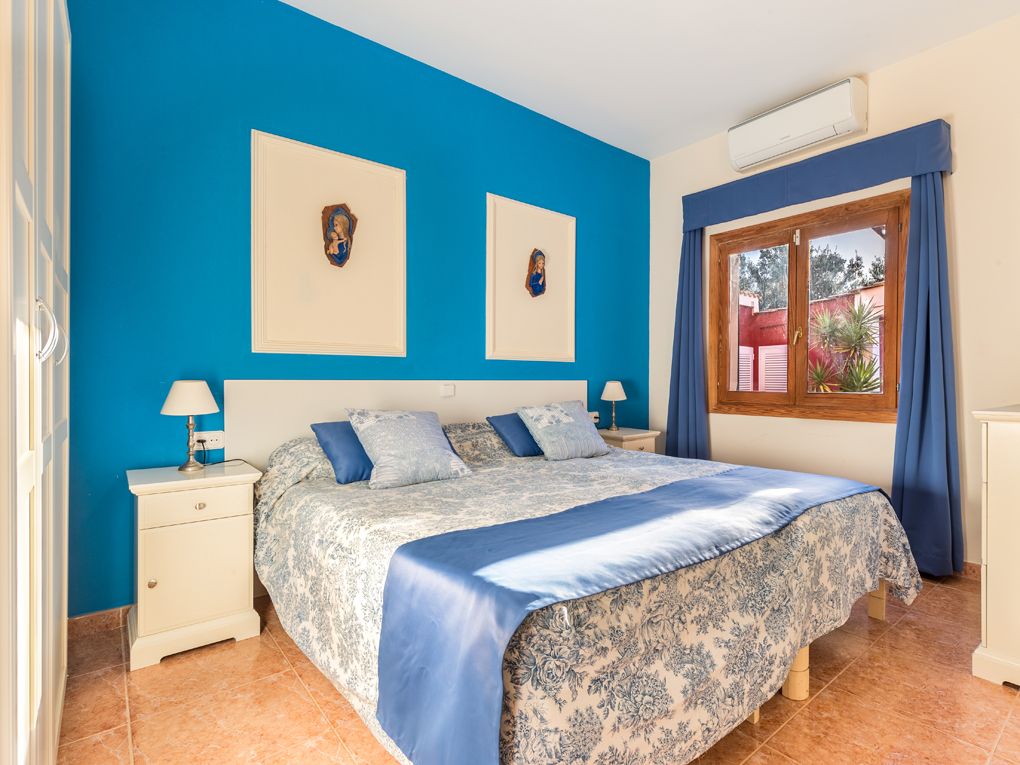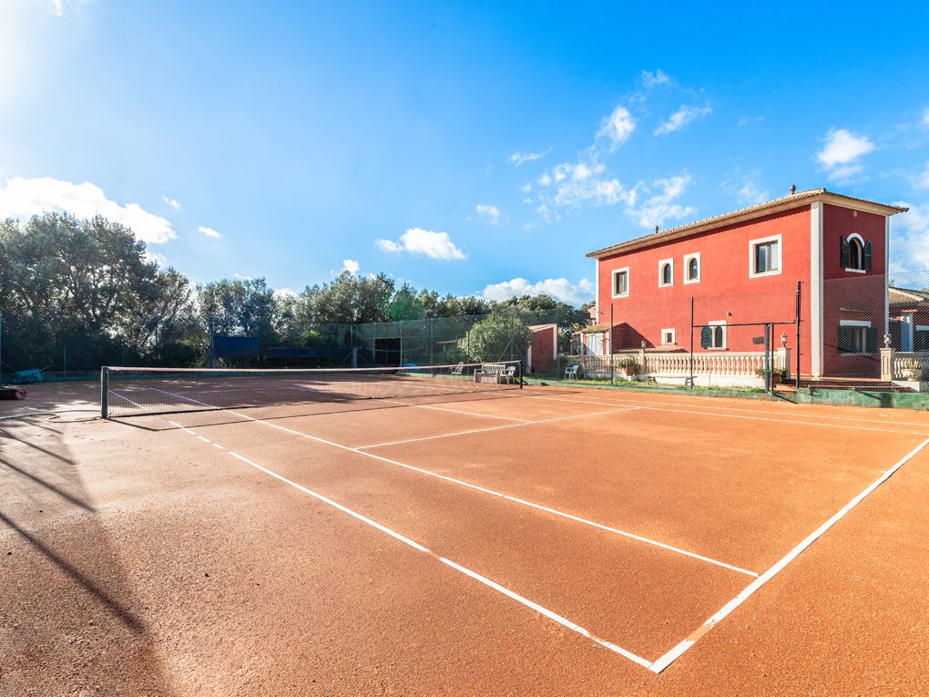 Questa bella casa di campagna offre molta privacy ed è perfetta per essere affittata per le vacanze. Si distingue per il campo da tennis e da basket. Comprende un totale di cinque camere da letto dotate di aria condizionata e due bagni, un soggiorno-sala da pranzo molto spazioso e una cucina attrezzata. Al piano terra si trovano tre camere da letto molto spaziose, di cui una con bagno privato e un bagno per gli ospiti. Il piano superiore offre due camere da letto con bagno e una terrazza, da cui si può godere di una magnifica vista sui monasteri di Randa. Intorno alla casa ci sono diverse terrazze e una piscina con idromassaggio. C'è anche un'area barbecue con cucina estiva.