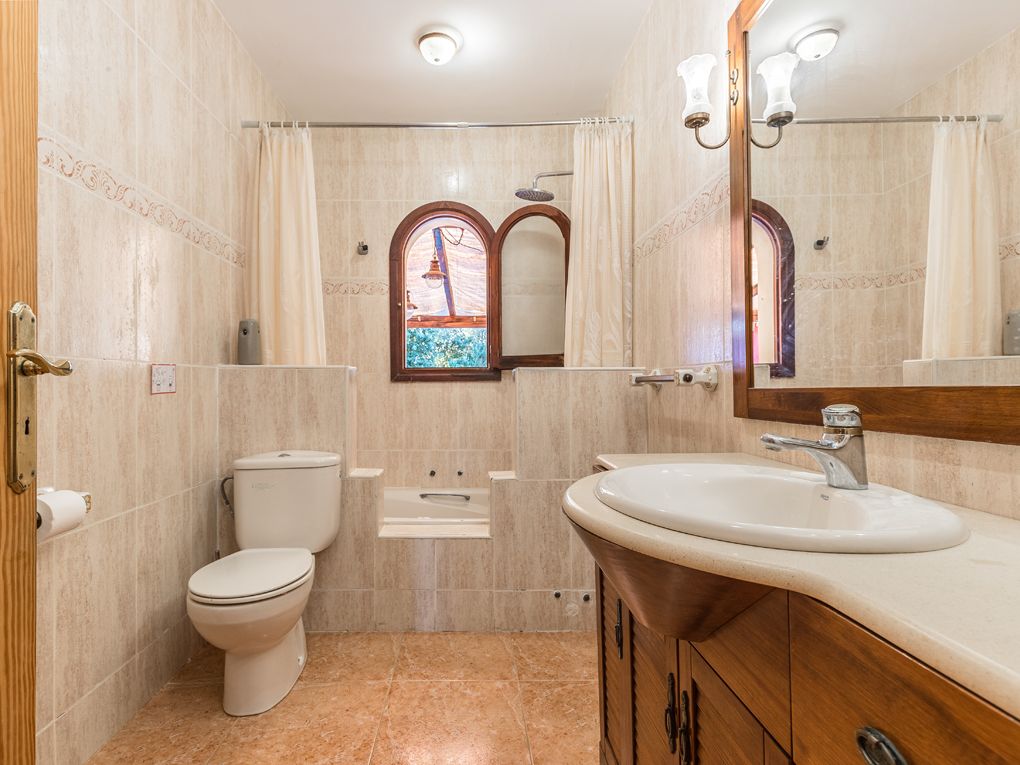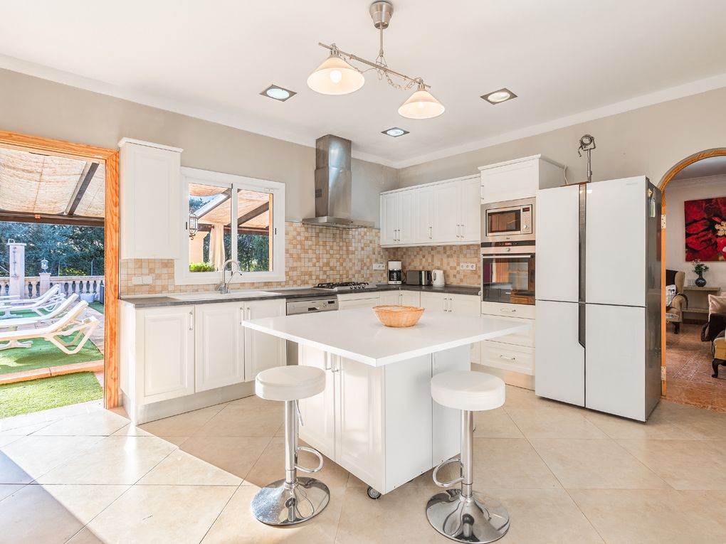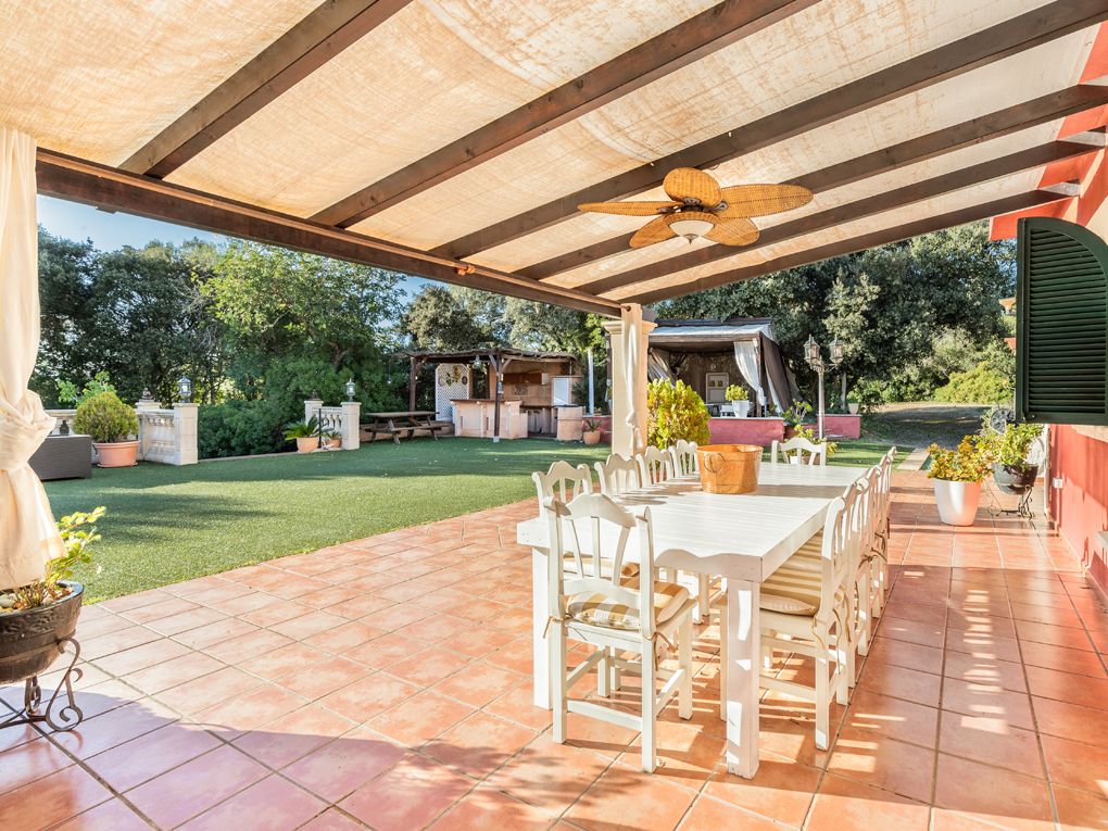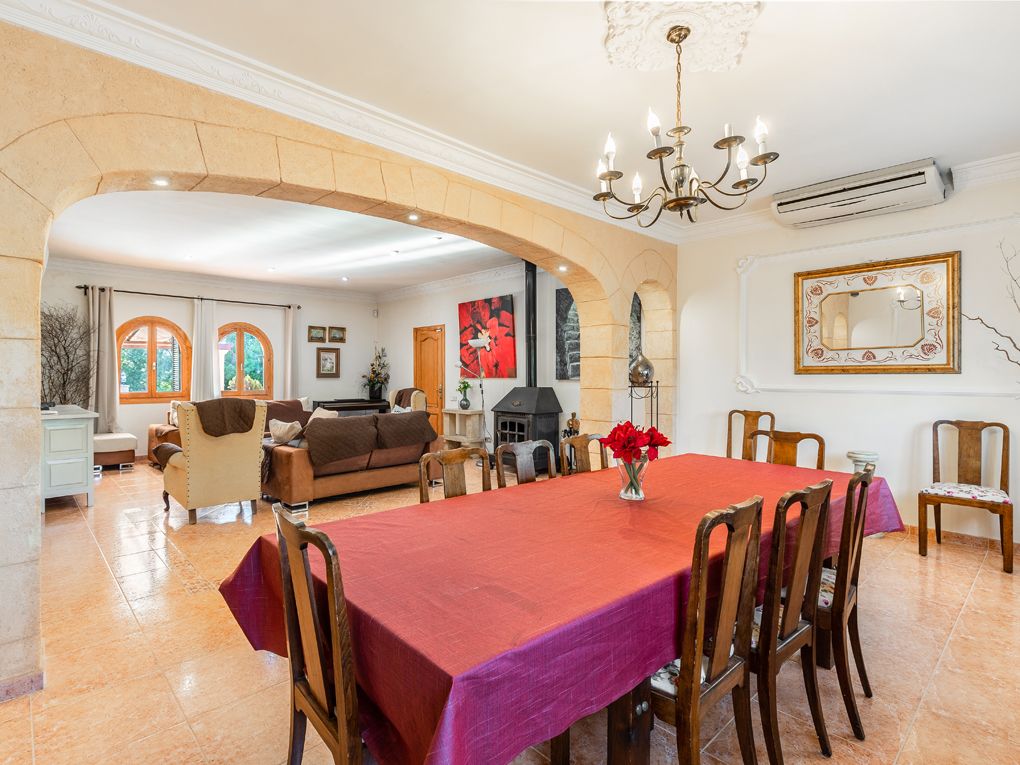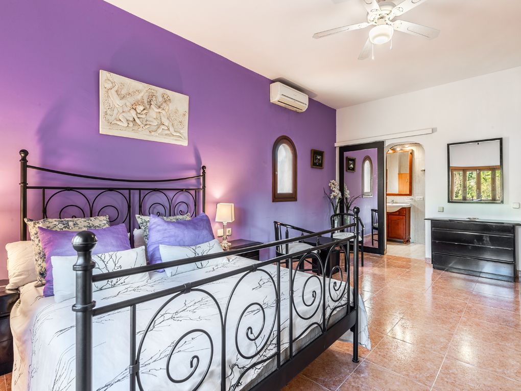 Questa bella casa di campagna offre molta privacy ed è perfetta per essere affittata per le vacanze. Si distingue per il campo da tennis e da basket. Comprende un totale di cinque camere da letto dotate di aria condizionata e due bagni, un soggiorno-sala da pranzo molto spazioso e una cucina attrezzata. Al piano terra si trovano tre camere da letto molto spaziose, di cui una con bagno privato e un bagno per gli ospiti. Il piano superiore offre due camere da letto con bagno e una terrazza, da cui si può godere di una magnifica vista sui monasteri di Randa. Intorno alla casa ci sono diverse terrazze e una piscina con idromassaggio. C'è anche un'area barbecue con cucina estiva.