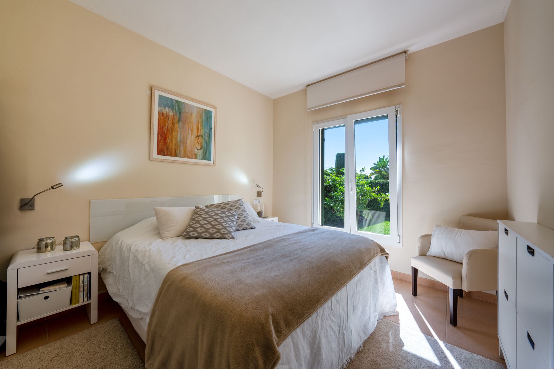 In una delle località più ricercate della costa meridionale di Maiorca, questo affascinante appartamento al piano terra con giardino privato vi attende in un edificio ben curato con solo due unità abitative - pura privacy. Inserito in un complesso residenziale da sogno con un'ampia zona piscina, qui potrete godere di un puro stile di vita mediterraneo. L'appartamento luminoso di 75 m² al piano terra vanta un soggiorno e una zona pranzo a pianta aperta con accesso diretto al giardino privato. Il moderno angolo cottura di nuova concezione si integra armoniosamente nel concetto di soggiorno. Due camere da letto offrono ampio spazio per la famiglia o gli ospiti, una delle quali ha un bagno privato. Un ulteriore bagno con doccia completa la planimetria. I bagni sono dotati di riscaldamento a infrarossi. L'impianto di climatizzazione caldo/freddo, la WLAN e la TV satellitare garantiscono un ambiente piacevole. L'appartamento è collegato alla rete idrica ed elettrica comunale. Sono inclusi anche un posto auto privato e l'accesso al complesso comunitario ben curato con un'ampia piscina di acqua salata. L'appartamento combina tranquillità, esclusività e le migliori infrastrutture: ideale come seconda casa elegante o come attraente proprietà per le vacanze con un potenziale di crescita del valore.