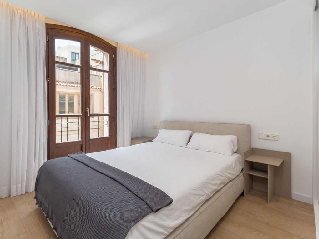 In questo edificio, completamente ristrutturato e modernizzato con materiali di alta qualità, sono stati ricavati otto appartamenti in affitto. Si trova nel cuore del centro città, in una delle vie dello shopping più popolari e circondato da vari caffè e ristoranti. Un parcheggio pubblico può essere affittato praticamente sotto casa. La scala in pietra naturale con ringhiera in ferro nero fa un'impressione positiva non appena si entra. L'appartamento, completamente arredato, si trova al secondo piano e ha una superficie abitabile totale di 54 m2. Oltre al soggiorno e alla sala da pranzo con cucina a vista, l'appartamento offre anche una camera matrimoniale, una camera singola e un bagno con doccia a pioggia. La cucina ha molto spazio, è completamente attrezzata con microonde e lavastoviglie e c'è anche una lavatrice nascosta in un armadio a muro accanto. La camera da letto singola è ideale anche come ufficio. I mobili di design italiano di alta qualità conferiscono all'appartamento un'atmosfera piacevole, lasciando comunque spazio a ciascuno di scegliere il proprio arredamento. Un piacevole contrasto è dato dalle finestre in legno scuro, che hanno anche doppi vetri per bloccare quasi completamente i rumori provenienti dall'esterno. L'impianto di climatizzazione centralizzato (caldo/freddo), l'apriporta con funzione di telecamera e l'ascensore dell'edificio garantiscono ulteriore comfort e benessere. Un'abitazione elegante nel cuore di Palma.