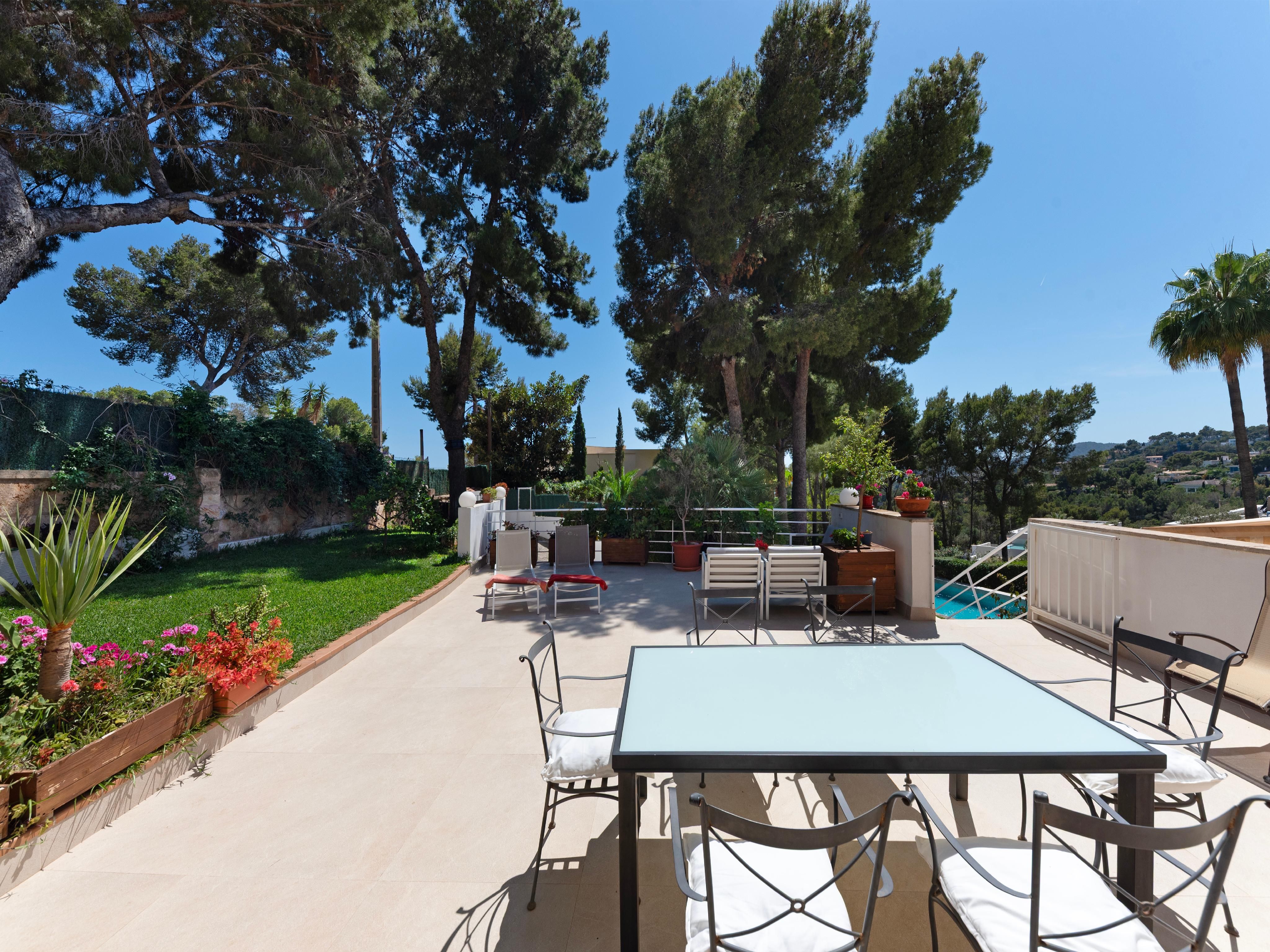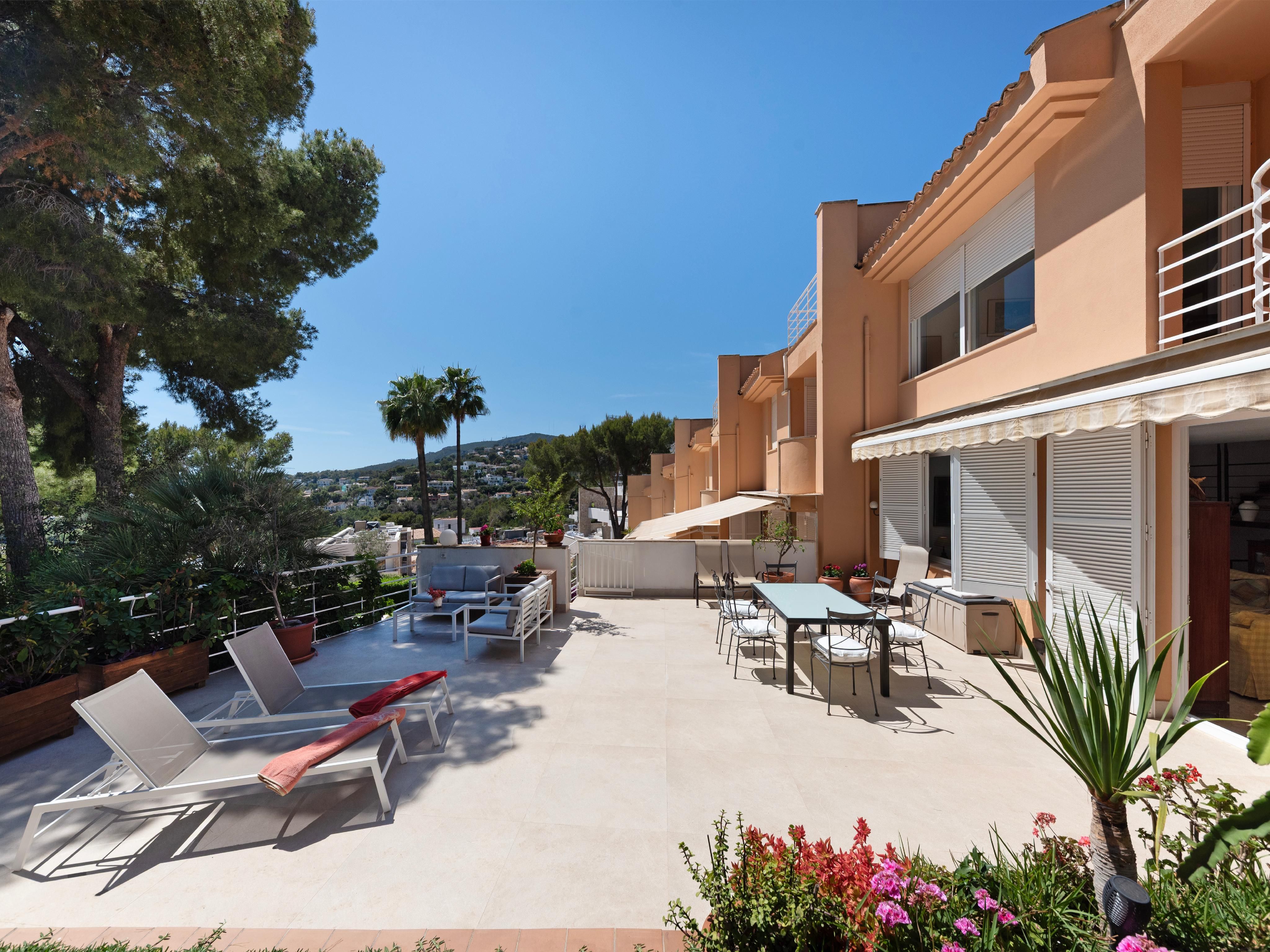 Situata nell'esclusiva zona residenziale di Portals Nous, questa affascinante casa a schiera offre la perfetta combinazione di comfort, convenienza e vita costiera. Situata in un complesso residenziale privato di sole sei case, la proprietà gode di un'atmosfera tranquilla ma si trova a pochi passi dal centro del paese con i suoi negozi, caffè e servizi quotidiani. Anche le spiagge dorate e il rinomato porto turistico di Puerto Portals, con i suoi eleganti ristoranti e l'atmosfera vivace, sono facilmente raggiungibili a piedi. Distribuita su tre livelli più una spaziosa terrazza sul tetto, la villetta a schiera è stata progettata con cura sia per essere vissuta tutto l'anno sia come rifugio di lusso per le vacanze. Al piano terra si trovano una cucina completamente attrezzata, un'invitante zona soggiorno-pranzo, un bagno per gli ospiti e un ripostiglio, che danno su un'ampia terrazza e su un giardino privato ben curato con un prato rigoglioso. Al primo piano, la suite padronale offre ulteriore comfort con altre due camere da letto e un bagno in comune, ideale per la famiglia e gli ospiti. La terrazza sul tetto è un luogo idilliaco per rilassarsi o intrattenersi, con vista aperta e sole mediterraneo. Ulteriori punti di forza sono l'aria condizionata (split), i radiatori a gas, l'impianto di irrigazione automatica e il garage privato per due veicoli con un ampio ripostiglio adiacente. La casa dispone di diverse terrazze coperte e aperte e offre l'accesso a una bella piscina comune, ideale per rinfrescarsi nelle giornate più calde. Con Palma a soli otto minuti di auto, questa proprietà combina la tranquillità con un'eccellente accessibilità ed è un gioiello raro in una delle località più ricercate dell'isola.