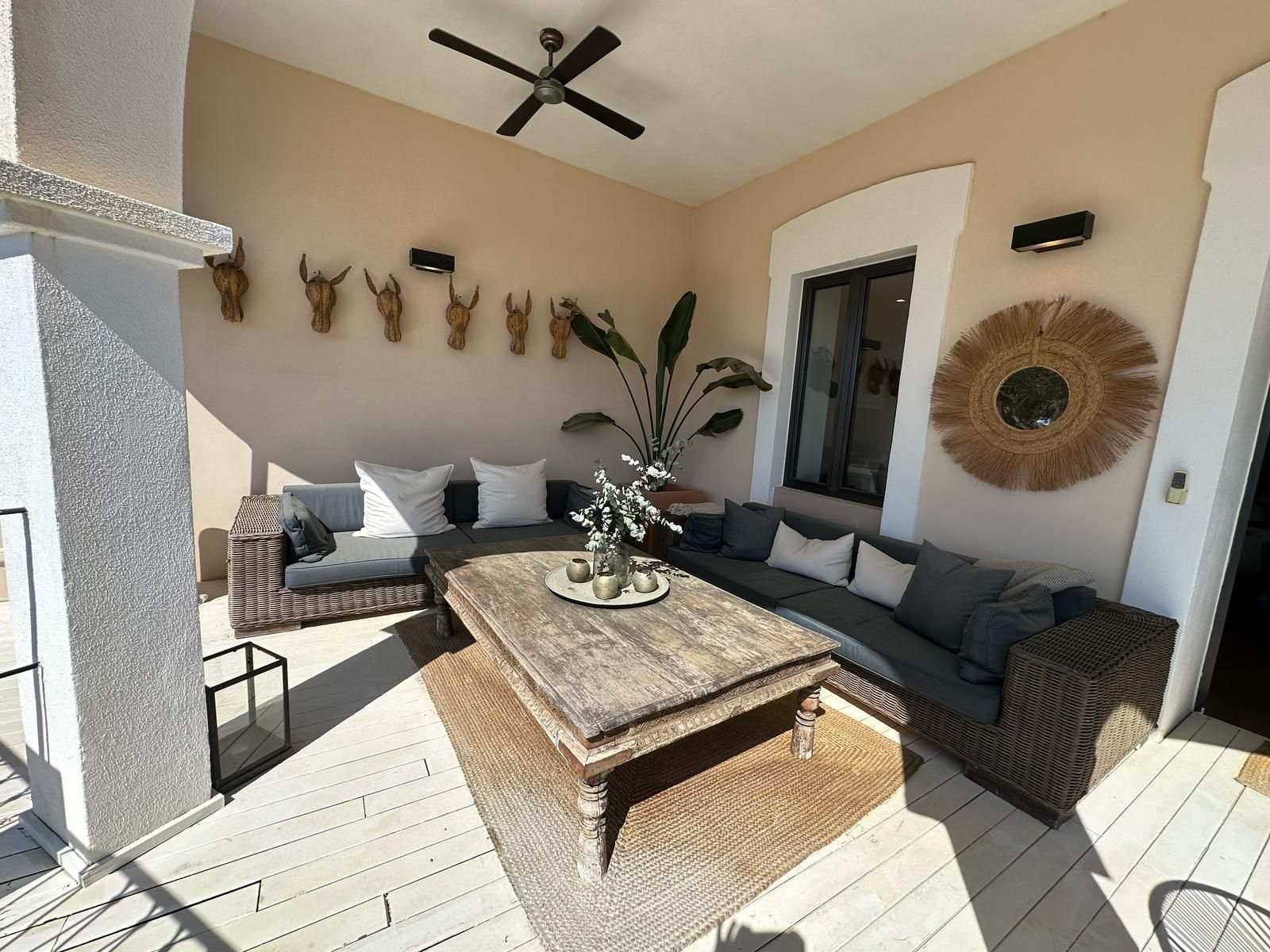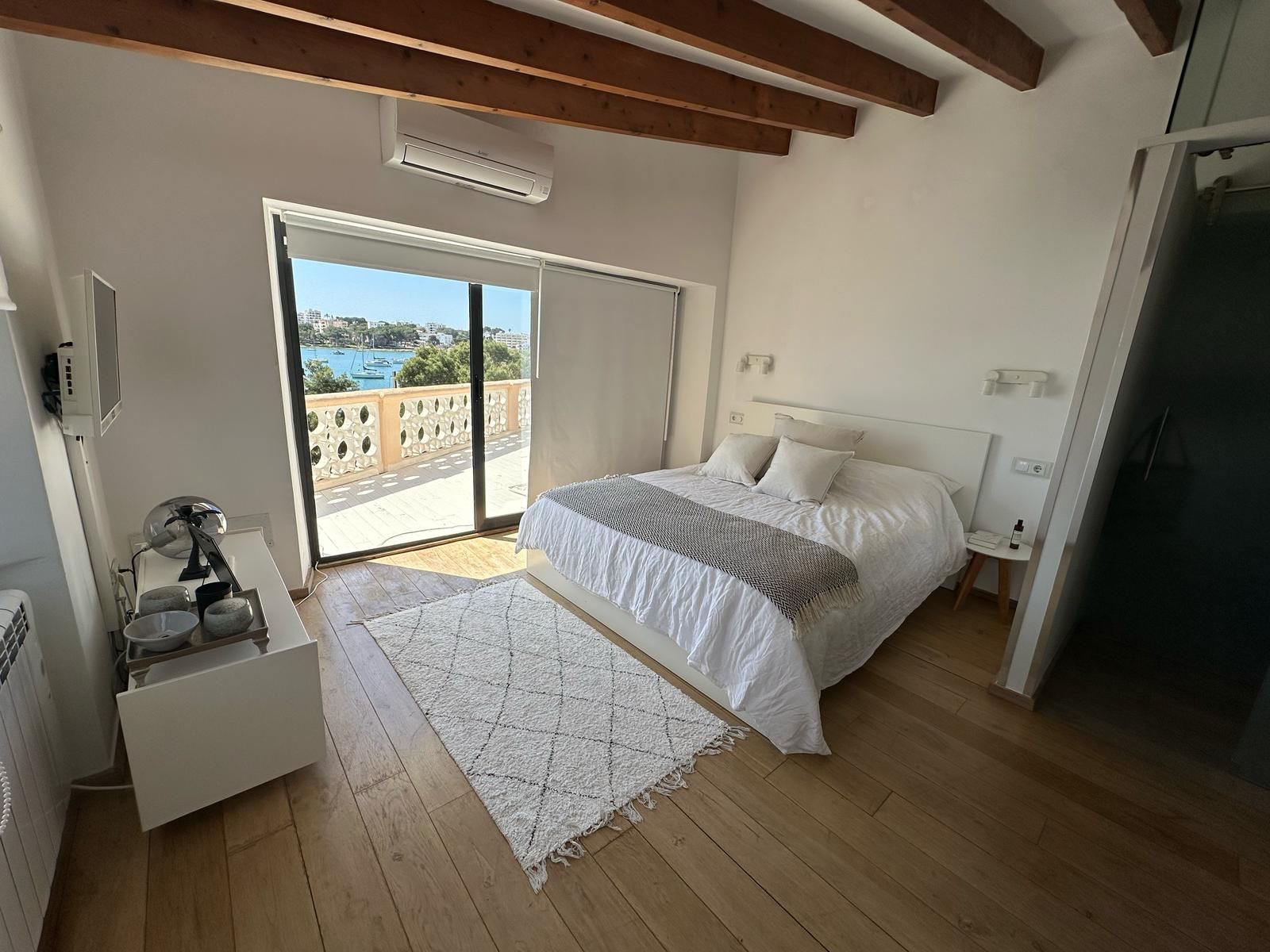Questa villetta a schiera è disponibile per il periodo da novembre a marzo e si trova direttamente sul lungomare, nella prima linea del porto di Portocolom. La vista libera sull'acqua caratterizza la proprietà e sottolinea la sua posizione eccezionale. La casa è completamente arredata e dispone di pavimenti in legno massiccio che creano un'atmosfera calda e piacevole. La zona giorno, luminosa e accogliente, si combina armoniosamente con la nuova e moderna cucina attrezzata. La proprietà offre quattro camere da letto e tre bagni, che la rendono ideale per un soggiorno confortevole durante i mesi invernali. Due balconi con un'ampia superficie totale invitano a godere della vista sul porto e a trascorrere ore rilassanti all'aperto. Un sistema di riscaldamento elettrico e unità di condizionamento split assicurano un clima interno piacevole, mentre una vasca idromassaggio offre ulteriore comfort e relax. La posizione privilegiata direttamente sul porto combina una vita tranquilla con la vicinanza a caffè, ristoranti e a tutti i servizi importanti per le necessità quotidiane.