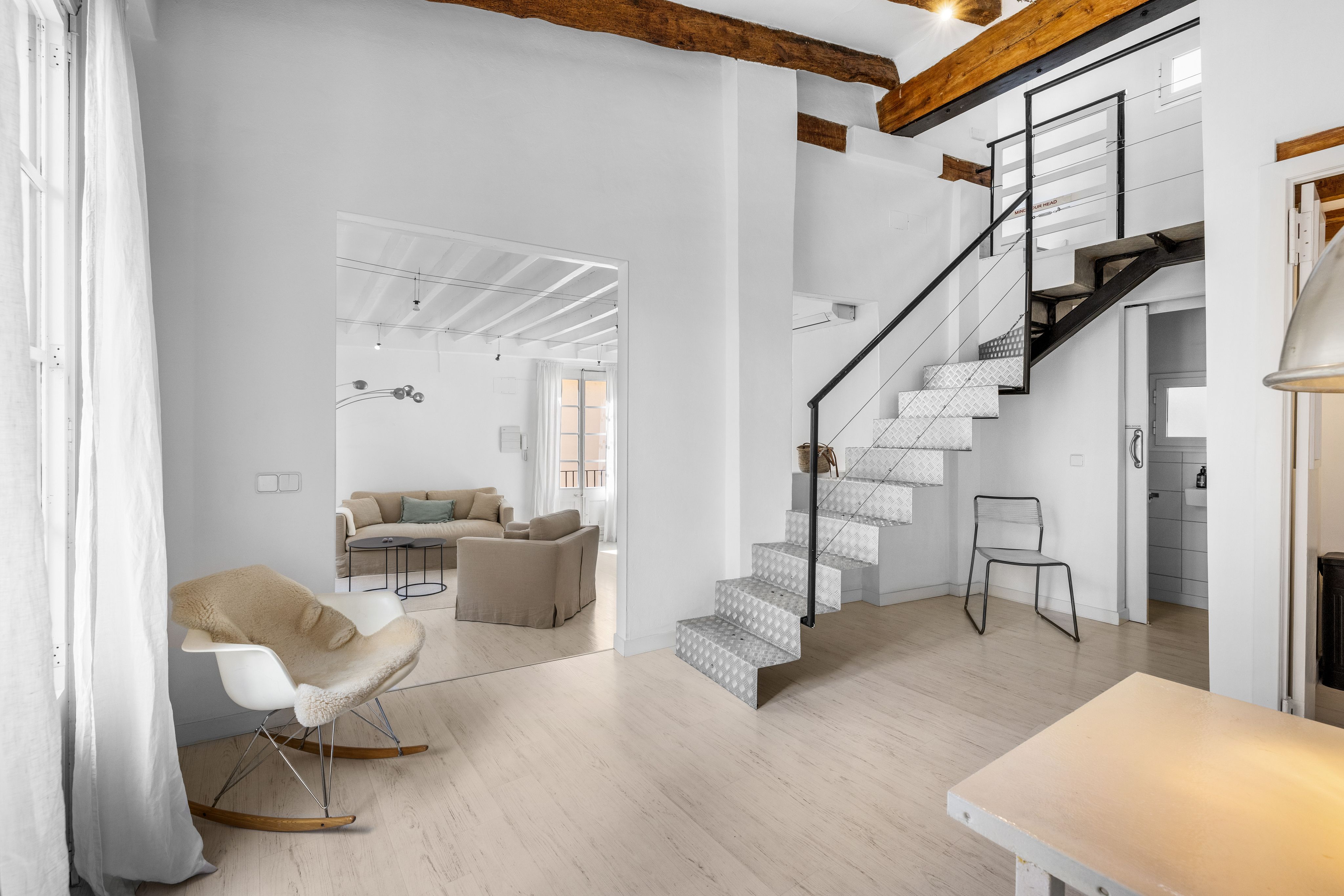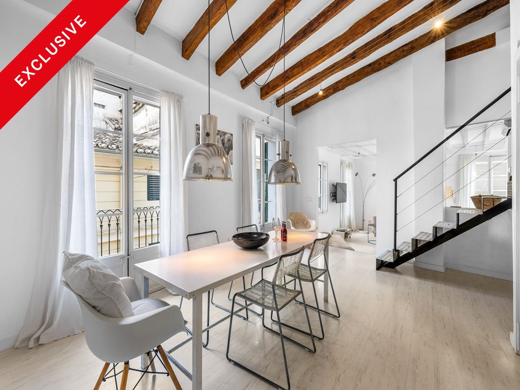 Questo affascinante attico si estende su due livelli ed è situato al terzo piano di un edificio storico senza ascensore, accessibile tramite una ripida scala che trasmette già un'aria di autenticità. Situata nel ricercato quartiere di La Lonja, a pochi passi dal Paseo del Borne, la proprietà combina in modo speciale la vita urbana con il fascino mediterraneo.
