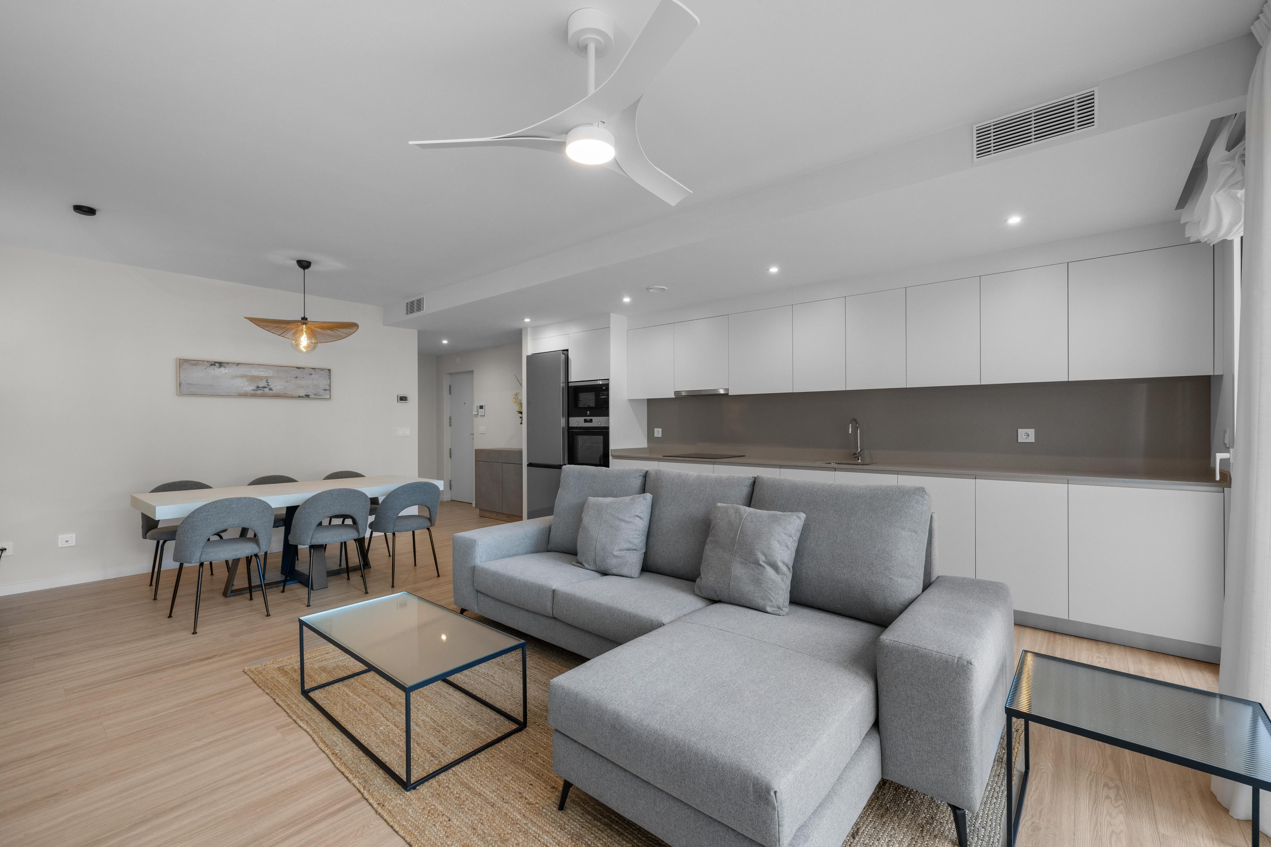 Questo accogliente, luminoso e moderno appartamento è completamente nuovo e si trova nel dinamico quartiere di Nou Llevant, una delle zone più in via di sviluppo di Palma, vicino al mare, al centro città e perfettamente collegato. L'appartamento dispone di un ampio soggiorno-sala da pranzo con cucina integrata, uno spazio aperto caratterizzato da funzionalità e design contemporaneo. La cucina è completamente attrezzata e si fonde perfettamente con la zona giorno, creando un'atmosfera ideale per una casa accogliente. L'appartamento dispone di due camere da letto matrimoniali, di cui la principale con bagno privato, e di un secondo bagno completo. Entrambe le camere da letto godono di molta luce naturale e sono dotate di armadi a muro. Inoltre, la proprietà dispone di una terrazza privata per trascorrere il tempo all'aperto. L'appartamento è dotato di aria condizionata centralizzata (caldo/freddo), ha finestre con doppi vetri e viene affittato completamente arredato in modo da essere pronto per l'uso. Inoltre, la proprietà dispone di un posto auto e di un ripostiglio inclusi nel prezzo. Una scelta eccellente per chi cerca comfort, design e posizione in una zona in forte espansione e ideale per chi vuole conoscere l'isola ed essere vicino alla città.