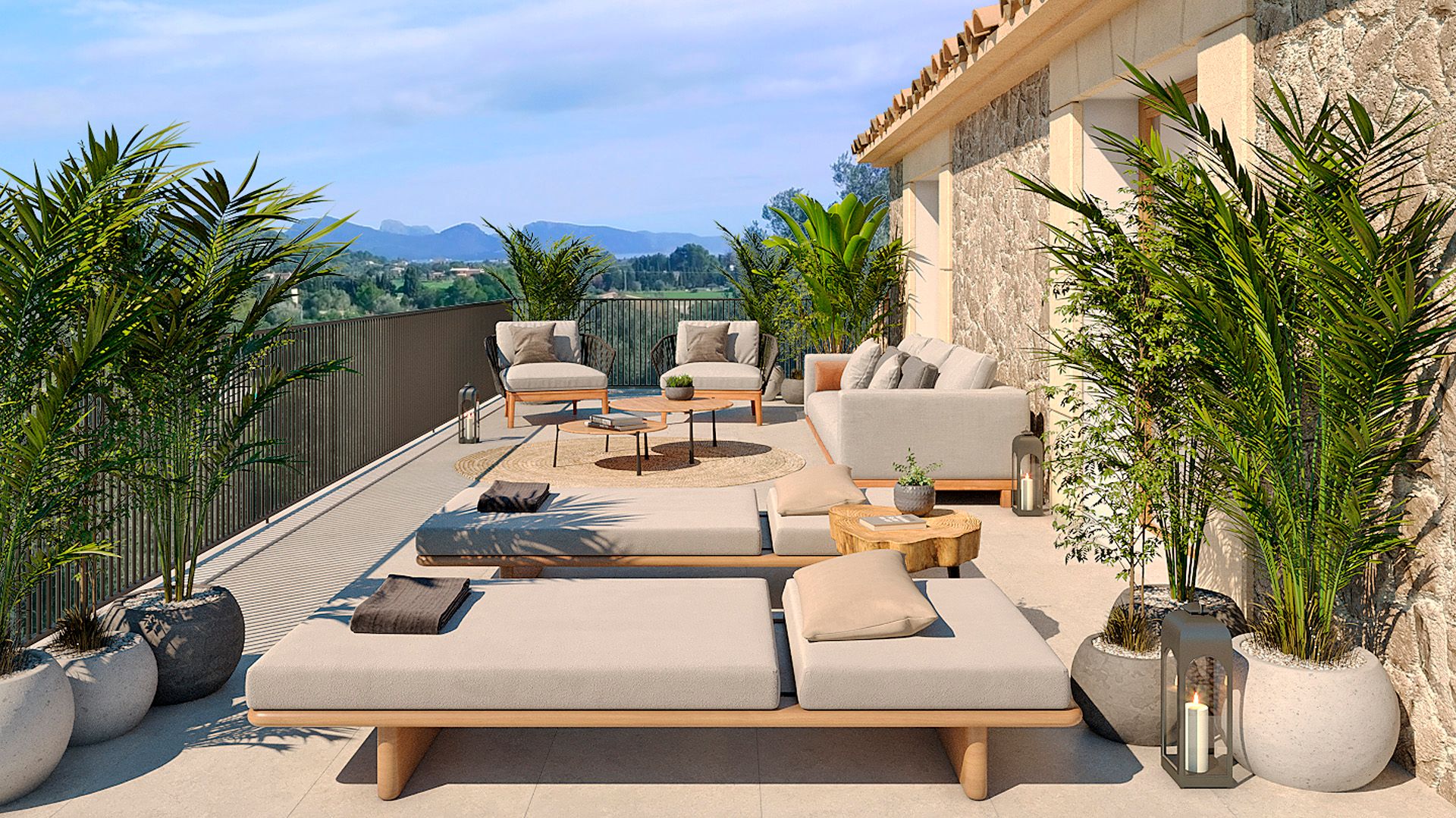 L'ampia proprietà comprende circa 27.000 m² di terreno e una superficie utile totale di circa 600 m², tra cui 120 m² di terrazze, un'impressionante piscina a sfioro di acqua salata lunga 18 metri e circa 400 m² di spazio abitabile. È la casa perfetta per una famiglia, con cinque camere da letto doppie con bagno privato e un bagno per gli ospiti, tra cui la suite padronale con zona giorno privata e una magnifica terrazza a tutta lunghezza con vista sulla campagna circostante e sulla baia di Pollensa e Capo Formentor in lontananza.