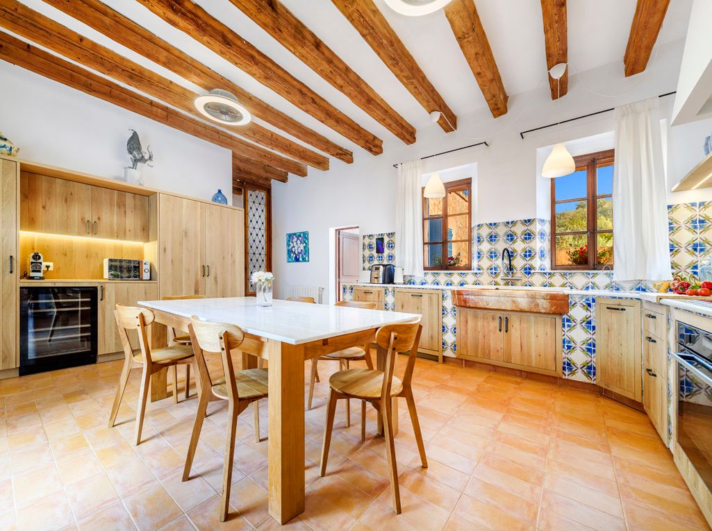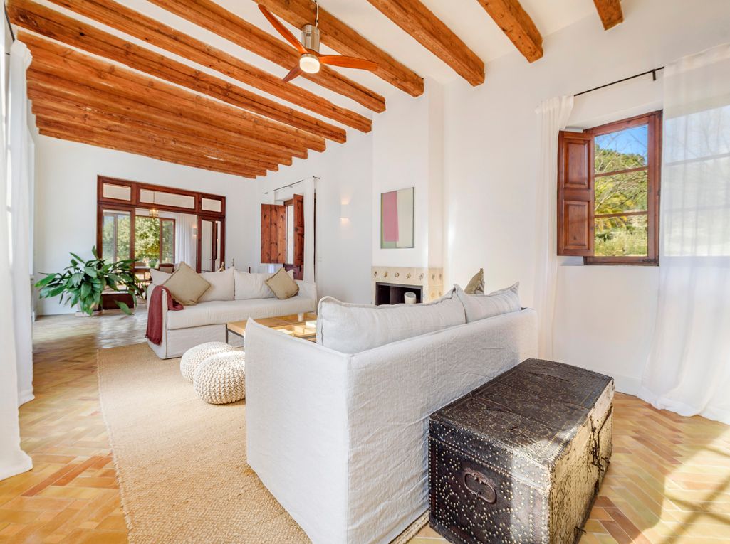 Questa proprietà unica è circondata da bellezze naturali e offre una privacy assoluta, situata ai piedi delle montagne Tramuntana lungo la prestigiosa valle Vall de Sant Miquel a Campanet. Il paesaggio è caratterizzato da boschi di lecci, pinete e da un torrente che attraversa il comune attraverso la pianura e i ricchi terreni agricoli. Una grande casa, ideale per gli amanti della natura, della gastronomia, della vita rurale e del lusso. La casa è stata costruita con tutti i tipi di comfort, rispettando l'ecosistema. Pavimenti particolari in cotto, pareti bianche immacolate con soffitti alti, travi in legno a vista, piastrelle antiche, pietra naturale e molto altro. L'arredamento è una miscela di lussuosi oggetti d'antiquariato in armonia con l'arte moderna e le strutture all'avanguardia. Una casa molto confortevole e di alta qualità. La spaziosa cucina contrappone elettrodomestici moderni a un lavello in pietra secolare. Nel seminterrato si trova una sala home cinema con un tavolo da biliardo del XIX secolo e una spa con sauna e vasca idromassaggio. Cinque ampie suite da letto e diversi salotti offrono spazio a tutta la famiglia. Colpisce per la sua indiscussa vista e privacy tra lusso, arte, storia, natura e tradizione culturale magica e un'innegabile identità. Oltre a favolosi giardini e campi pianeggianti, ci sono 20 ettari di bosco di montagna da scoprire. Aranceto, 200 ulivi, pecore... e gli animali domestici sono i benvenuti.