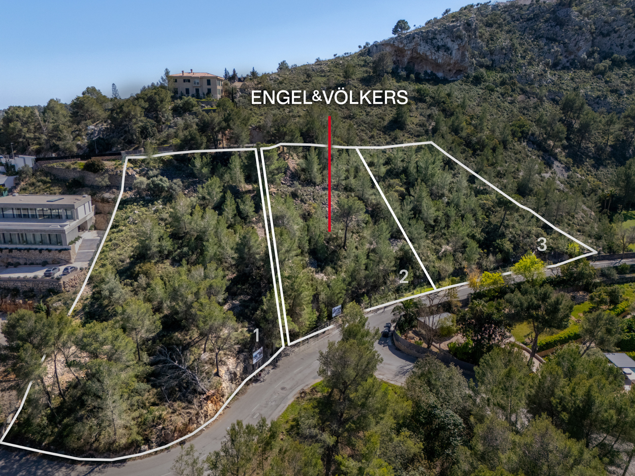 Situati in una delle zone più esclusive di Maiorca, questi tre lotti edificabili con una superficie totale di quasi 8.000 m² offrono un'opportunità eccezionale per chiunque voglia realizzare il sogno di una casa di lusso circondata da una natura incontaminata, da una privacy assoluta e da una tranquillità totale. Le licenze di progetto e di costruzione sono già state concesse per tutti i lotti, il che accelererà notevolmente l'inizio della costruzione di queste case. Offriranno ampie superfici abitative tra i 741 e i 937 m². Uno dei lotti confina direttamente con un'ampia zona verde, che non solo garantisce la massima privacy ma anche un'esperienza unica nella natura - un rifugio perfetto lontano dal caos della città. Gli altri due lotti, pur non avendo accesso diretto all'area verde, offrono una vista impressionante sul paesaggio montano circostante, sull'esclusiva zona residenziale di Son Vida e fino alla città di Palma, creando così un ambiente di vita tranquillo e privilegiato. Tutti e tre i lotti hanno già un progetto edilizio approvato con permesso di costruire, il che rende molto più facile e veloce l'inizio della fase di costruzione. Sono previste ville moderne e funzionali, ognuna con tre piani, ampi garage, vaste aree comuni e almeno cinque camere da letto per casa - progettate per garantire il massimo comfort abitativo e tanto spazio per tutta la famiglia. Le stanze principali, come il soggiorno, la terrazza e la piscina, sono esposte a ovest e offrono molta luce solare durante il giorno e tramonti spettacolari la sera. Nel lotto che si affaccia su Palma, anche la terrazza sul tetto offre una vista panoramica mozzafiato sulla città: una combinazione armoniosa di dinamismo urbano e serenità naturale. I lotti possono essere acquistati singolarmente o come pacchetto completo, in base ai vostri desideri individuali. Un'opportunità unica per realizzare la casa dei vostri sogni in una delle località più ambite di Maiorca.