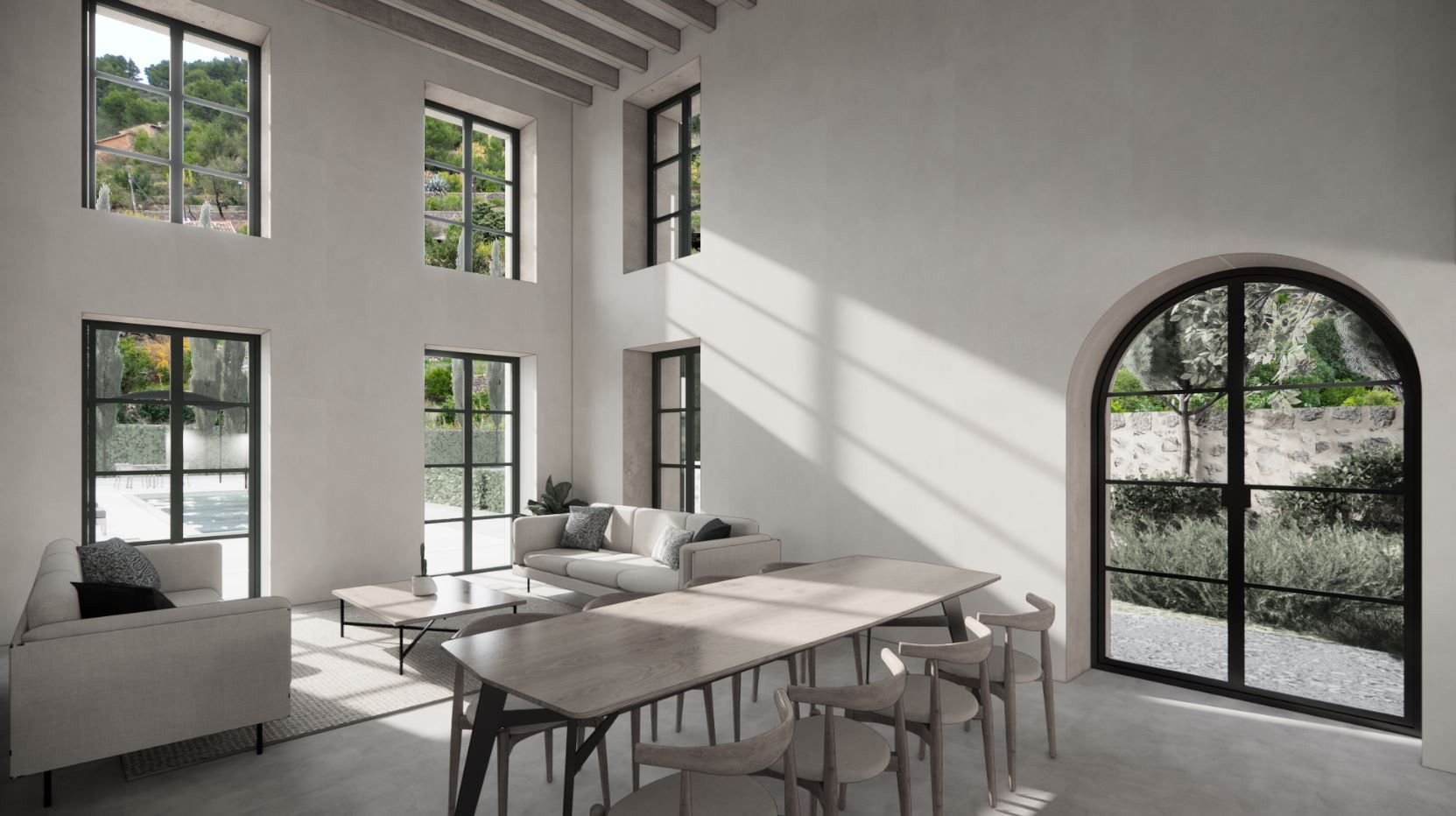 Sóller, una vivace cittadina nel cuore della Tramuntana, vicino alla splendida costa occidentale dell'isola, ospita alcuni degli immobili più esclusivi di Maiorca: case a schiera, proprietà rurali tradizionali e ville eleganti. Si trova a soli 30 minuti di auto da Palma, grazie al suo tunnel gratuito. Sóller ha primeggiato nel commercio internazionale degli agrumi durante i secoli XVIII e XIX, ottenendo la costruzione del treno da Palma all'inizio del XX secolo. A breve seguì un tram da Sóller al suo porto. Con le loro pittoresche carrozze originali, il treno da Palma e il tram di legno che collega la città al porto continuano ad affascinare i turisti. Lo stile di vita cosmopolita di Sóller la portò a diventare uno dei punti di riferimento del Modernismo del Paese. Tra le sue numerose case e gli edifici in stile modernista, si trova la Chiesa di Sant Bartomeu nella piazza del paese. Sóller dispone di infrastrutture di prima qualità: supermercati, negozi, impianti sanitari e sportivi. È un luogo ideale per praticare trekking, mountain bike o arrampicata, e il golf club Son Termes si trova a soli 20 minuti di auto. La città offre un'ottima gamma di ristoranti, bar, caffetterie, hotel e centri benessere, e il suo mercato locale del sabato è fiorente. La città vanta un meraviglioso giardino botanico, musei, come il Museo Can Prunera, e una mostra di Joan Miró e Pablo Picasso presso la Stazione Ferroviaria, un tempo casa estiva dove i due artisti si incontravano. La città celebra feste annuali popolari come "Es Firó" ed eventi culturali come il Festival di Musica Classica del Porto di Sóller.