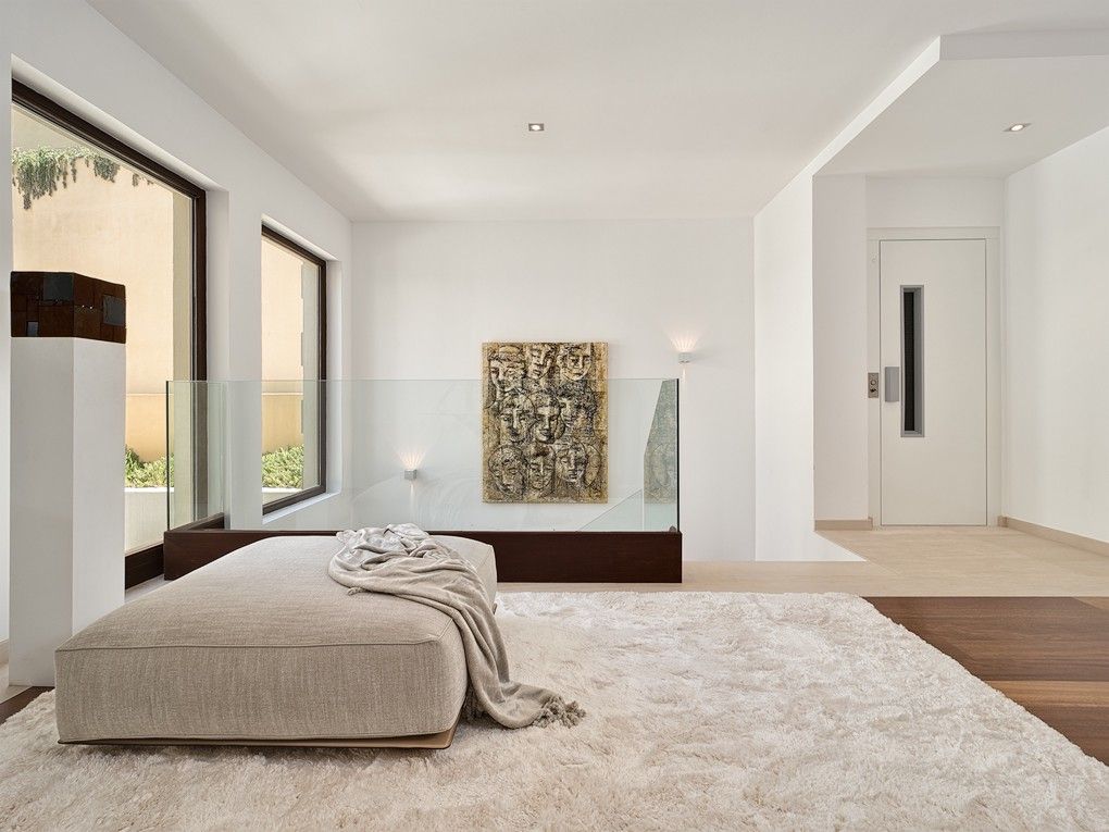 Questa villa esposta a sud-ovest è stata costruita nell'estate del 2011 con materiali di alta qualità. Lo spazio abitativo si sviluppa su tre piani nella casa principale e in una casa per gli ospiti con angolo cottura, due camere da letto con bagno privato. Si accede alla casa al piano superiore attraverso l'ingresso. Qui si trovano la camera da letto principale con bagno privato, zona spogliatoio e ufficio, due camere da letto doppie ciascuna con bagno privato e una con spogliatoio. Il piano inferiore offre un soggiorno-sala da pranzo molto spazioso che conduce alla terrazza principale con vista sul campo da golf e, sul retro, a un grazioso patio. L'ampia cucina ha una dispensa e un ripostiglio adiacenti, oltre a un WC per gli ospiti. Al piano terra si trova l'area benessere con palestra, sauna, due docce, servizi igienici e spogliatoio, nonché un appartamento separato per il personale con soggiorno, angolo cottura, camera da letto e bagno. Inoltre, la proprietà dispone di una grande piscina circondata da enormi terrazze soleggiate e splendidi giardini, mentre la pool house con area barbecue offre ombra per cene all'aperto. Altre caratteristiche: Riscaldamento a pavimento, aria condizionata, ascensore, pavimenti in iroko, terrazze coperte, impianto di irrigazione e garage doppio.