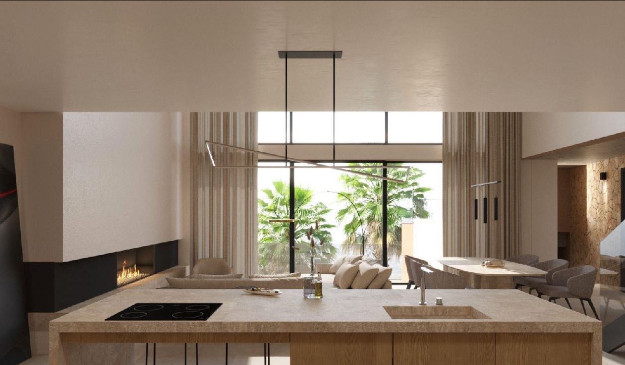La casa è stata progettata privilegiando spazi aperti e funzionali. Il soggiorno principale è caratterizzato da un soffitto a doppia altezza, che fornisce una costante luce naturale e una reale sensazione di spaziosità. La cucina di design sarà consegnata completamente attrezzata con mobili di marca e moderni elettrodomestici. La zona notte è composta da quattro camere da letto, ognuna con il proprio bagno privato, che garantiscono una disposizione comoda ed equilibrata per la vita quotidiana.