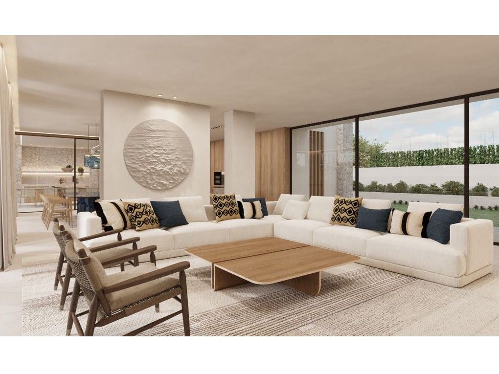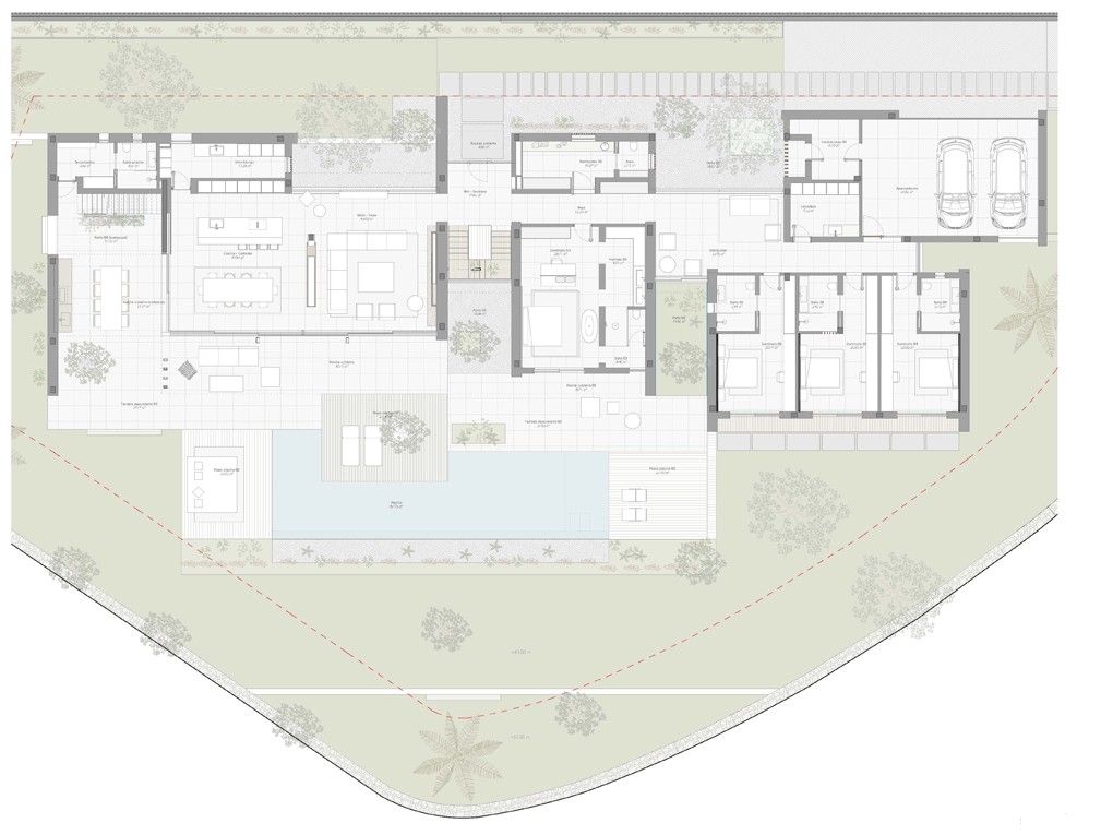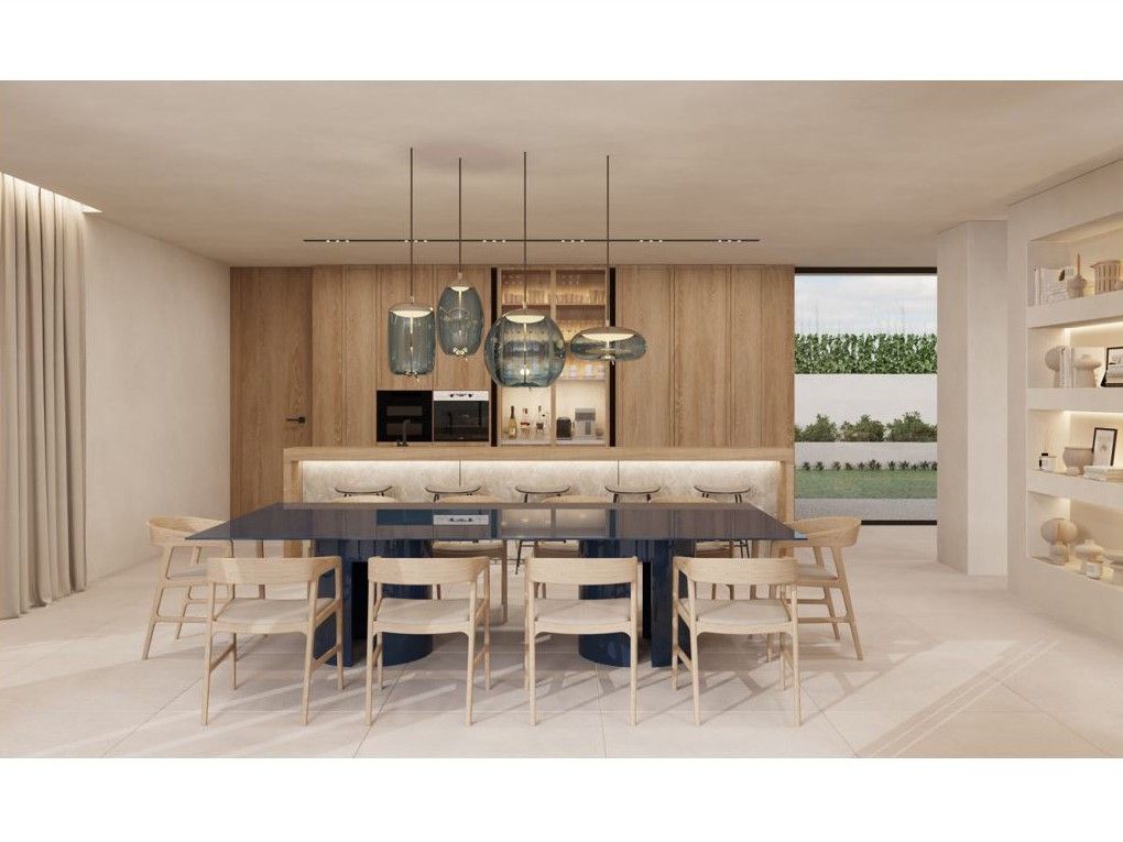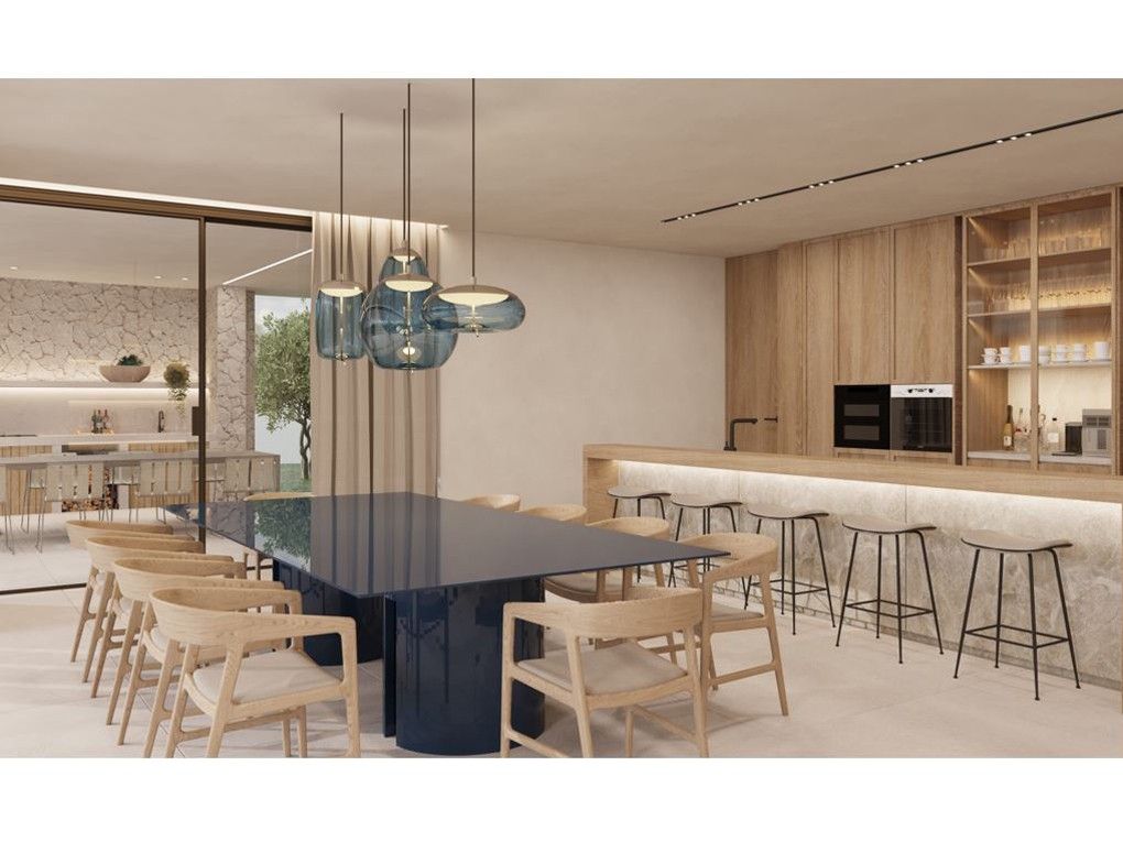 Questa villa eccezionale ridefinisce il lusso contemporaneo, fondendo senza soluzione di continuità finiture di alta qualità, design all'avanguardia e viste mozzafiato sul mare nell'esclusiva enclave di Sol de Mallorca. Situato su un terreno di 2.015 m², questo capolavoro architettonico si estende per 1.096,91 m² su fondamenta di cemento robusto, materiali da costruzione sostenibili e un'attenzione alla stabilità e alla sostenibilità, offrendo una fusione armoniosa di vita interna ed esterna. La moderna facciata è una combinazione di pietra naturale, legno e sistema SATE per un eccellente isolamento termico e acustico. Eleganti e spaziose terrazze con pietra naturale Thermowood e HORUS BEIGE e una piscina a sfioro con acqua salata di 67,95 m² creano un rifugio idilliaco circondato da splendidi giardini mediterranei e da una sofisticata illuminazione esterna. Progettata per garantire il massimo del comfort e dell'eleganza, la villa dispone di cinque spaziose camere da letto, tra cui una sontuosa suite padronale con bagno ispirato alla spa, uno studio privato e diverse terrazze con viste panoramiche mozzafiato. Ogni dettaglio è stato scelto con cura per offrire uno stile di vita eccezionale, con un'area benessere dedicata con sauna e spogliatoio, una palestra all'avanguardia e un home cinema privato: un equilibrio perfetto tra relax e intrattenimento. La tecnologia smart home garantisce una vita senza sforzi, grazie a un sistema di automazione domestica KNX completamente integrato, una pompa di calore ad alta efficienza energetica, aria condizionata completa, gestione sostenibile dell'acqua piovana, sistemi aerotermici, riscaldamento a pavimento, ventilazione meccanica con recupero di calore e illuminazione a LED a risparmio energetico. Il completamento di questa eccezionale residenza è previsto per giugno 2025 e offre la rara opportunità di possedere un vero capolavoro architettonico in una delle località più prestigiose di Maiorca. Altre caratteristiche: Marchi pregiati come Miele e sanitari di alta qualità di GSI con design sospeso e l'innovativo sistema di risciacquo Swirlflush, rubinetteria Dornbracht, finiture di lusso come la pietra naturale HORUS BEIGE e rivestimenti in legno di alta qualità, nonché finestre minimaliste in alluminio di CORTIZO.