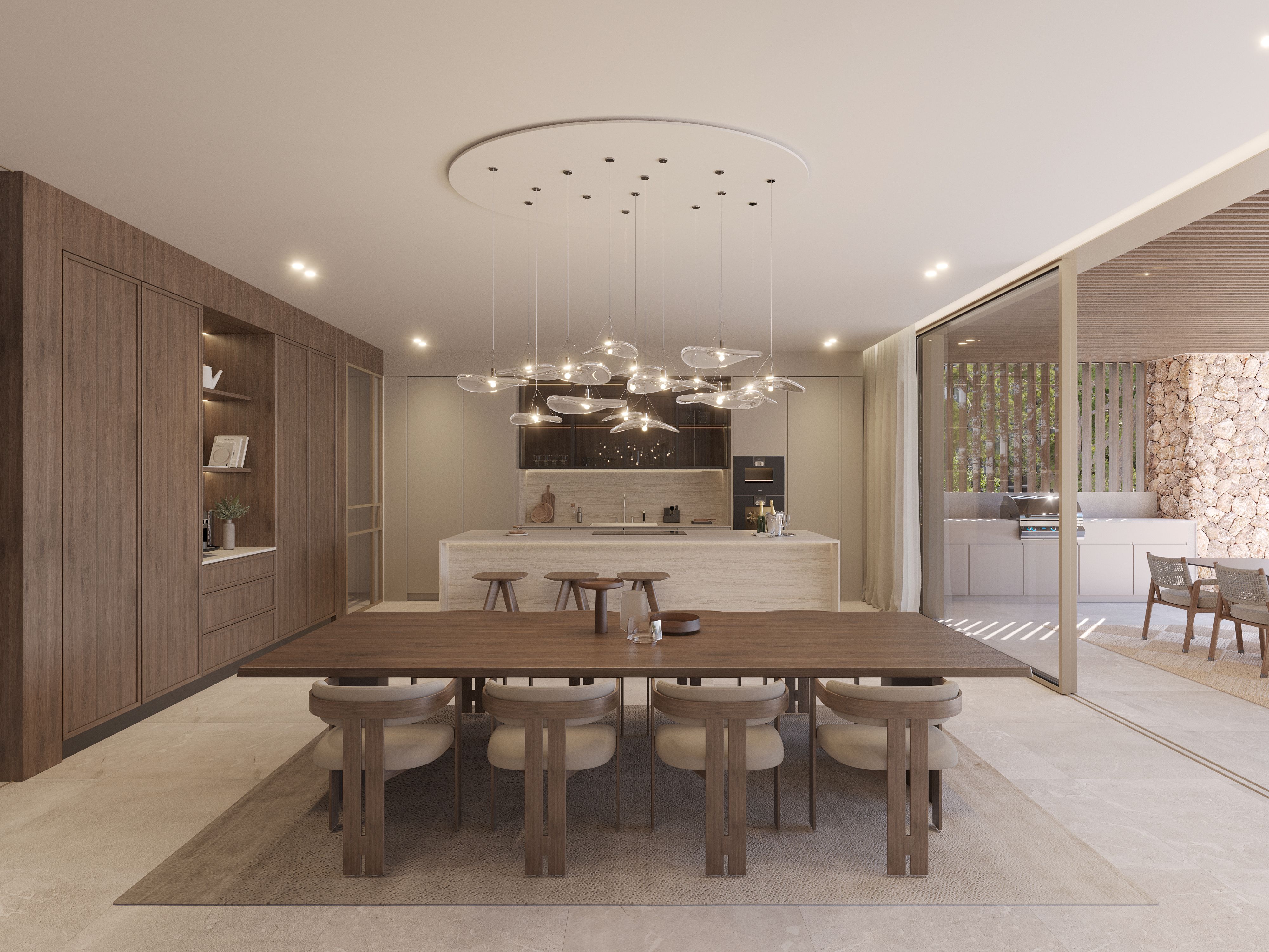 Situata con una vista mozzafiato sul Mediterraneo, questa villa eccezionale combina magistralmente eleganza moderna, luce naturale e design sostenibile. Con 589 m² di spazio abitativo su un terreno di 970 m², offre uno stile di vita tranquillo e lussuoso in una delle località costiere più ricercate. Entrando al piano terra, si viene accolti da una luminosa zona giorno e pranzo a pianta aperta che si estende senza soluzione di continuità su una spaziosa terrazza, un salotto chill-out e una piscina di acqua salata, il tutto rivolto verso il mare. La transizione fluida tra aree interne ed esterne invita al relax e all'intrattenimento, incorniciati da viste panoramiche e dalla luce mediterranea. Il piano superiore, dedicato alla tranquillità e alla privacy, ospita una spaziosa suite padronale con cabina armadio e bagno privato, oltre ad altre tre camere da letto dal design raffinato che combinano comfort ed eleganza. Il piano interrato completa la proprietà con una palestra privata, una cantina, una sala cinema e un garage per due auto. Ogni aspetto è stato progettato con attenzione ai dettagli, compreso un bellissimo giardino paesaggistico. Gli interni sono caratterizzati da finiture di alta qualità, tra cui pavimenti in Gris Zarzi ed elettrodomestici da cucina su misura. La villa è dotata di un sistema di condizionamento dell'aria controllato da KNX con riscaldamento a pavimento e comfort cooling, per un comfort abitativo che dura tutto l'anno. La sostenibilità è al centro della casa: i pannelli solari per l'acqua calda e gli impianti fotovoltaici garantiscono l'efficienza energetica e consentono di vivere in modo lussuoso con un'impronta ecologica minima. Il completamento è previsto per gennaio 2026: un capolavoro architettonico che unisce innovazione, bellezza mediterranea e stile di vita contemporaneo.