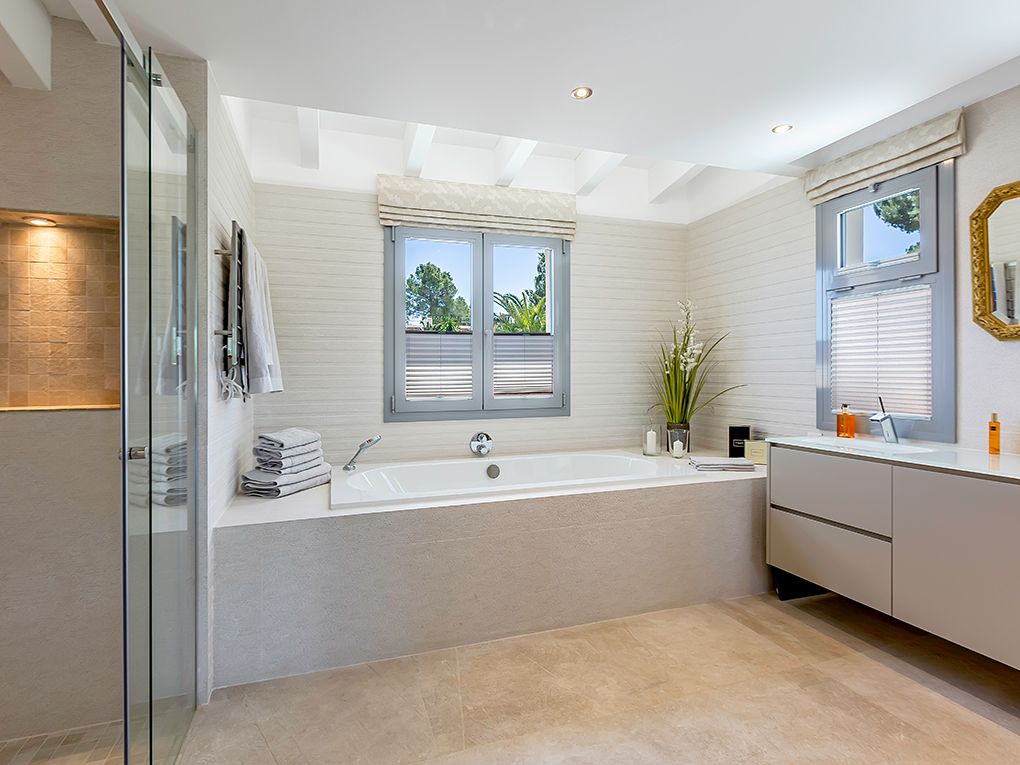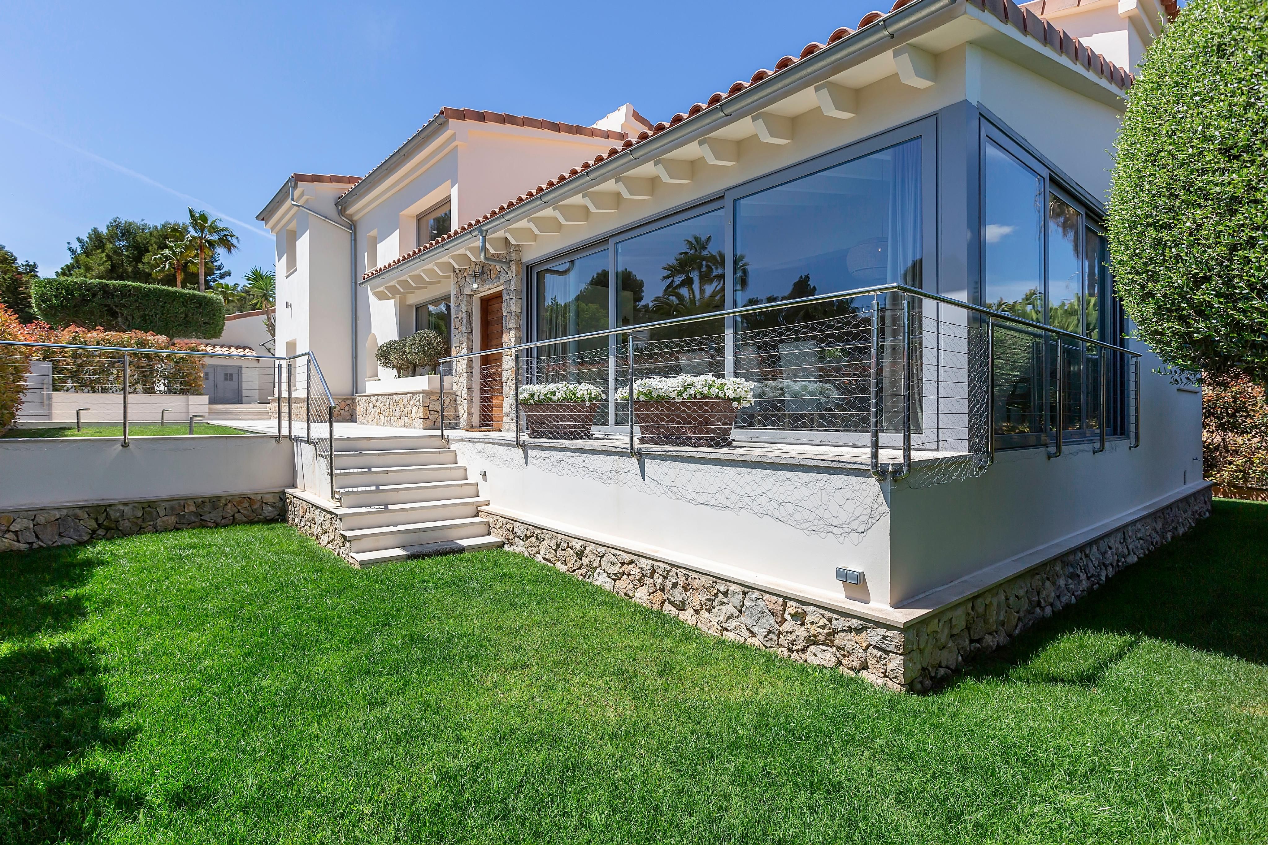 Questa villa in stile mediterraneo-moderno, completamente ristrutturata nel 2021, si trova in un vicolo cieco nella popolare Nova Santa Ponsa e offre splendide viste sul verde e sulle montagne. I soffitti alti e la zona soggiorno/pranzo e cucina a pianta aperta con camino a gas per le serate più fresche sottolineano l'ambiente luminoso e accogliente di questa villa familiare. Al piano terra si trovano due camere da letto con bagno privato, un WC per gli ospiti e un piccolo ripostiglio. La spaziosa suite padronale con spogliatoio e bagno si trova al piano superiore. La quarta camera da letto si trova nella dependance separata con bagno e piccola zona ufficio. L'area esterna molto privata con piscina di acqua salata e terrazze per rilassarsi o trascorrere serate accoglienti con amici e familiari è rivolta a sud/sud-ovest. Se avete voglia di cambiare scenario, non dovete andare lontano: Tutte le principali strutture per il tempo libero, come spiagge, diversi campi da golf, due porti turistici con i loro ristoranti e boutique, sono a pochi minuti di auto. A breve distanza si trovano anche due scuole internazionali. Extra: riscaldamento a pavimento (pompa di calore), camino, aria condizionata caldo/freddo, sistema domotico e di allarme e licenza ETV per affitti turistici.