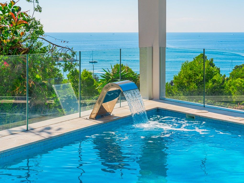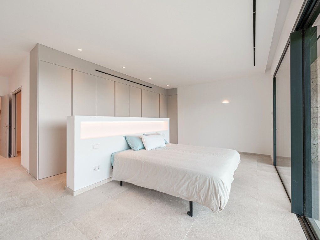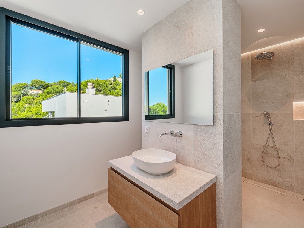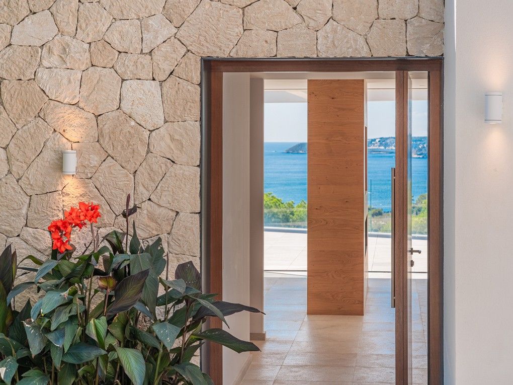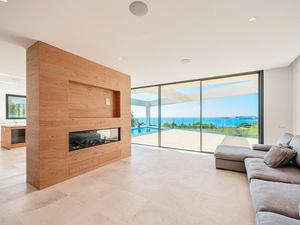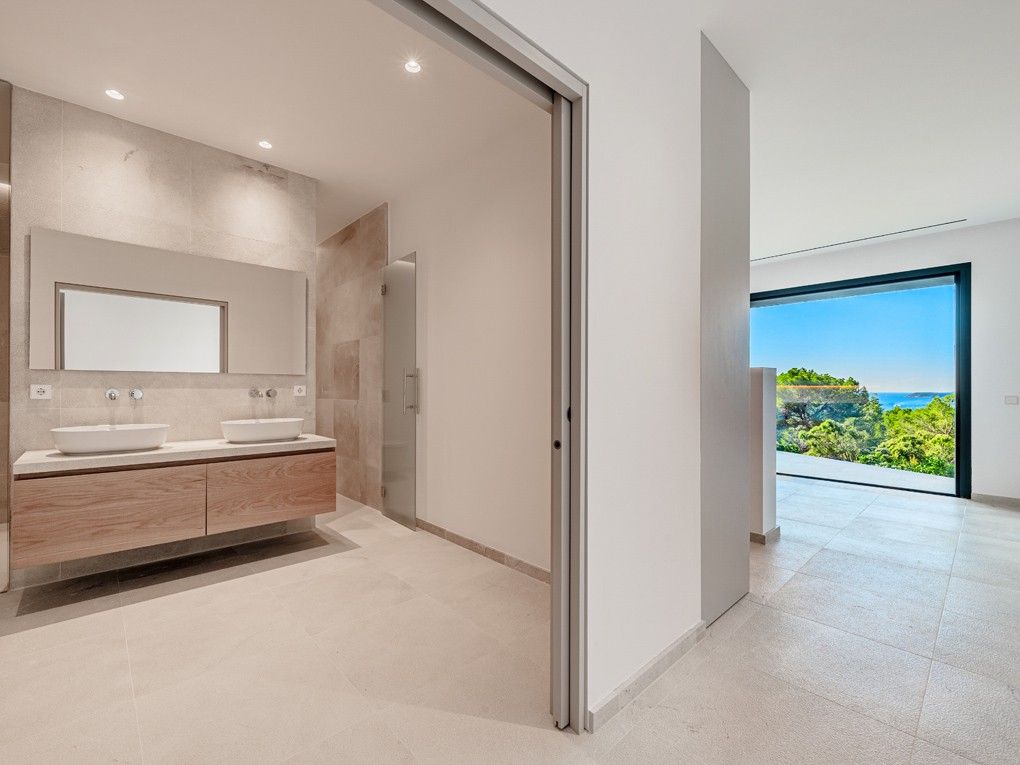Situata nell'elegante zona residenziale di Costa d'en Blanes, appena sopra il porto di Puerto Portals, questa villa di nuova costruzione offre una meravigliosa opportunità di godere dello stile di vita mediterraneo. Con una splendida vista sul mare e un giardino pianeggiante, la proprietà è ideale per vivere tutto l'anno e vicino alle scuole locali e internazionali o per chi desidera una casa vicino alla propria barca. Entrando nella proprietà si viene immediatamente accolti dalla vista sul mare attraverso le finestre a tutta altezza. La zona giorno, pranzo e cucina è a pianta aperta e conduce alla soleggiata terrazza della piscina esposta a sud. Su questo livello si trova anche una camera da letto per gli ospiti con bagno privato, accesso dal garage doppio e un WC per gli ospiti. Al piano inferiore si trovano una camera da letto principale con accesso al giardino, altre due camere da letto per gli ospiti e una lavanderia. Il giardino invita al relax e la terrazza sul tetto è il luogo ideale per guardare il sole scomparire dietro le montagne. Le caratteristiche della proprietà includono: Pavimenti in pietra, riscaldamento a pavimento, aria condizionata, pareti in pietra naturale, impianto musicale, tende elettriche, piscina con fontana massaggiante.