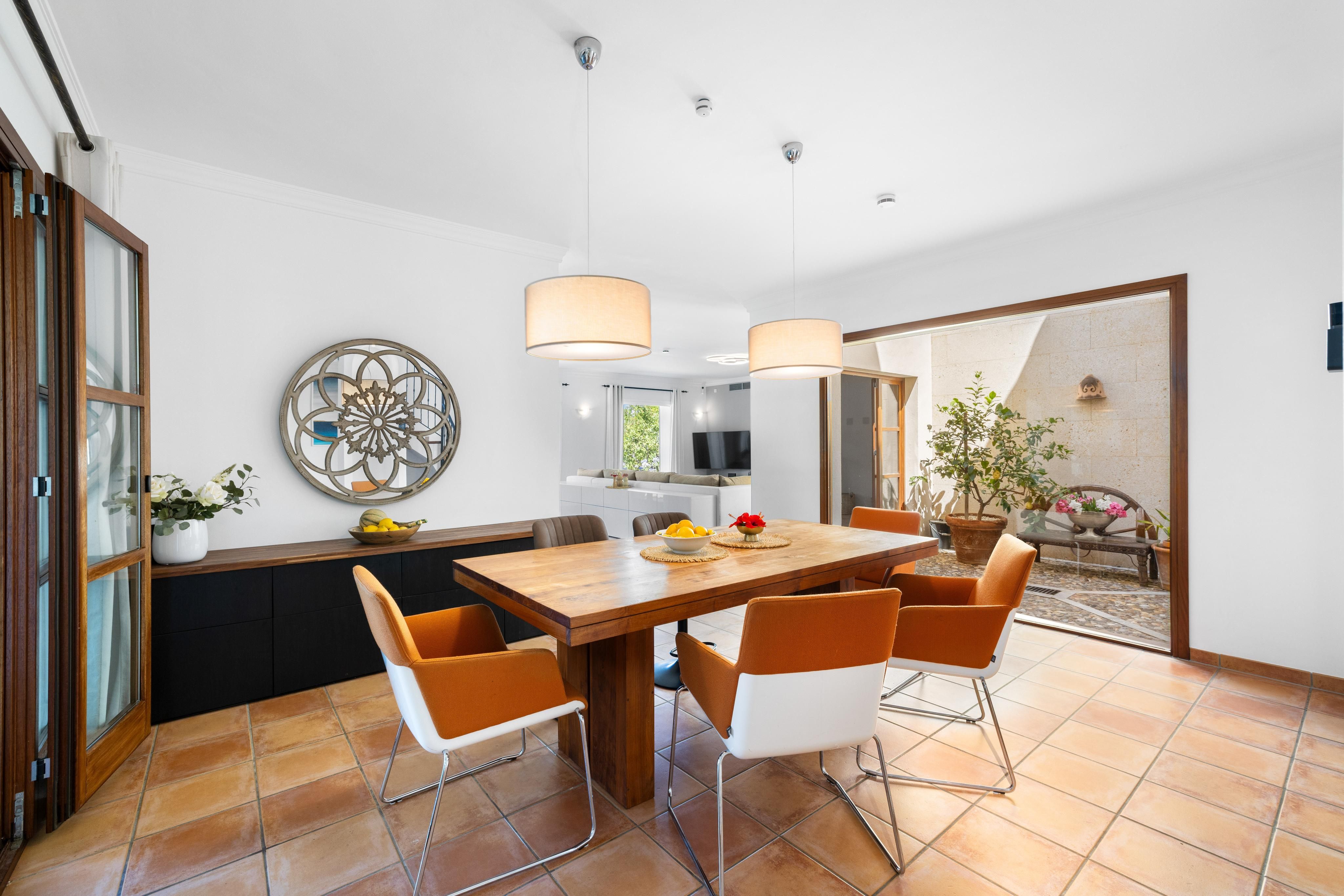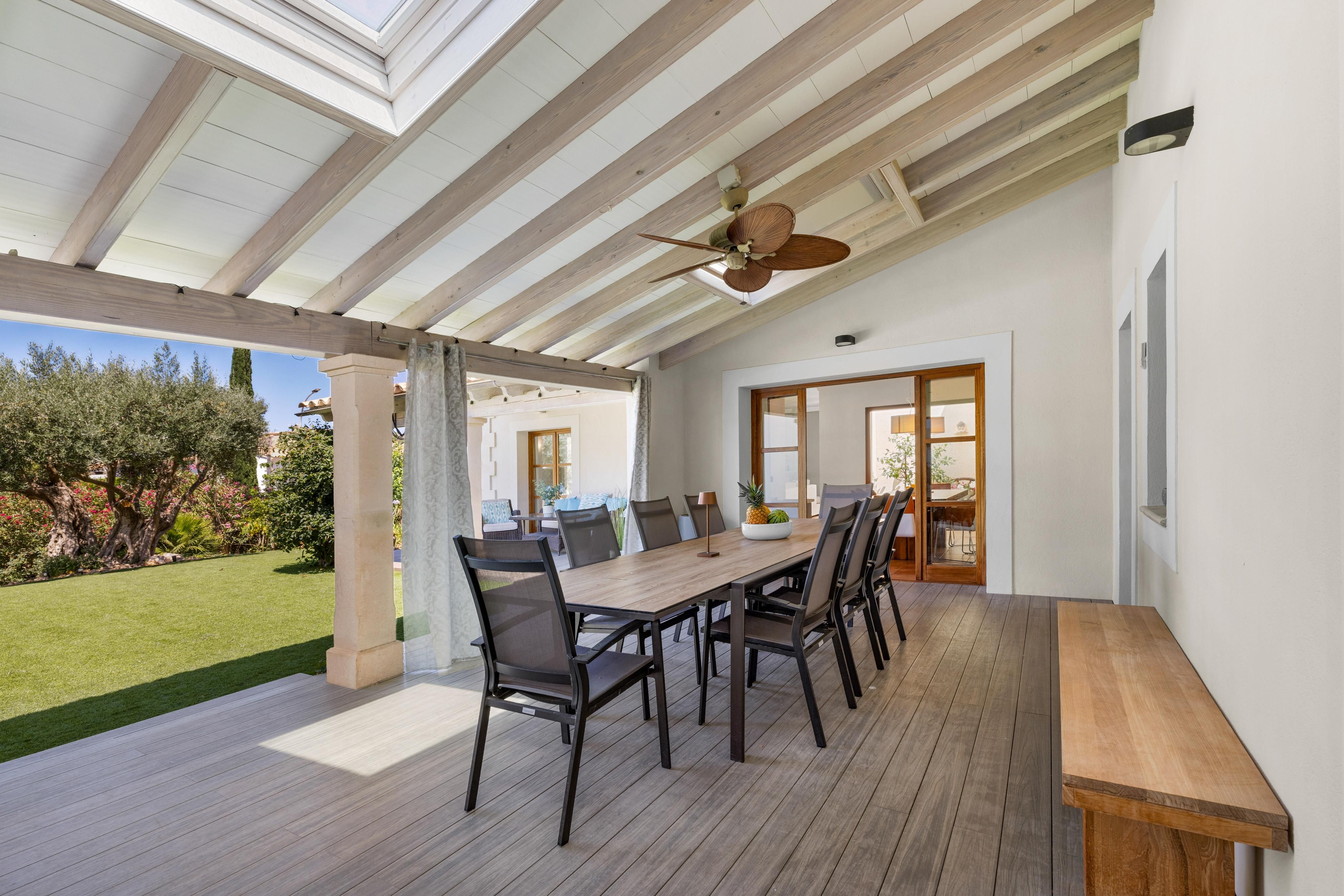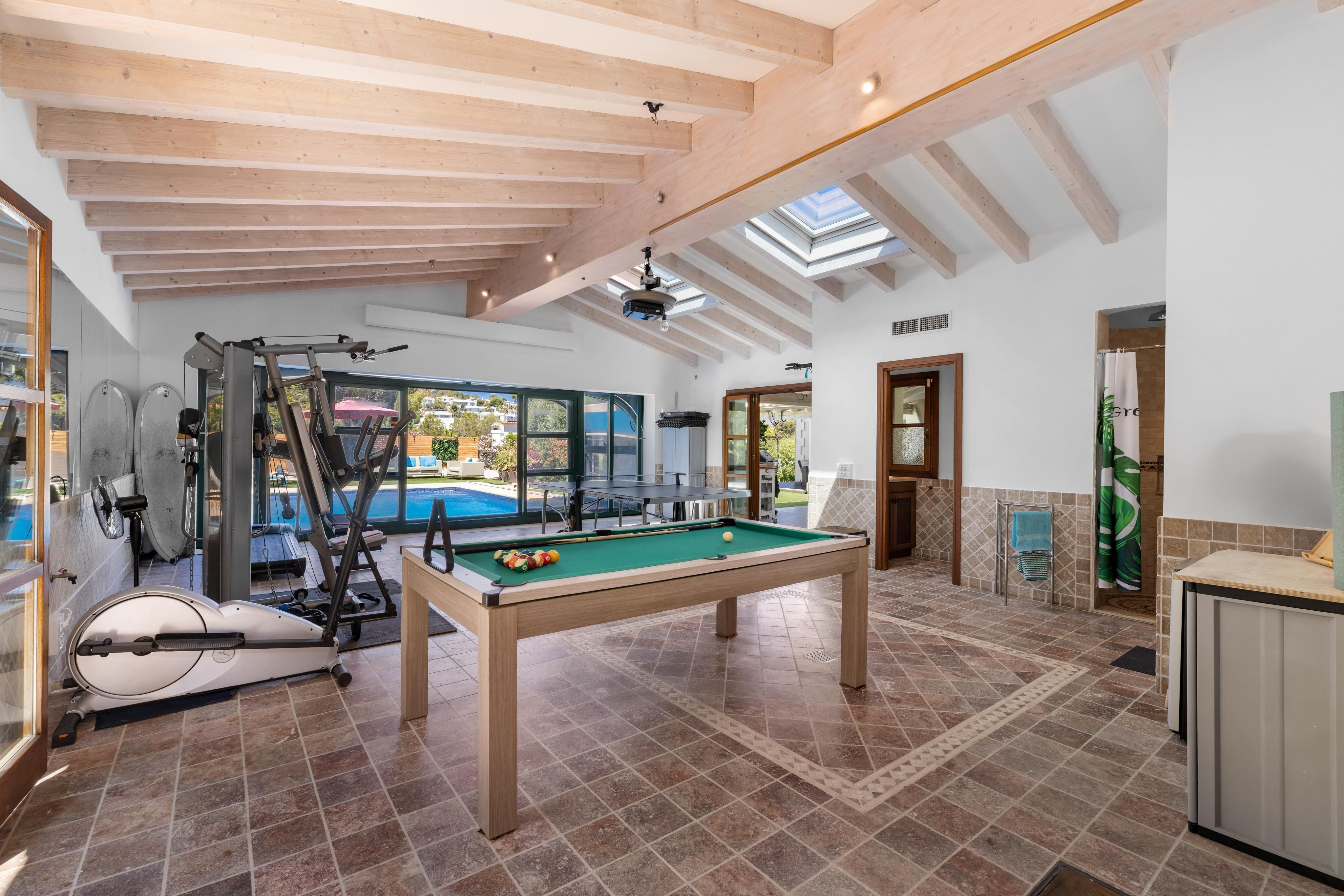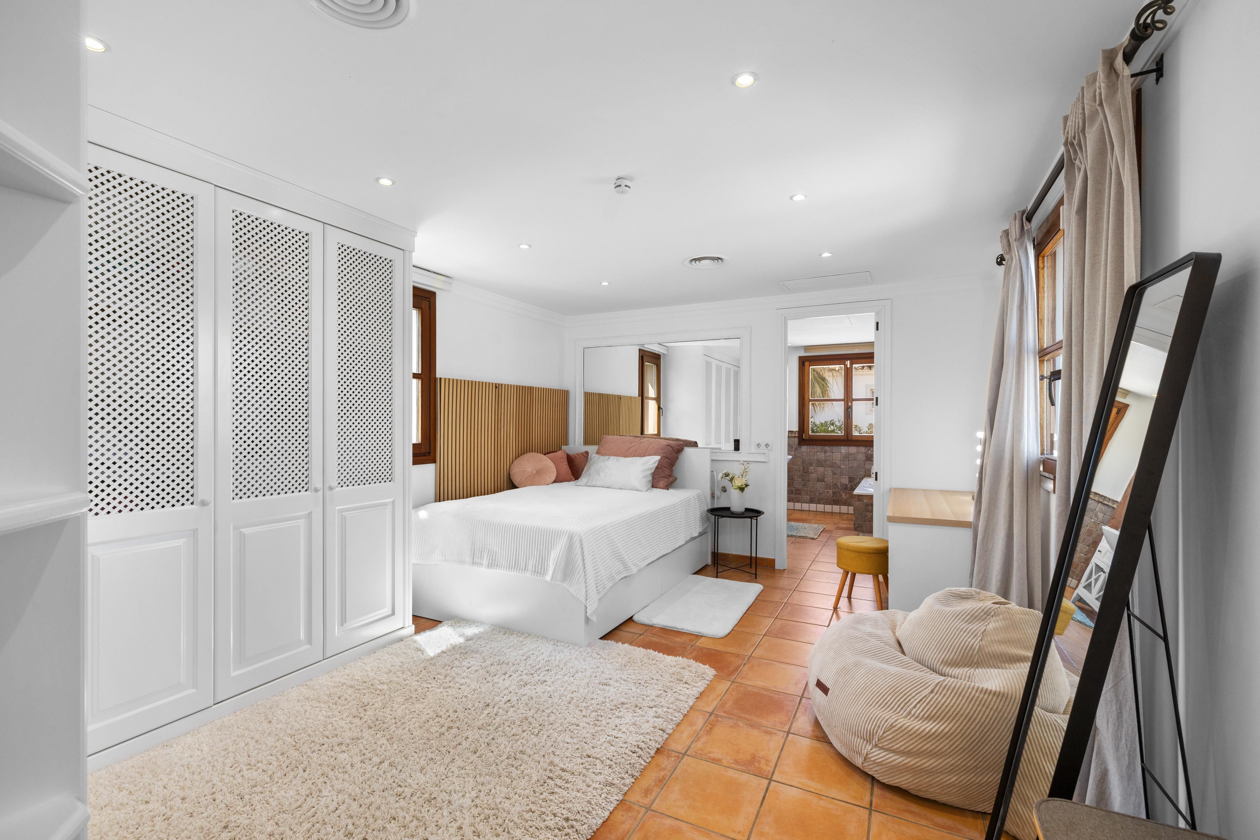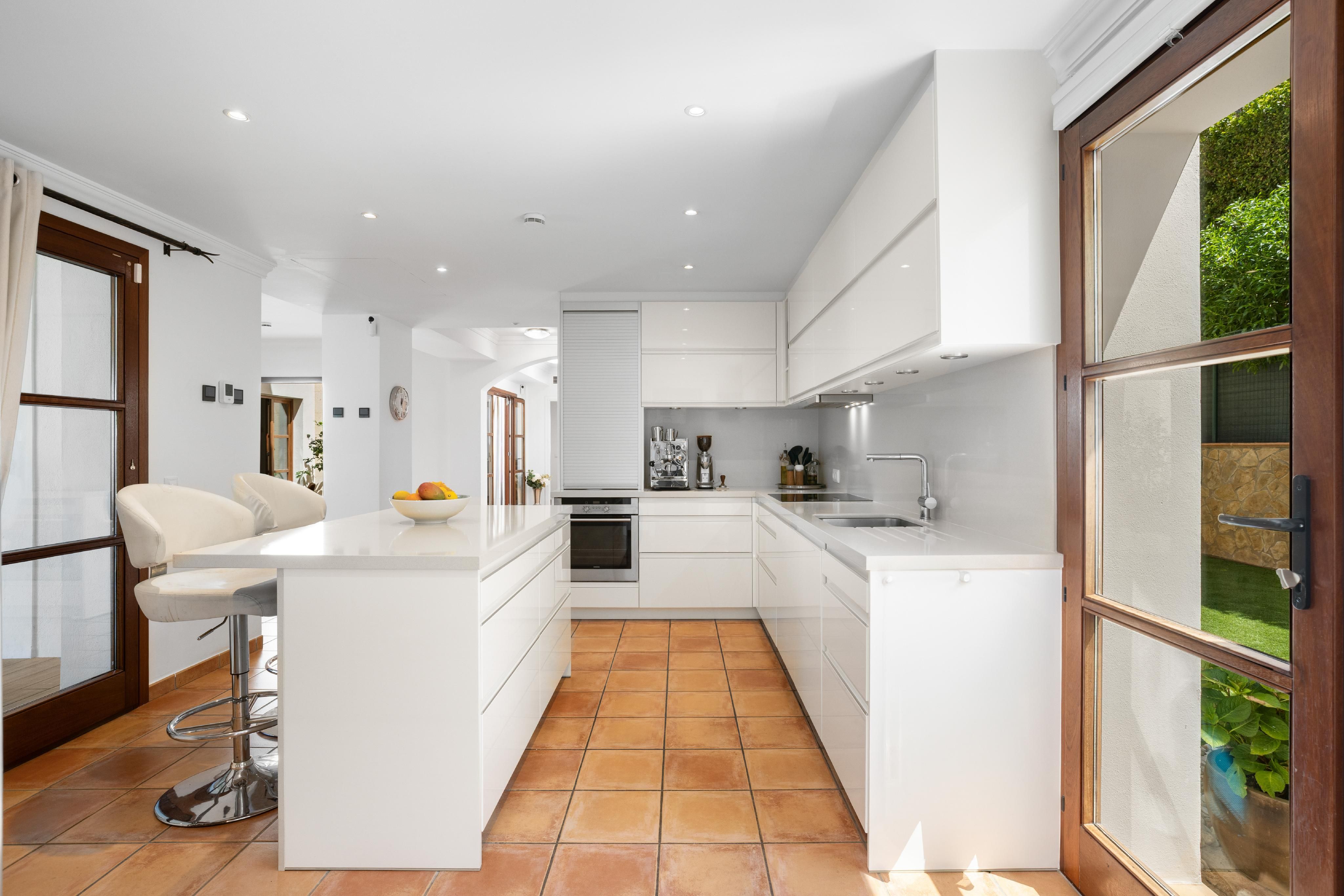 Deze ruime en gezellige villa ligt in een van de meest gewilde gebieden in het zuidwesten van Mallorca, op slechts een klein eindje rijden van de levendige jachthaven van Port Adriano, het stadscentrum van Santa Ponsa, drie uitstekende golfbanen en verschillende prachtige stranden. Het huis is ontworpen met comfort en ontspannen leven in gedachten en biedt vijf ruime slaapkamers, elk met een eigen badkamer, evenals een gezellige aangrenzende woonkamer die perfect is voor bijeenkomsten met familie en vrienden. De lichte en luchtige plattegrond creëert een gevoel van ruimte en lichtheid in het hele huis. De terrastuin is liefdevol aangelegd en beschikt over een binnen-/buitenzwembad, ideaal om het hele jaar door in te zwemmen of gewoon lekker te zonnebaden. Er is genoeg ruimte om buiten te eten, te entertainen of te ontspannen in je eigen oase van rust. De grote keuken met aparte bijkeuken is perfect voor het bereiden van dagelijkse maaltijden of het ontvangen van gasten, terwijl een aparte gastenflat extra flexibiliteit biedt voor bezoekende familie of vrienden. Een eigen fitnessruimte en spa bieden de perfecte plek om thuis tot rust te komen. Verdere kenmerken zijn onder andere: Vloerverwarming, airconditioning (warm en koud), ramen met dubbele beglazing, een open haard, een gastentoilet en twee garages met ruimte voor maximaal vijf auto's. Het huis heeft zowel olieverwarming als de optie om een warmtepomp te gebruiken. Deze laatste is al geïntegreerd in het airconditioningsysteem (model vanaf 2024) en kan op verzoek worden geactiveerd. Dit huis combineert ruimte, comfort en locatie - een ideale keuze voor iedereen die optimaal wil genieten van de Mallorcaanse levensstijl.