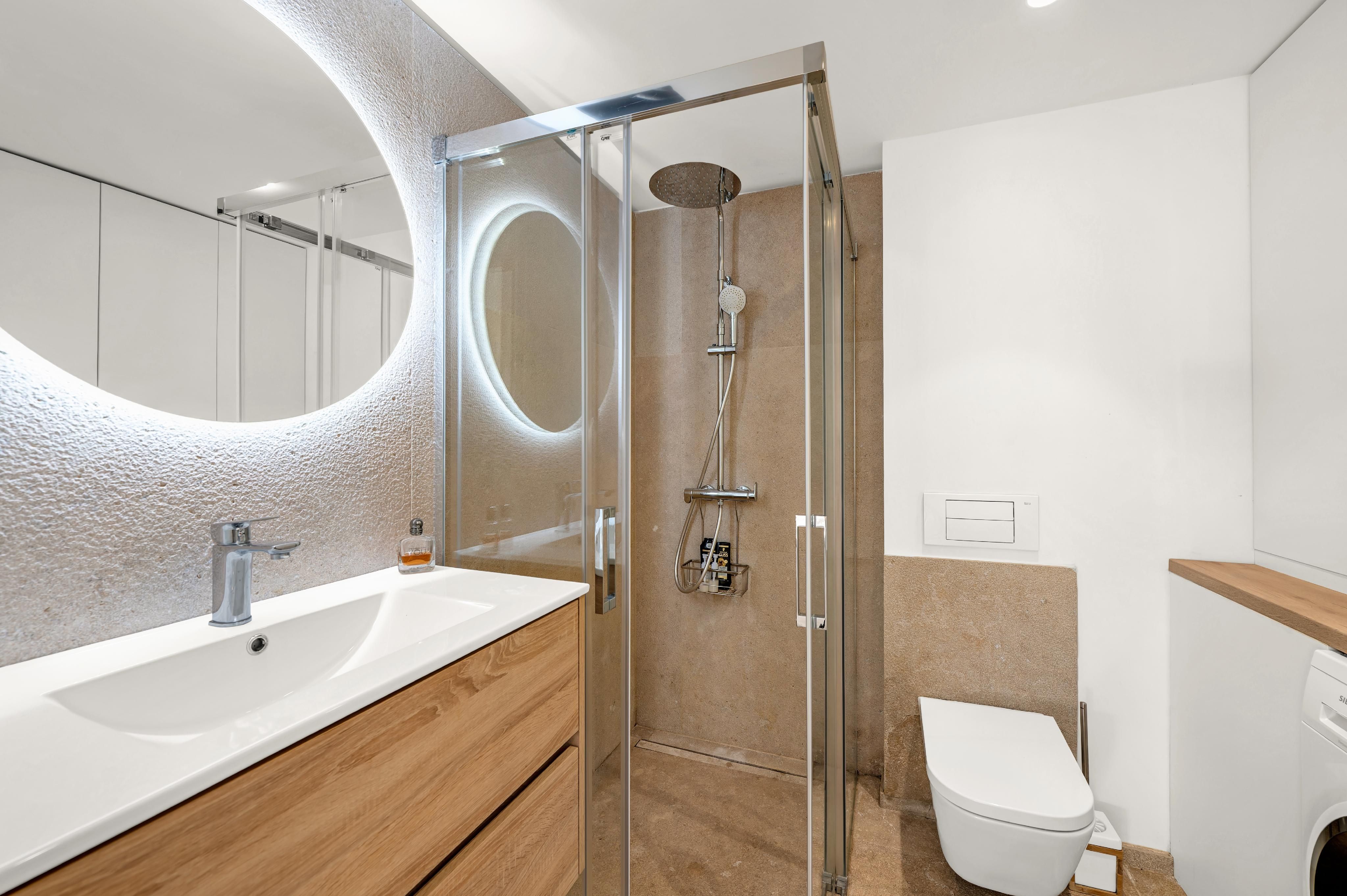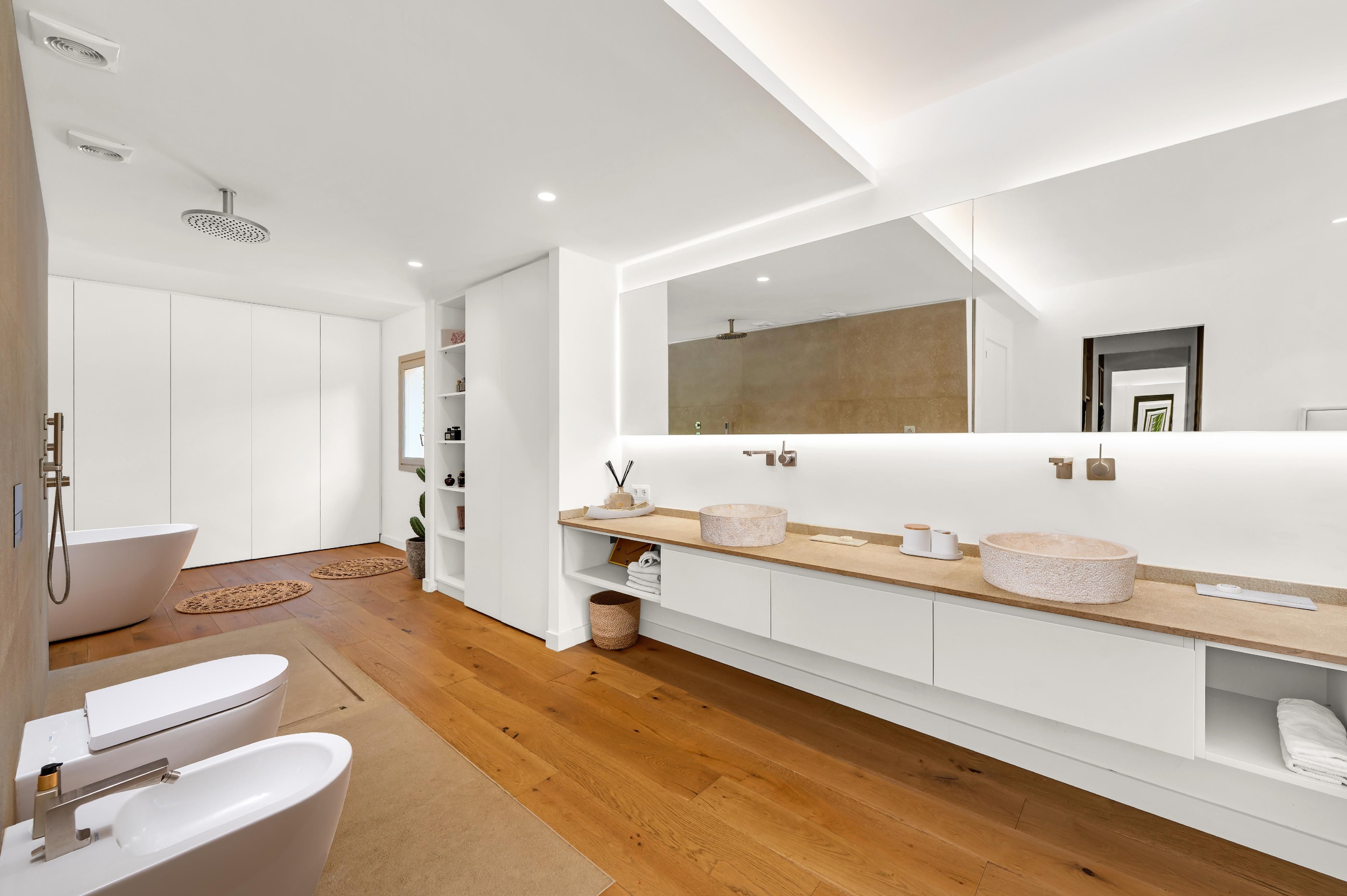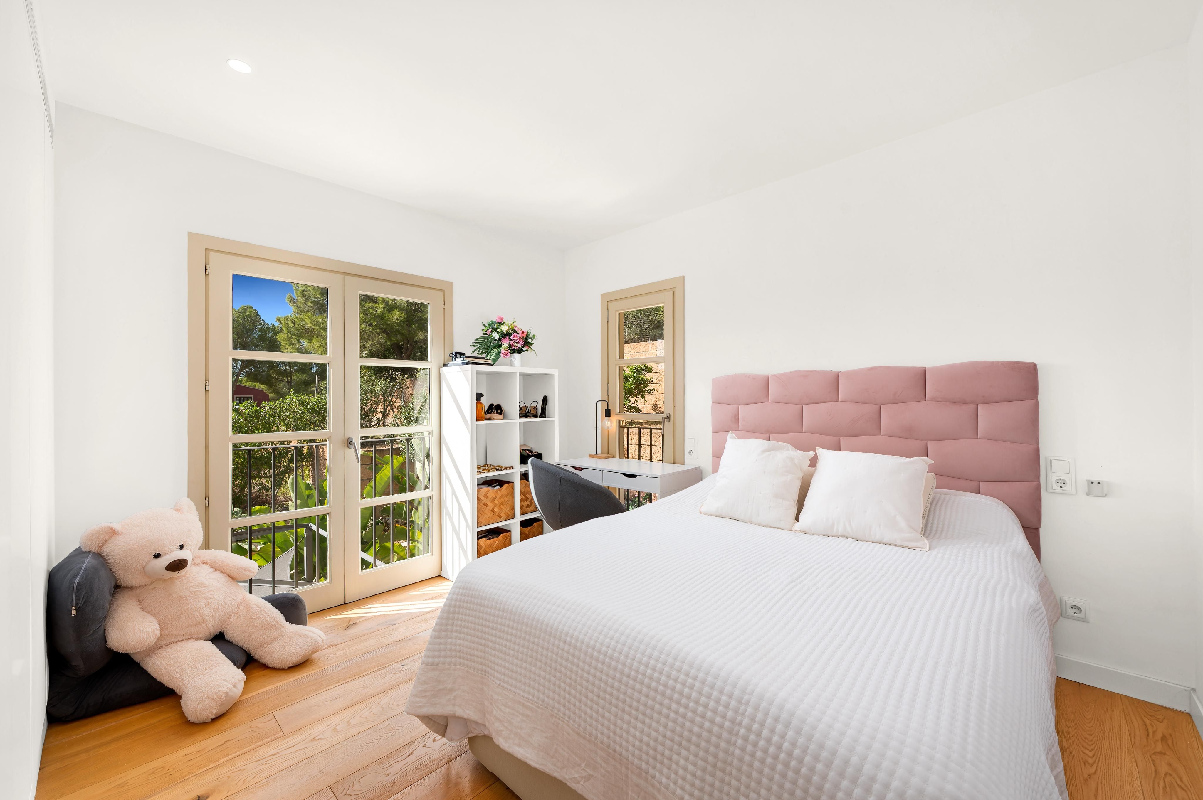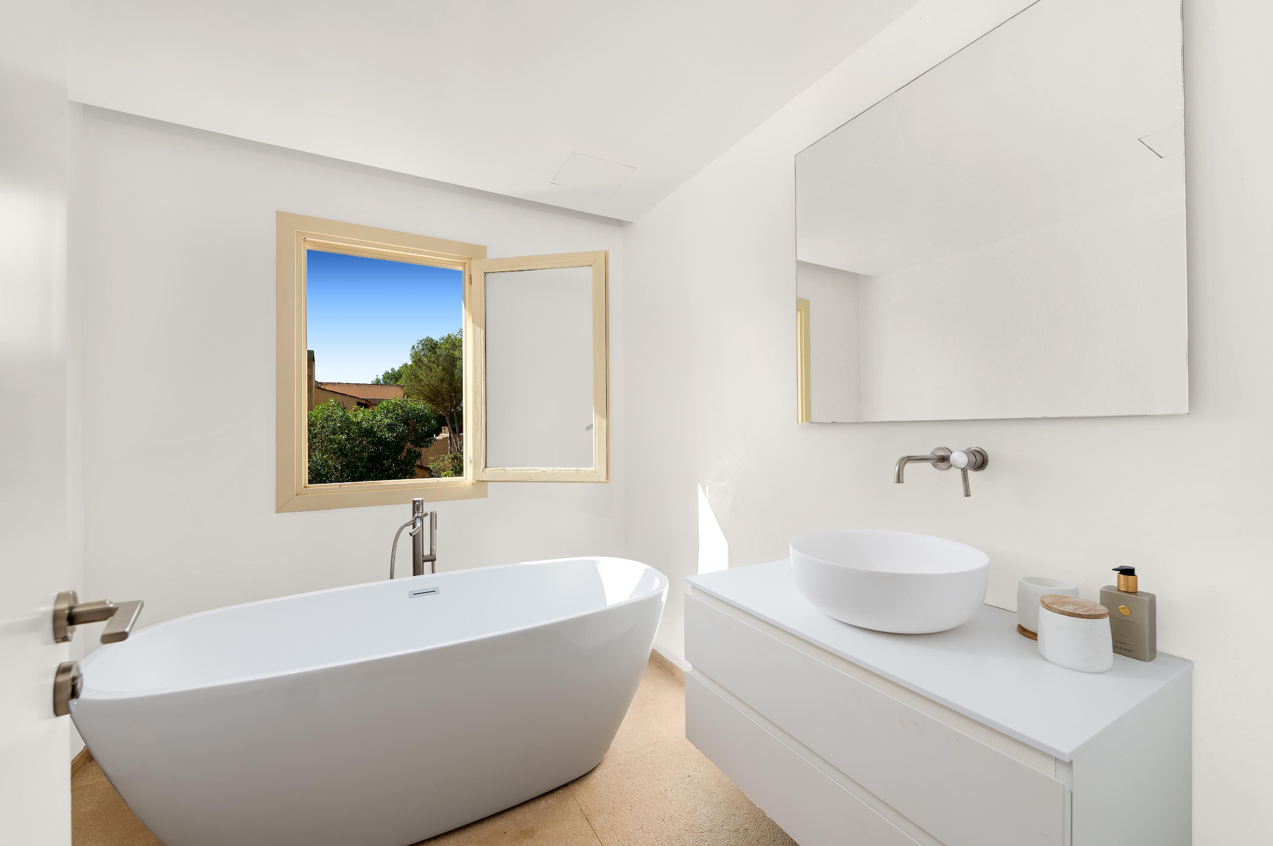 Deze charmante villa ligt in de rustige woonwijk Costa de la Calma, op slechts 600 meter van het strand. Het huis ligt op een ruim perceel van ongeveer 2.000 m² op het zuiden en biedt veel privacy, zon en mediterrane flair. De lichte, open woonkamer creëert een warme en uitnodigende sfeer - perfect voor het gezinsleven en vooral leuk voor de jongere leden van het huishouden. De ruime overdekte en open terrassen bieden ideale ruimtes om te ontspannen of gezellig samen te zijn en nodigen je uit om gezellige avonden door te brengen met familie en vrienden onder de Mallorcaanse hemel terwijl je geniet van culinaire hoogstandjes. Een bijzonder hoogtepunt is het zwembad van 54 m², dat prachtig betegeld is met Granito Verde Paraná van hoge kwaliteit en een vleugje elegantie en verfijning toevoegt aan de buitenruimte. De villa heeft vijf ruime slaapkamers en vier badkamers, evenals verwarming en warme en koude airconditioning voor comfort het hele jaar door. Een gastenappartement biedt extra flexibiliteit en privacy voor bezoekers. Een ideale gelegenheid om te genieten van het mediterrane leven op zijn best - op een van de meest rustige en gewilde locaties in het zuidwesten van Mallorca.