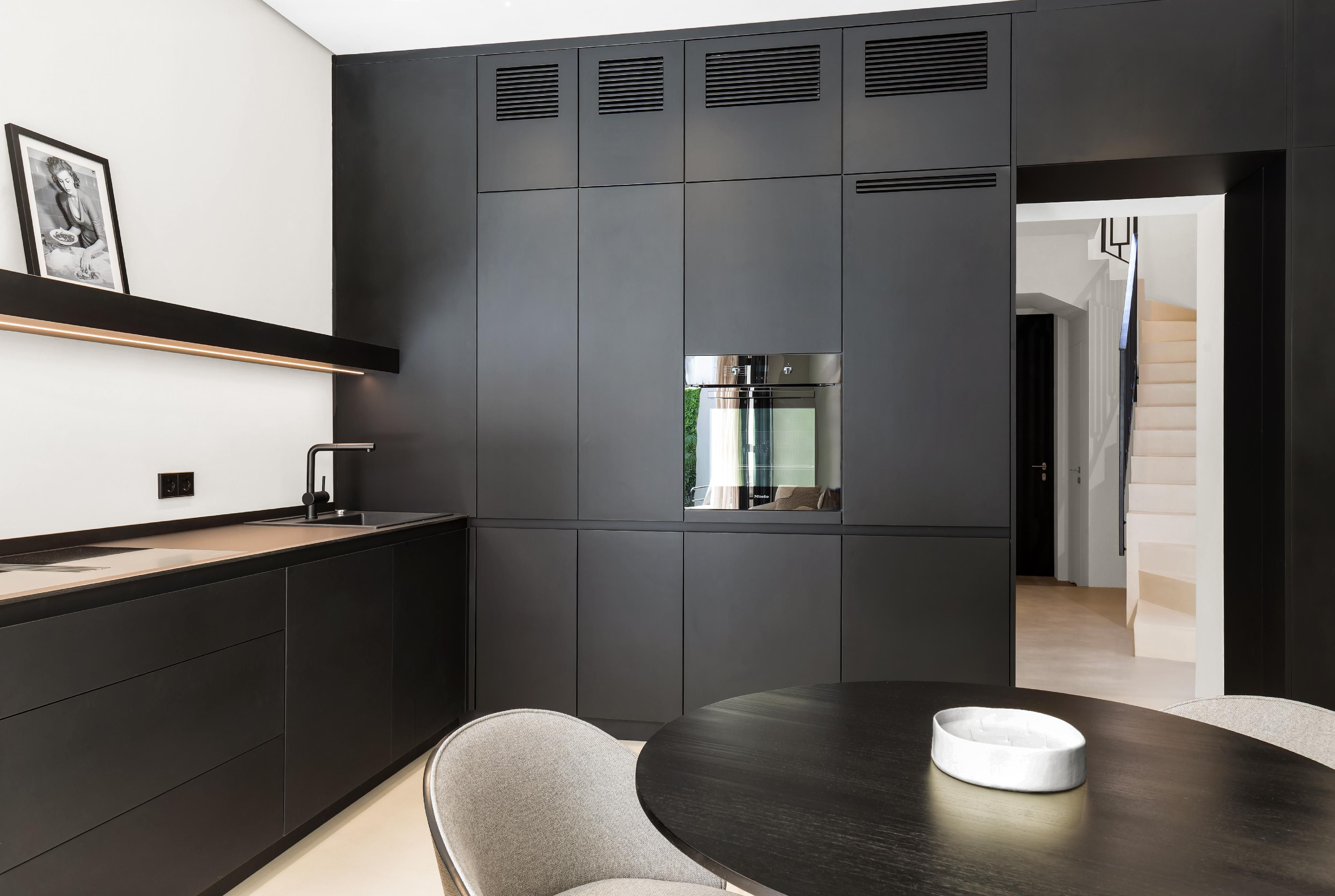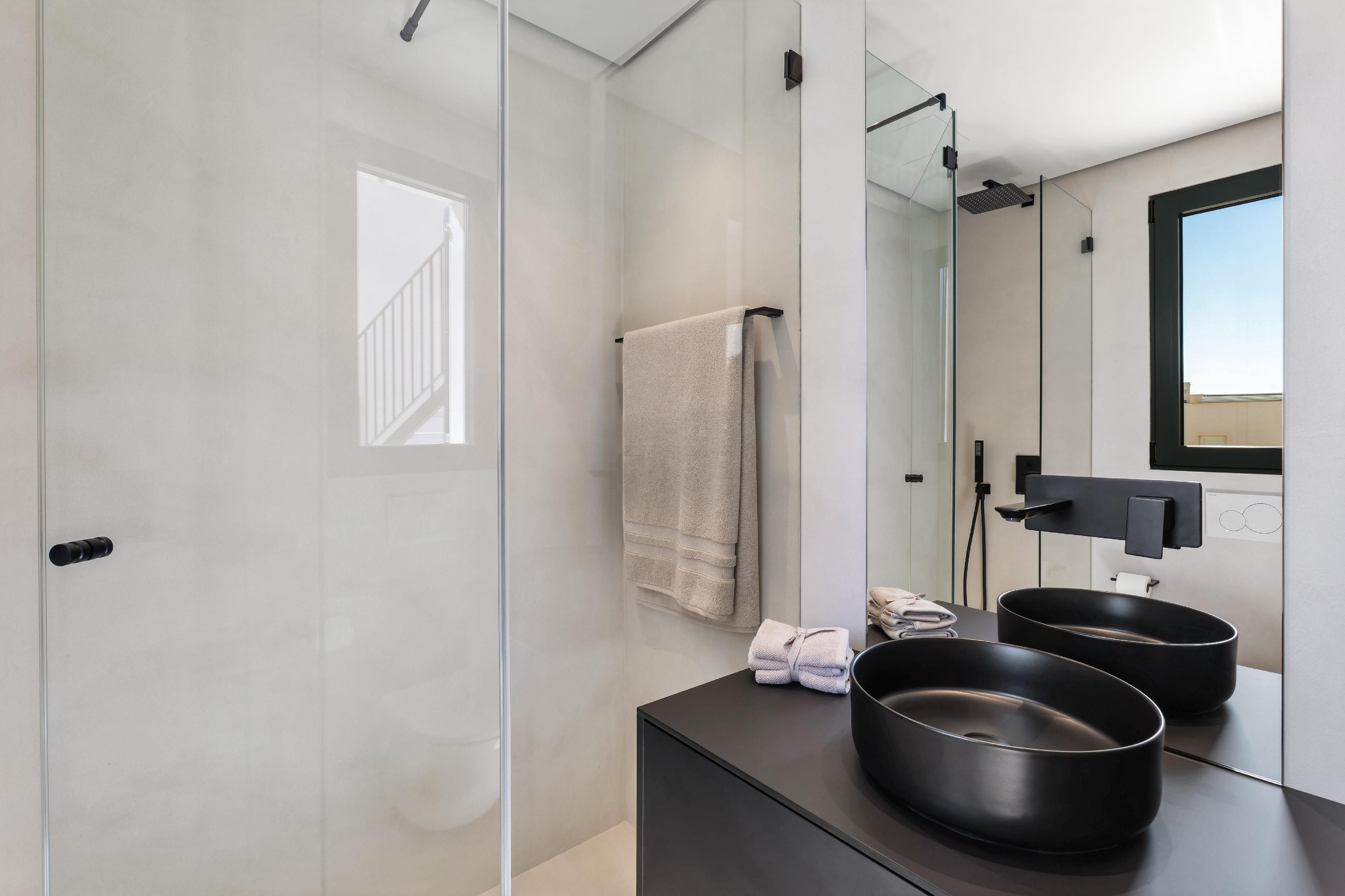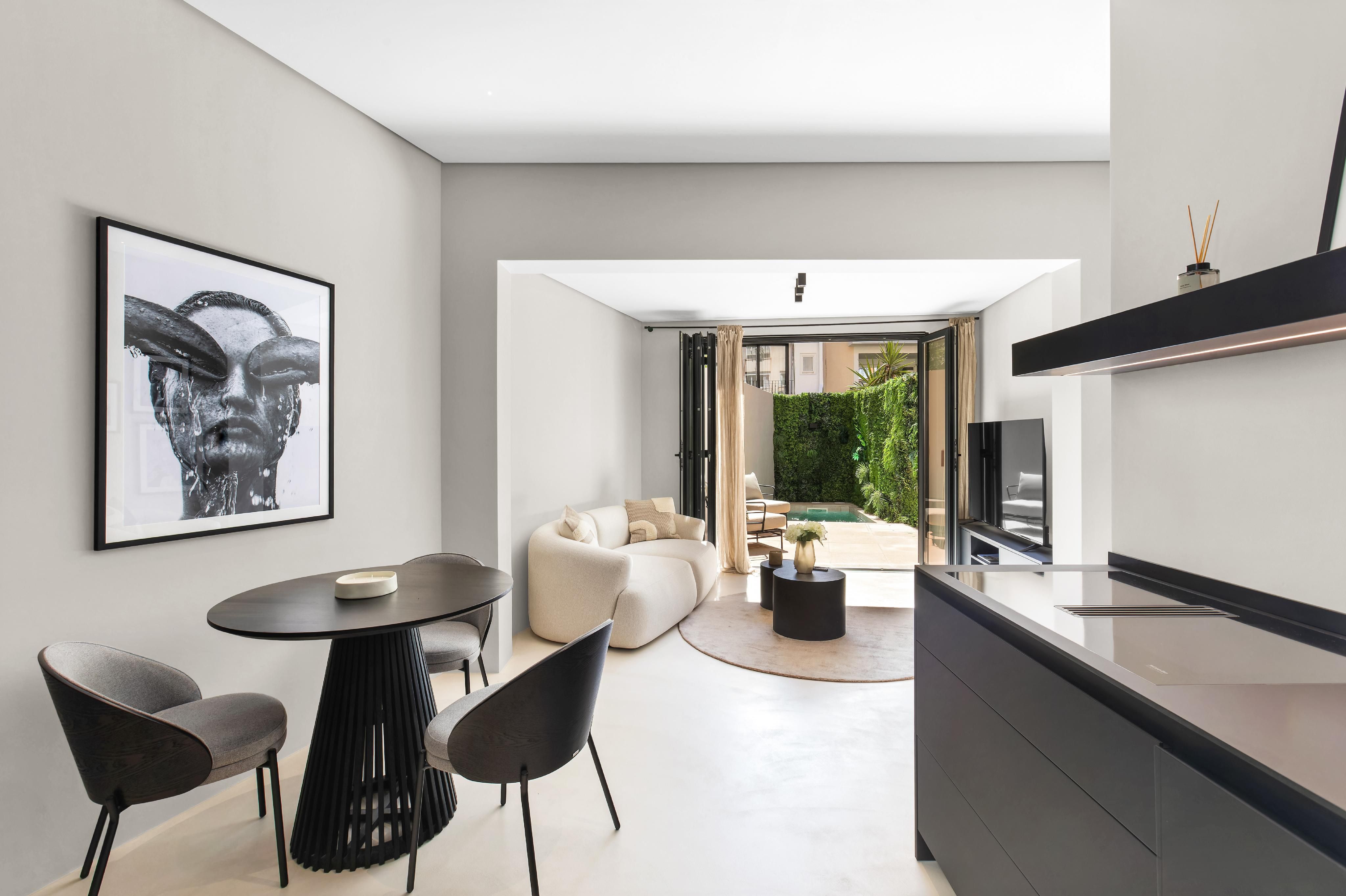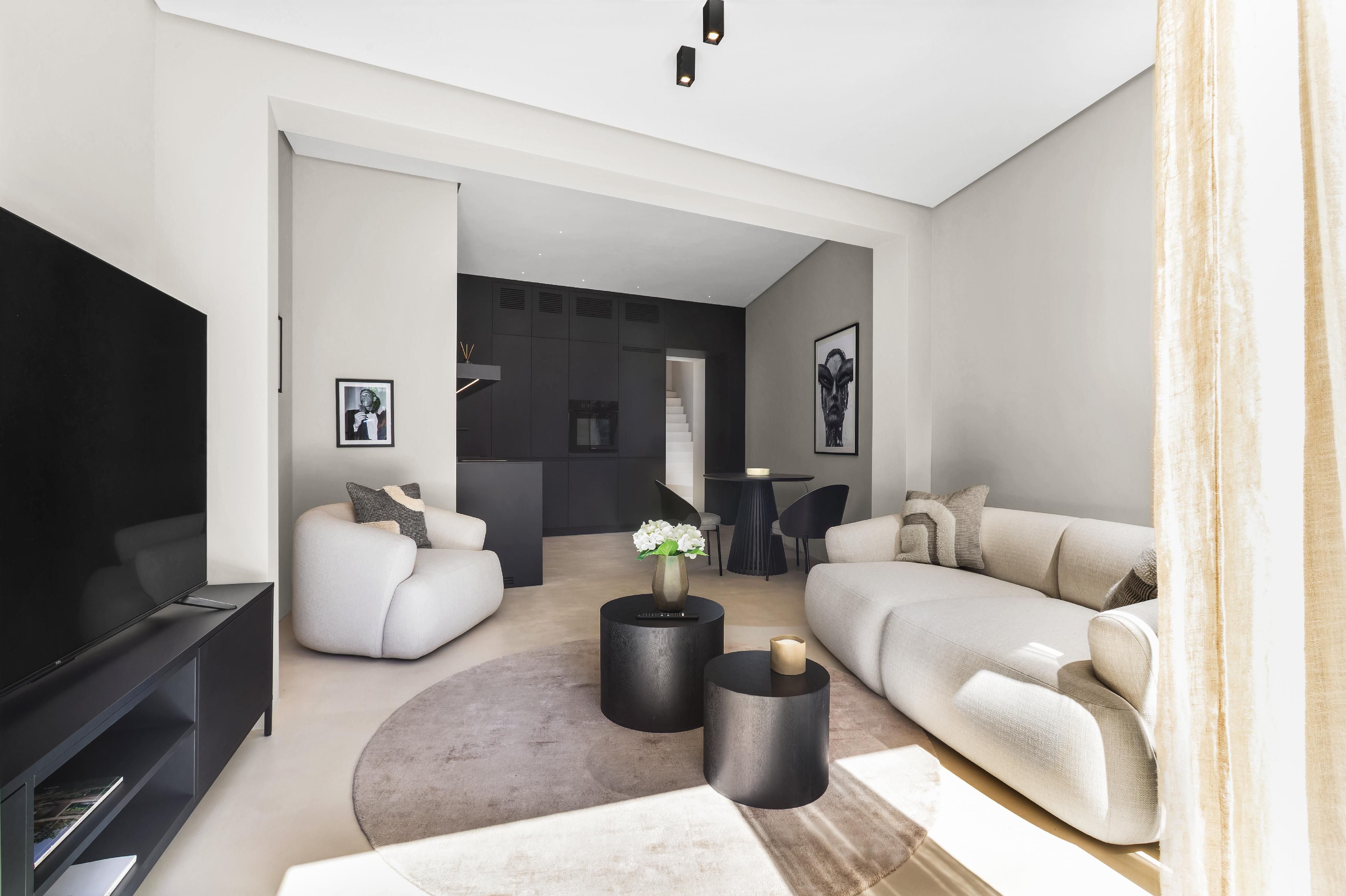 Welkom bij een exclusieve woning in het hart van Palma, waar modern design en comfort worden gecombineerd om een uitzonderlijke levensstijl te creëren. Deze indrukwekkende woning, gebouwd in 2024, strekt zich uit over een totale oppervlakte van 218 m², waarvan 110 m² is gewijd aan de elegante, lichtovergoten woonkamer. Het heeft drie slaapkamers, twee complete badkamers en een gastentoilet, waardoor een functionele indeling met maximale privacy en welzijn wordt gegarandeerd. Vanaf het moment dat je het huis binnenkomt, straalt het een sfeer van verfijning uit. De hoogwaardige minerale kwartsvloeren geven de ruimte een modern en robuust karakter, terwijl de grote ramen veel natuurlijk licht binnenlaten en een uitgestrekte, uitnodigende sfeer creëren. De terrassen met een totale oppervlakte van 80 m², op het zuidwesten, zijn de ideale plek om het hele jaar door te genieten van het Mallorcaanse zonlicht, terwijl de privébinnenplaats een intieme en gezellige sfeer biedt met een elegant dompelbad - perfect om te ontspannen op warme zomerdagen. De belangrijkste woonruimte combineert de woonkamer en keuken in een open, lichte ruimte die zowel functionaliteit als stijl biedt. De keuken is uitgerust met hoogwaardige Miele-apparatuur, waaronder een vaatwasser, oven en kookplaat met geïntegreerde afzuigkap, waardoor efficiëntie en esthetiek worden gecombineerd in een minimalistische oplossing. Op de eerste verdieping is er een ingebouwde kast die discreet een AEG wasmachine/droger herbergt, wat gemak biedt zonder afbreuk te doen aan het ontwerp. Het airconditioningsysteem zorgt het hele jaar door voor aangename temperaturen dankzij het Mitsubishi-systeem voor koude/warme lucht, en er is ook infrarood vloerverwarming. De verlichting is zorgvuldig ontworpen met behulp van de APURE-technologie van Porsche Design Studio, die de moderne en functionele esthetiek van elke kamer versterkt. Elementen zoals op maat gemaakte spiegels en handgesmede balustrades, evenals de zorgvuldige selectie van materialen, voegen persoonlijkheid en elegantie toe aan elke ruimte. De sanitaire voorzieningen van prestigieuze merken als Falper en Banni maken een woning compleet waarin elk detail is geselecteerd volgens de hoogste kwaliteits- en ontwerpnormen. De toegang is via veiligheidsdeuren met drievoudige vergrendeling, waardoor je verzekerd bent van maximale gemoedsrust, en de privégarage biedt een praktische en veilige oplossing voor zowel je auto als voor extra opslagruimte. Deze unieke woning vertegenwoordigt de perfecte combinatie van luxe, functionaliteit en een bevoorrechte locatie.