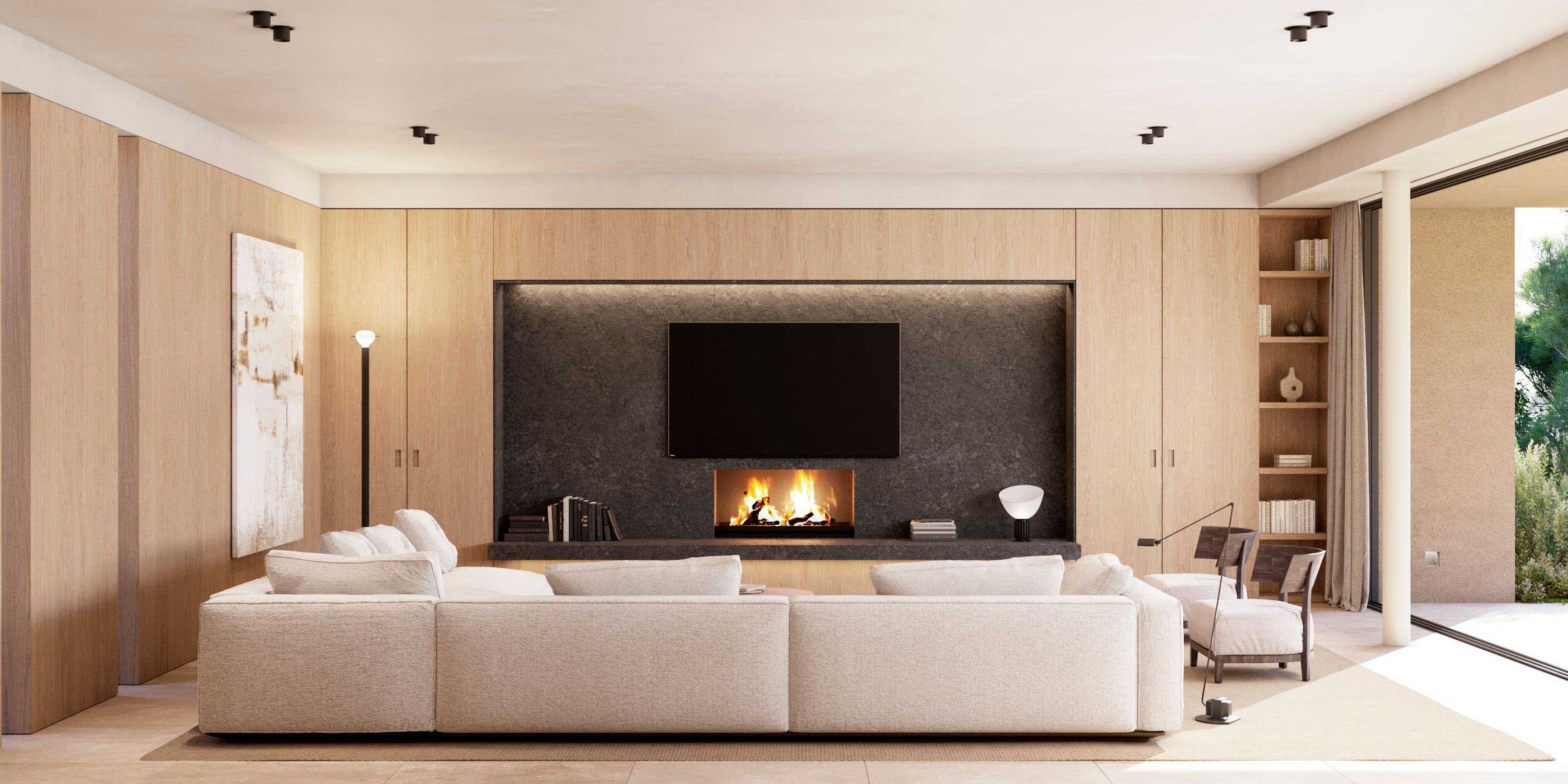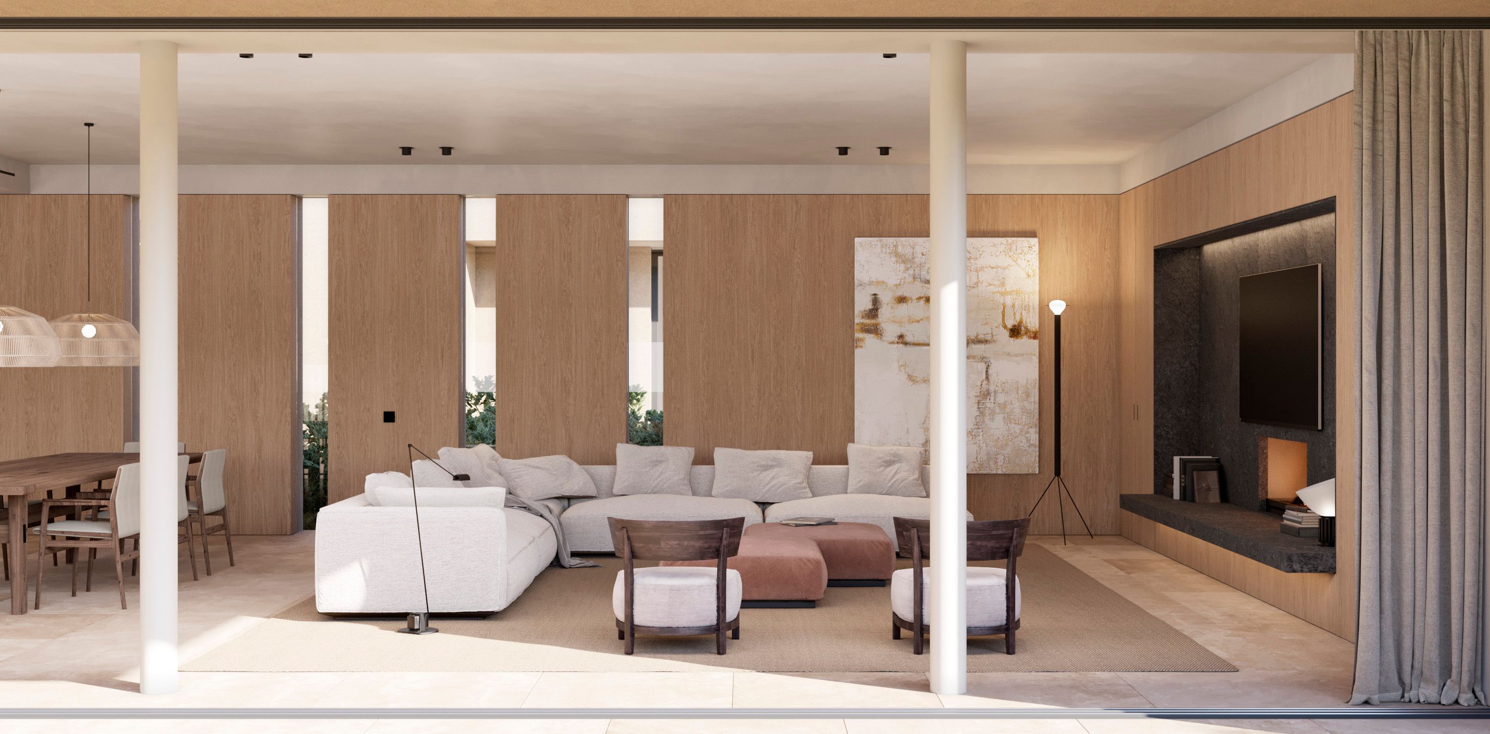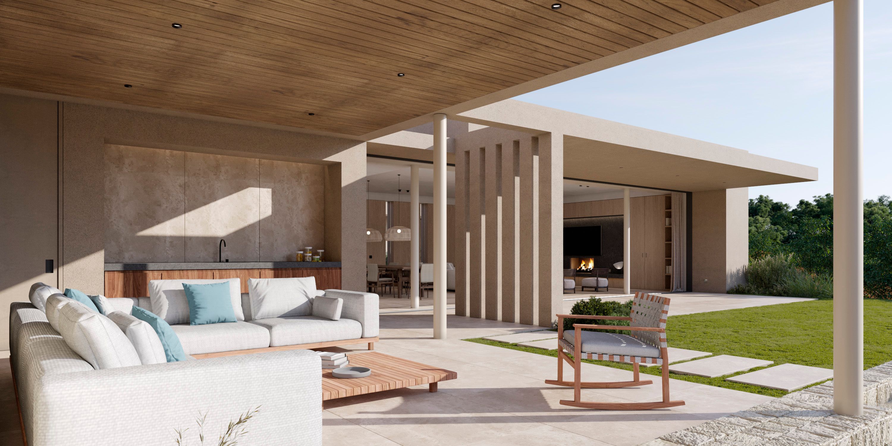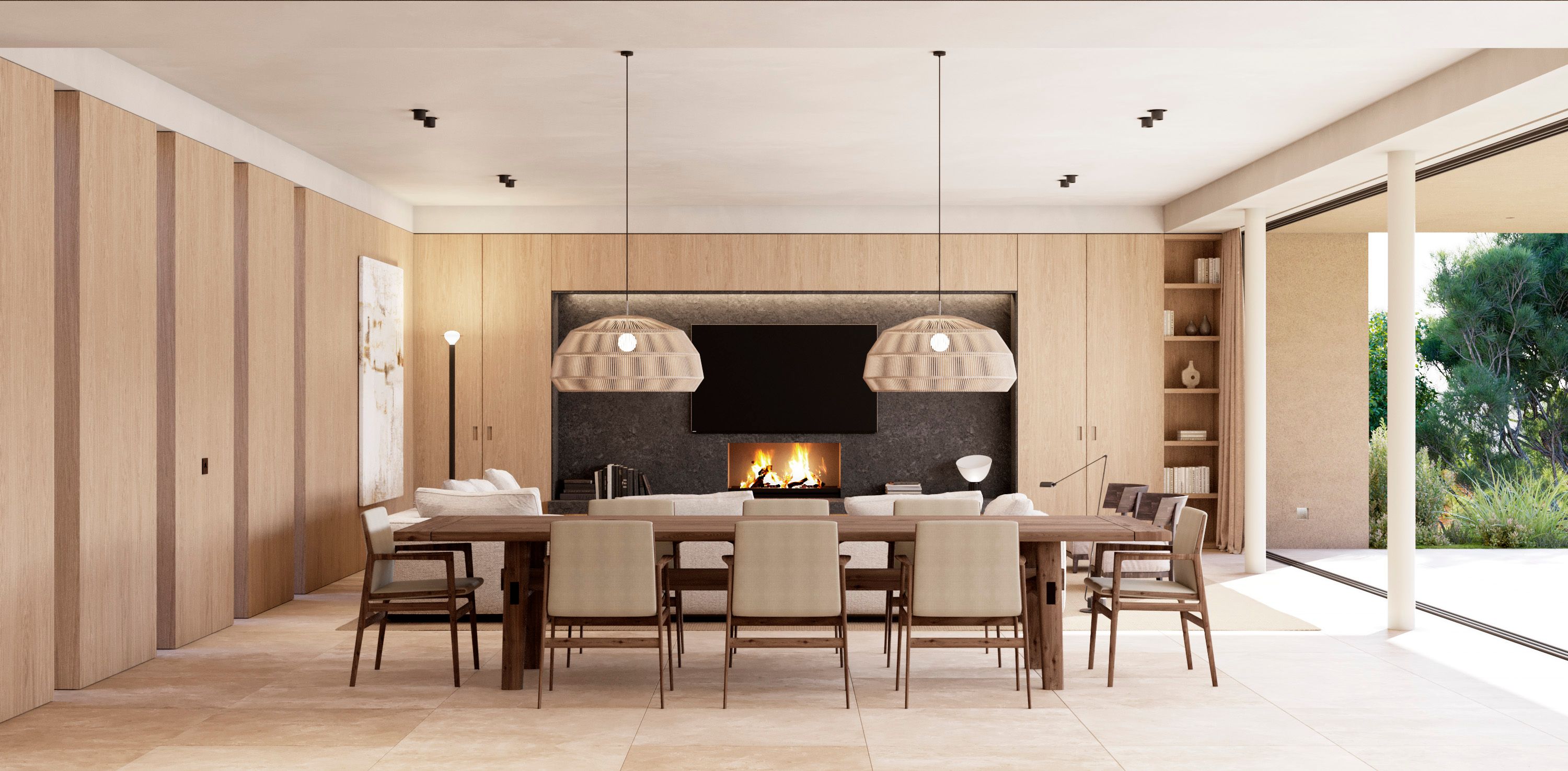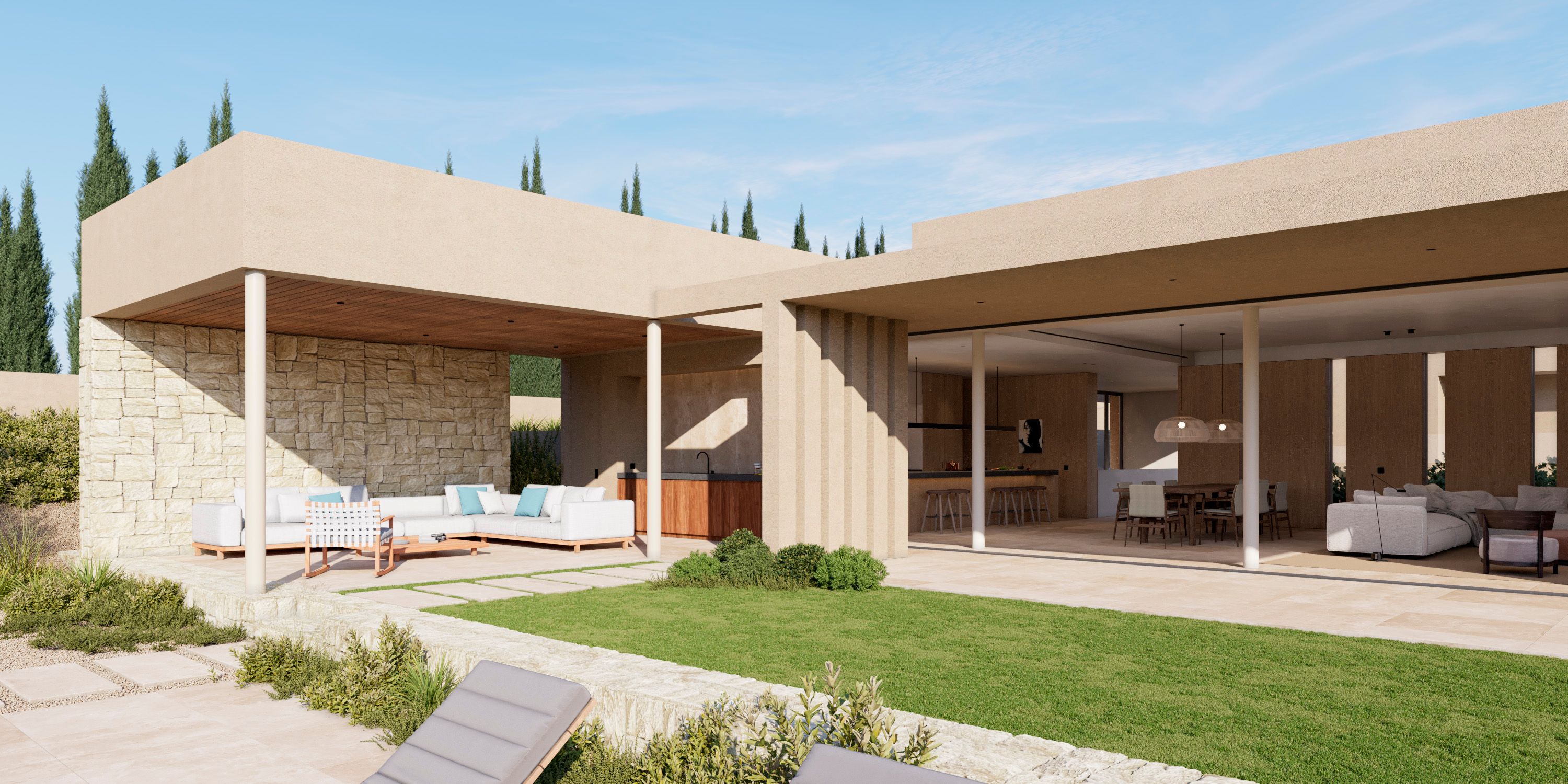 De belangrijkste woonlaag heeft een ruime, open woon-, eetkamer en keuken die naadloos overloopt in het hoofdterras - ideaal voor entertainment of ontspanning. Een volledig uitgeruste buitenkeuken, aangelegde tuinen en een privézwembad bieden de perfecte omgeving om te genieten van de mediterrane levensstijl.
