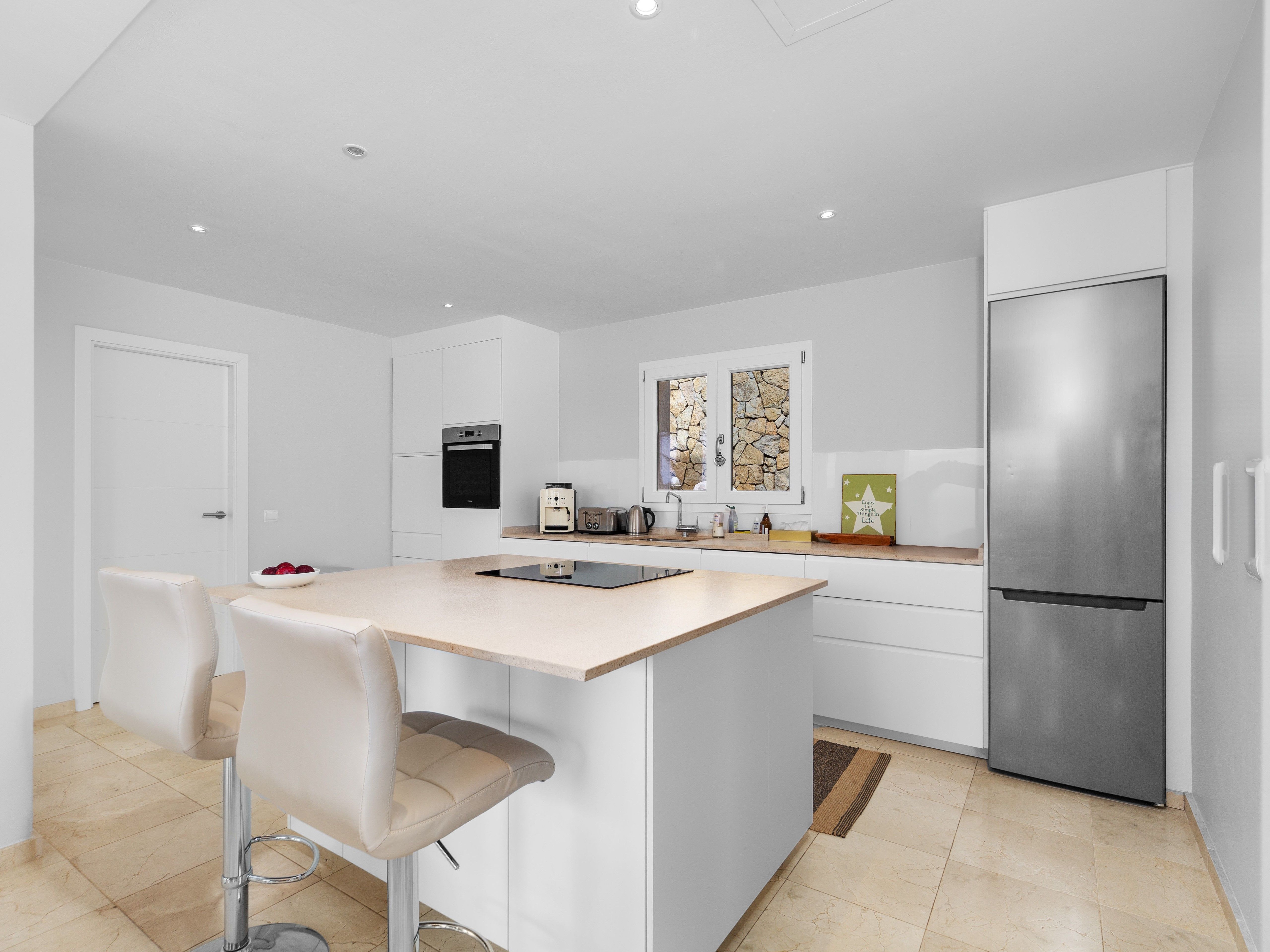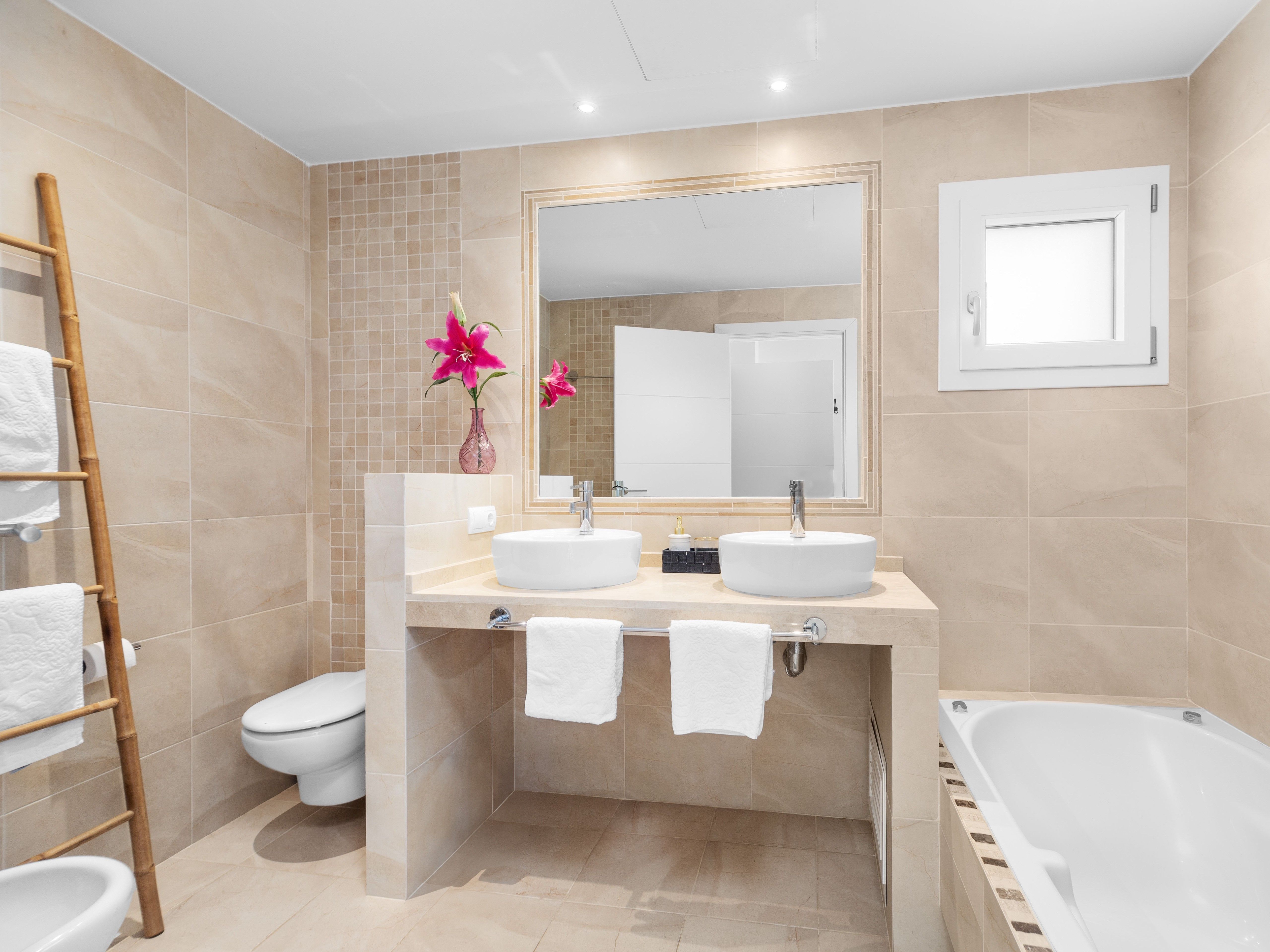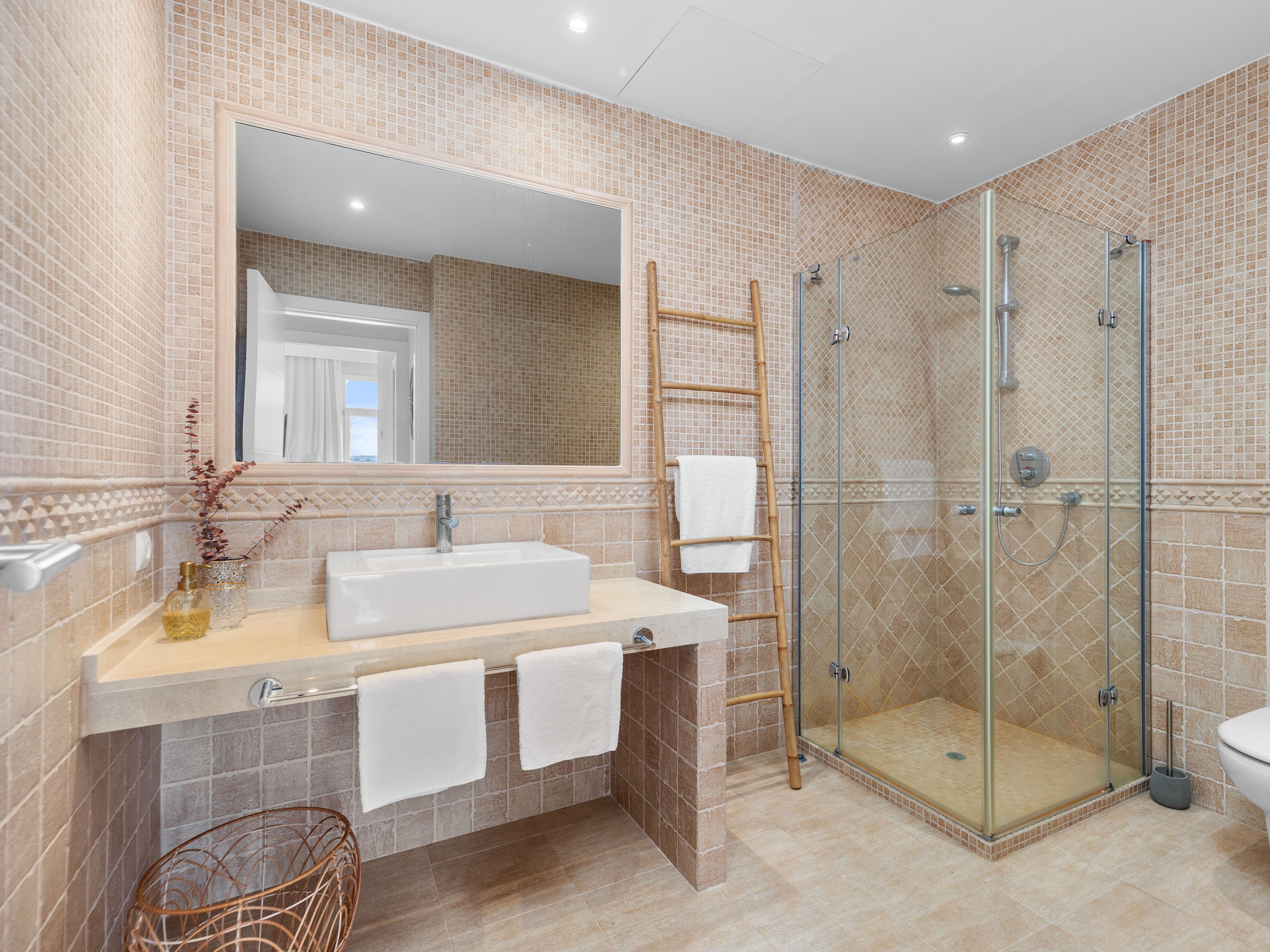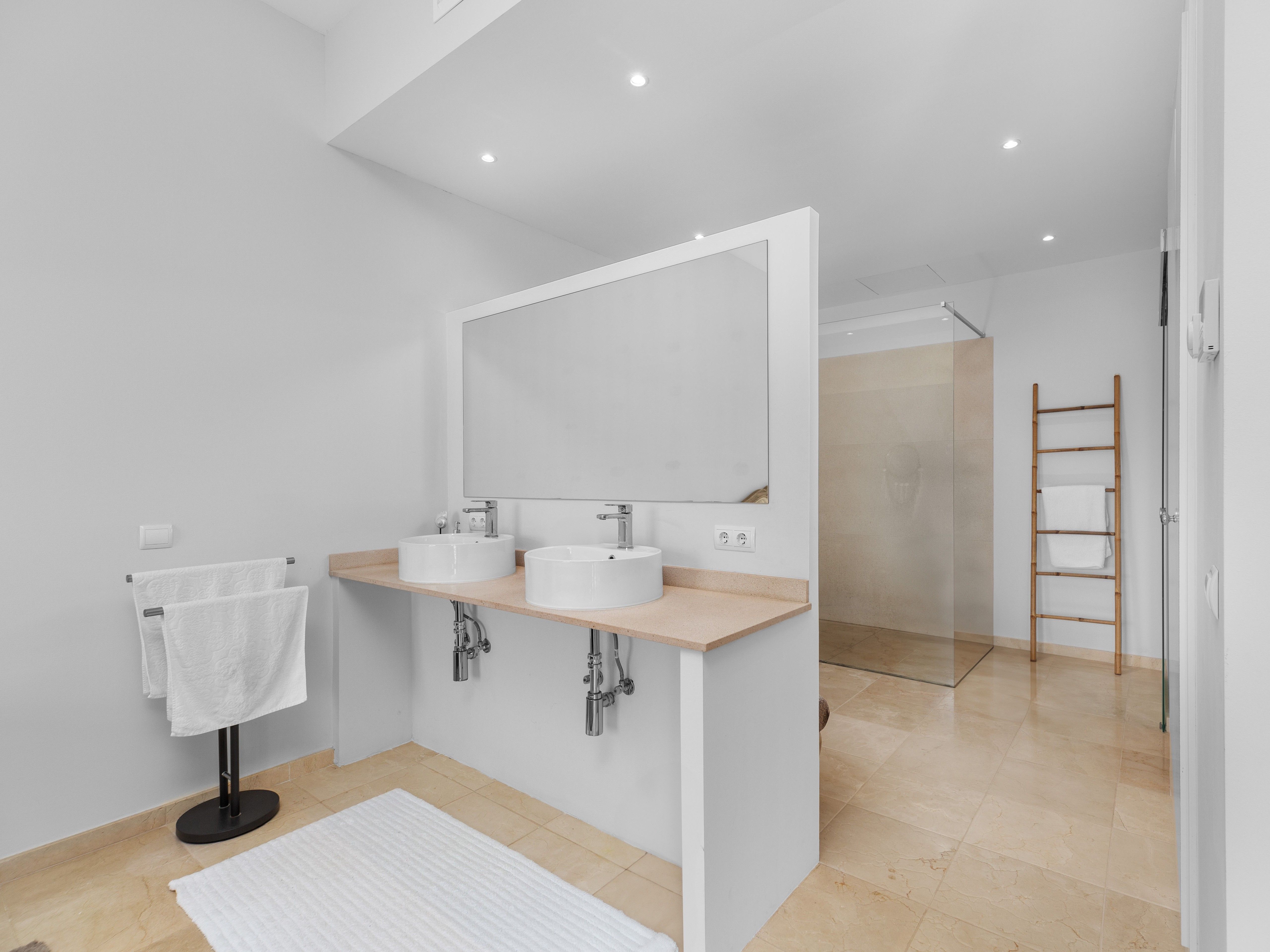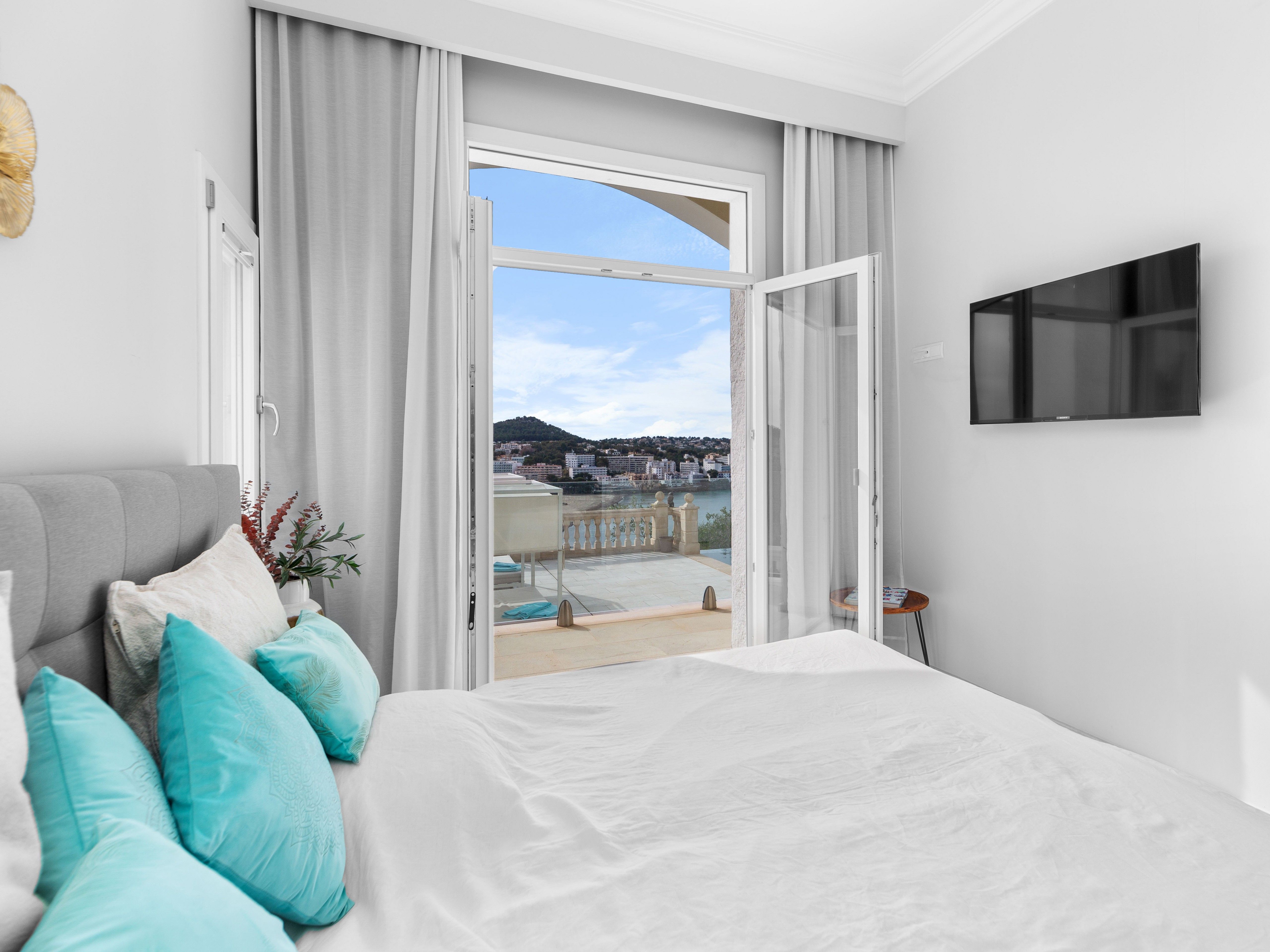 Deze elegante villa in Santa Ponsa combineert klassieke charme met hoogwaardige materialen en een eersteklas locatie. Met adembenemend zeezicht op de baai van Santa Ponsa vanaf beide verdiepingen, ruime terrassen en een stijlvol buitenzwembad biedt deze woning een uitzonderlijke woonervaring op een woonoppervlakte van ongeveer 305 m². De bovenverdieping maakt indruk met een open woonruimte met een hoogwaardige keuken, die naadloos overloopt in een ruim terras met spectaculair uitzicht op zee. Een aparte wasruimte biedt extra gemak. Er is ook een slaapkamer met een eigen badkamer en een gastentoilet op dit niveau. Op de onderste verdieping is de ruime ouderslaapkamer met en-suite badkamer, aangevuld met nog twee slaapkamers, waarvan er een een eigen badkamer heeft, terwijl de derde slaapkamer gebruikmaakt van een aparte badkamer. Een ruim terras met zwembad op deze verdieping nodigt ook uit om te ontspannen en te genieten van het unieke uitzicht. Het interieur van de villa is voorzien van elegante natuurstenen vloeren, die het hele pand een warme en stijlvolle sfeer geven. Elektrische vloerverwarming zorgt voor aangename temperaturen, zelfs op koelere dagen. De buitenruimte biedt een volledig uitgeruste buitenkeuken met BBQ, die de perfecte omstandigheden creëert voor gezellige avonden. Een carport met ruimte voor twee auto's en een extra parkeerplaats zijn beschikbaar voor voertuigen. Dankzij de toplocatie genieten de bewoners van deze villa van een perfecte combinatie van rust, privacy en de nabijheid van de beste golfbanen, jachthavens en stranden van de regio. Dit exclusieve object is een uniek aanbod voor kopers die op zoek zijn naar een luxe woning met klassieke elegantie in Santa Ponsa. Bezichtigingen zijn zeker de moeite waard om dit uitzonderlijke object in al zijn schoonheid te ervaren.