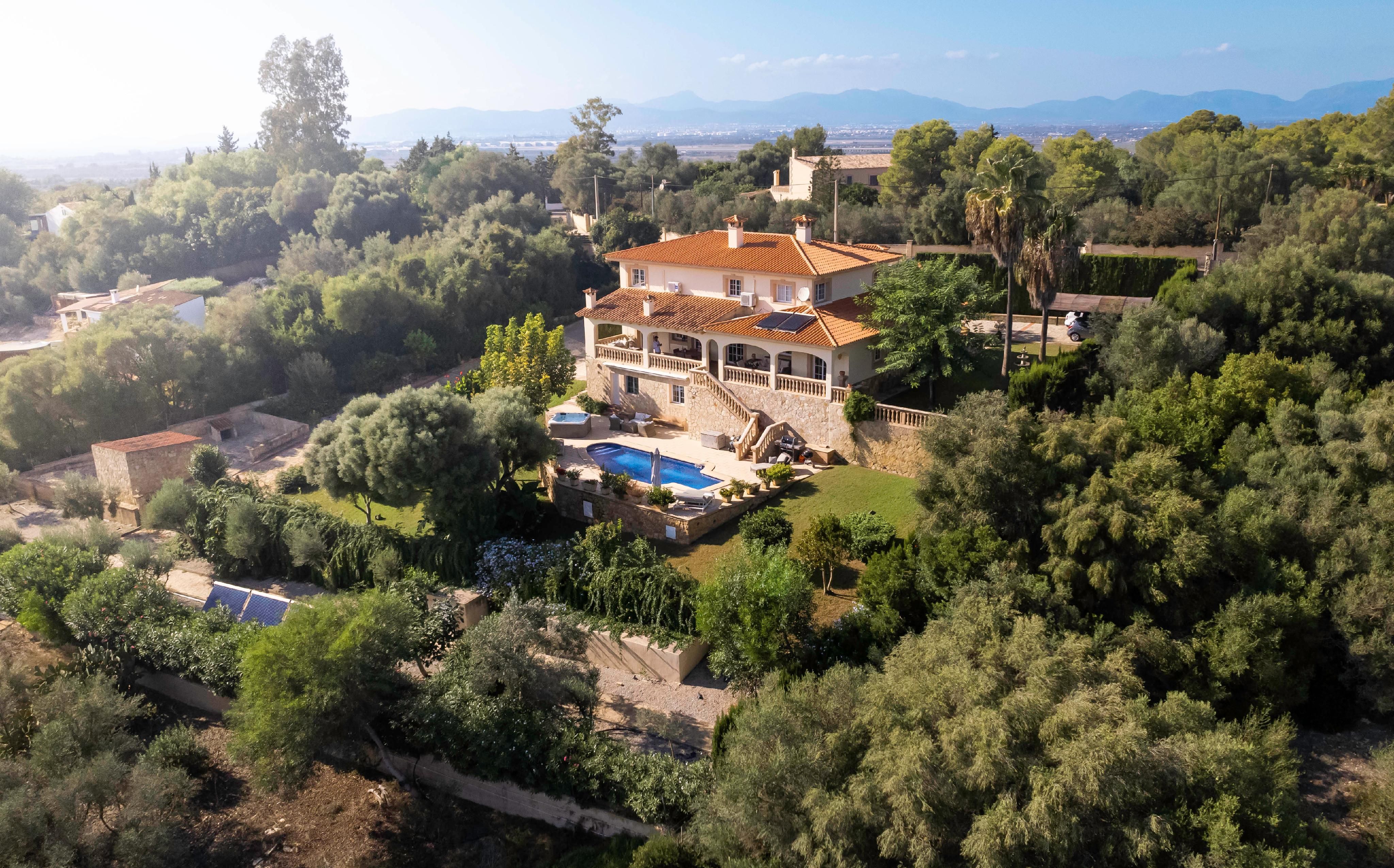 Je toevluchtsoord op het platteland, perfect verbonden met Palma en de stranden. Dit indrukwekkende vrijstaande huis presenteert zich in een charmante mediterrane stijl en biedt een uitzonderlijke combinatie van rustige privacy en uitstekende centrale verbindingen. Het is ideaal gelegen om de levendige hoofdstad Palma de Mallorca te bereiken, evenals het internationale vliegveld en de mooiste stranden op korte rijafstand. Hoogtepunten van de woning zijn ca. 263m3 woonruimte, verdeeld over vier slaapkamers, vijf badkamers plus een gastentoilet, ca. 65m2 overdekte terrassen, een kelder met ca. 158m2 die op vele manieren kan worden gebruikt en een totale bebouwde oppervlakte van bijna 500m2. Het huis biedt dus genoeg ruimte voor een groot gezin.