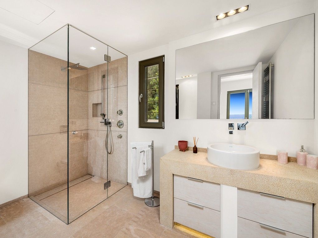 Deze uitzonderlijke en volledig gerenoveerde villa ligt op een uitstekende en rustige locatie. Het maakt indruk met zijn unieke combinatie van adembenemend uitzicht op zee, oriëntatie op het zuiden en uitstekende kwaliteit, waardoor bijna elke wens wordt vervuld. Tijdens de renovatie is de villa getransformeerd in een modern architectonisch ontwerp met lichtdoorstroomde kamers en warme kleurtonen. Er zijn alleen hoogwaardige materialen gebruikt: Natuurstenen vloeren, designarmaturen en een exclusieve designkeuken, allemaal geïntegreerd in een harmonieus designconcept. De buitenruimte biedt een overloopzwembad en ruime terrassen in verschillende richtingen, aantrekkelijk voor zowel zon- als schaduwzoekers. De villa heeft drie slaapkamers en drie badkamers, die allemaal zijn uitgerust volgens de hoogste normen. Een open haard in de woonkamer zorgt voor extra gezelligheid. Verdere extra's zijn: vloerverwarming in het hele huis op zonne-energie, intelligente home control technologie, airconditioning (warm/koud), satelliet-tv, een irrigatie- en verlichtingssysteem, een alarmsysteem, een gastentoilet en een garage.