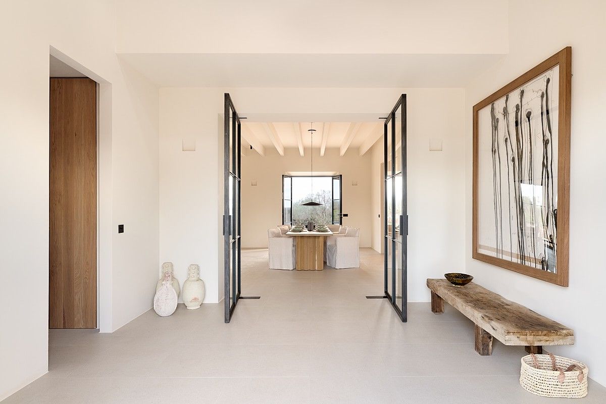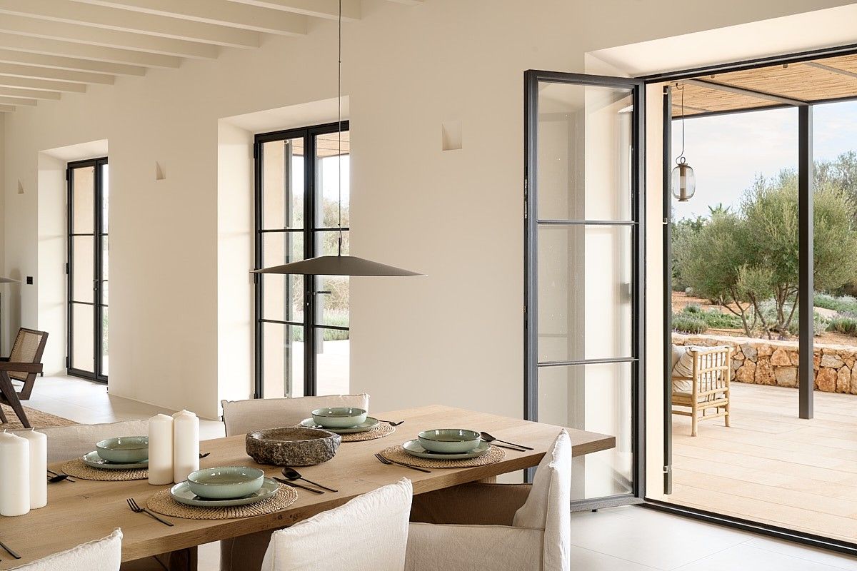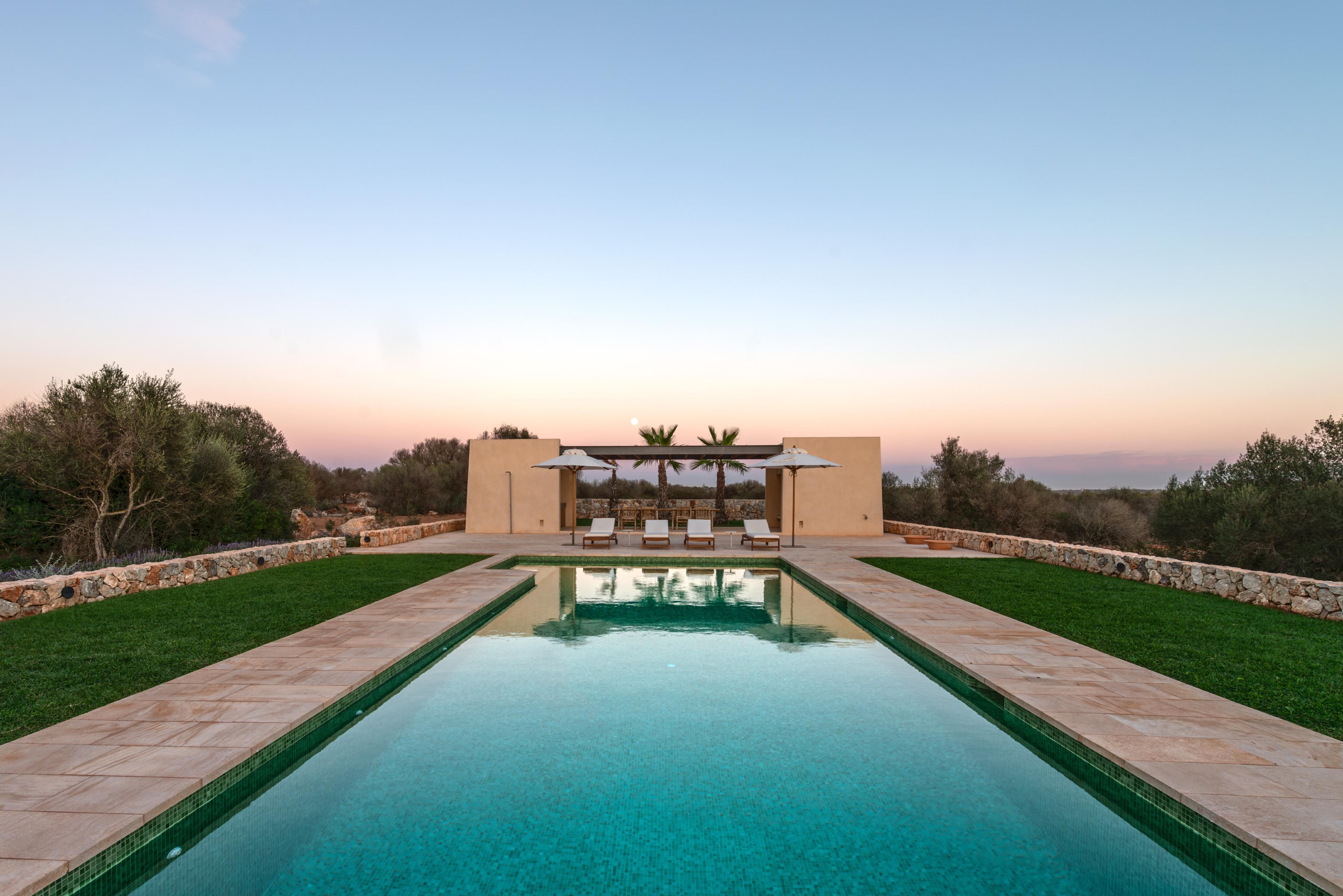 Deze moderne finca, een nieuwbouw met eerste bewoning met oplevering in 2023, ligt tussen Santanyi en Es Llombards op een perceel van ca. 53.000m² met prachtig uitzicht. Het pand onderscheidt zich door zijn hoogwaardige materialen en exclusieve inrichting in mediterrane stijl met designmeubels van fabrikanten als DePadova, Gervasoni, Ethimo en ByBlasco. De ruime entree leidt naar de woon- en eetkamer met aangrenzende keuken van het exclusieve merk Boffi. Hieraan grenst de voorbereidingskeuken met nog een koelkast en een wijnkoeler. In de zijvleugel van de begane grond bevinden zich drie slaapkamers, elk met een eigen badkamer. Op de bovenverdieping leidt een exclusieve kleedkamer naar de hoofdslaapkamer met eigen badkamer en directe toegang tot een prachtig terras op het zuiden. Er is ook een lichte studio op de bovenverdieping. Deze kan worden gebruikt als kinderkamer of studeerkamer. De finca op zonne-energie, die op slechts een paar minuten fietsen van Santanyi ligt, is gebouwd volgens de hoogste normen en biedt maximaal comfort. Twee luchtwarmtepompen zorgen voor vloerverwarming in het hele huis en centrale airconditioning in de slaapkamers. De buitenruimte, met verschillende, deels schaduwrijke terrassen en zitjes, ontvouwt zich als een ware mediterrane oase en biedt heerlijke plekken om te vertoeven. Een hoogtepunt is het mediterrane tuinontwerp met verlichtingsconcept, dat individueel kan worden uitgebreid. Langs olijf- en sinaasappelbomen, cipressen, rozemarijn en palmbomen bereik je het zwembad. Daar vind je een zwembad van 75 m² met een charmant poolhouse, inclusief een keukengedeelte, een gastentoilet, een douche en een bergruimte. Er zijn plannen om de garage om te bouwen tot een gastenverblijf met slaapkamer en badkamer en suite.