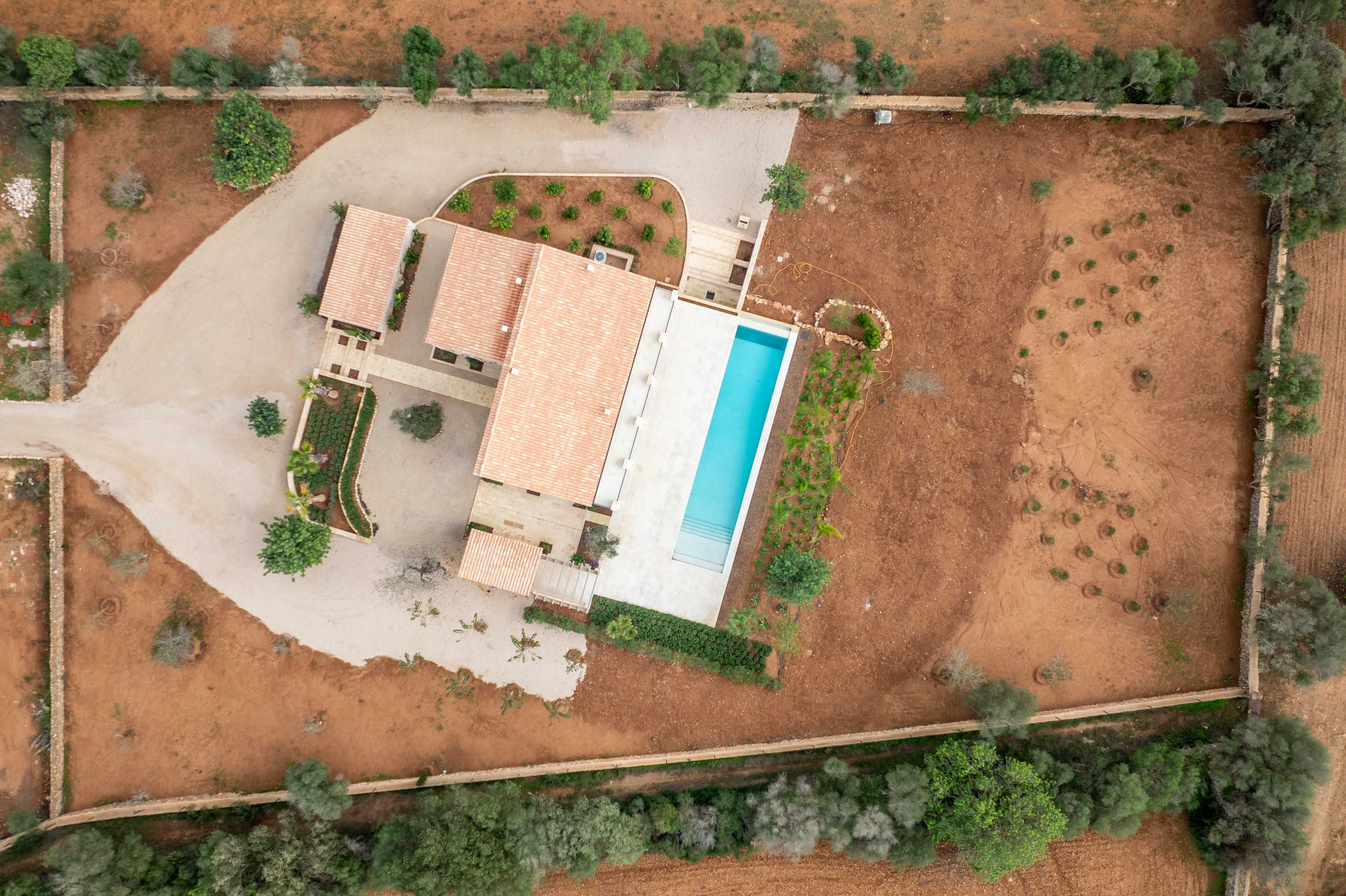 Deze exclusieve finca combineert op meesterlijke wijze traditie en moderne architectuur op een perceel van ongeveer 2,5 hectare en maakt indruk met zijn unieke ontwerp. De geselecteerde natuursteen uit de nabijgelegen steengroeven harmonieert perfect met hedendaagse bouwelementen en creëert een luxe sfeer die ook absolute privacy garandeert - op slechts een paar minuten afstand van de beste stranden, markten en restaurants van het eiland. Met een royale woonoppervlakte van ongeveer 400 m² biedt de woning indrukwekkende plafondhoogtes tot 6 meter en is verdeeld in verschillende open, lichtdoorstroomde kamers. De master suite met kleedruimte en luxe en-suite badkamer garandeert maximaal comfort. Drie andere gastenslaapkamers, elk met een eigen badkamer, bieden privacy voor familie en vrienden. De open keuken met aangrenzende bijkeuken is perfect geïntegreerd in de grote woon- en eetkamer, die extra warmte en gezelligheid uitstraalt dankzij een HÖXTER open haard. Een bijgebouw kan op verschillende manieren worden gebruikt - als garage, gastenkamer of studio. Het pand is ecologisch zelfvoorzienend en geoptimaliseerd voor efficiëntie, en wordt van energie voorzien door een eigen waterput, een 40 kW fotovoltaïsch systeem, een 20 kW accu en een 50 kW generator. De vloerverwarming, aangedreven door een warmtepomp, en het centrale airconditioningsysteem zorgen het hele jaar door voor comfort. Het ruime zwembadgedeelte met een zwembad van 20 x 4,5 meter nodigt je uit om te ontspannen. Gelegen op slechts drie kilometer ten noorden van het pittoreske dorpje Cas Concos, kun je hier genieten van absolute rust en privacy. Santanyí, Felanitx en Alqueria Blanca liggen op slechts tien minuten afstand, en de stranden en jachthavens van het eiland - waaronder Porto Colom, Porto Petro, Cala d'Or, Cala Mondragó en Es Trenc - bereik je in 15 tot 30 minuten. Het pand maakt niet alleen indruk met zijn exclusieve locatie, maar ook met zijn onbelemmerde uitzicht op het klooster van San Salvador, het Castell de Santueri en de majestueuze toppen van de Serra de Tramuntana - een ware oase van rust en luxe.