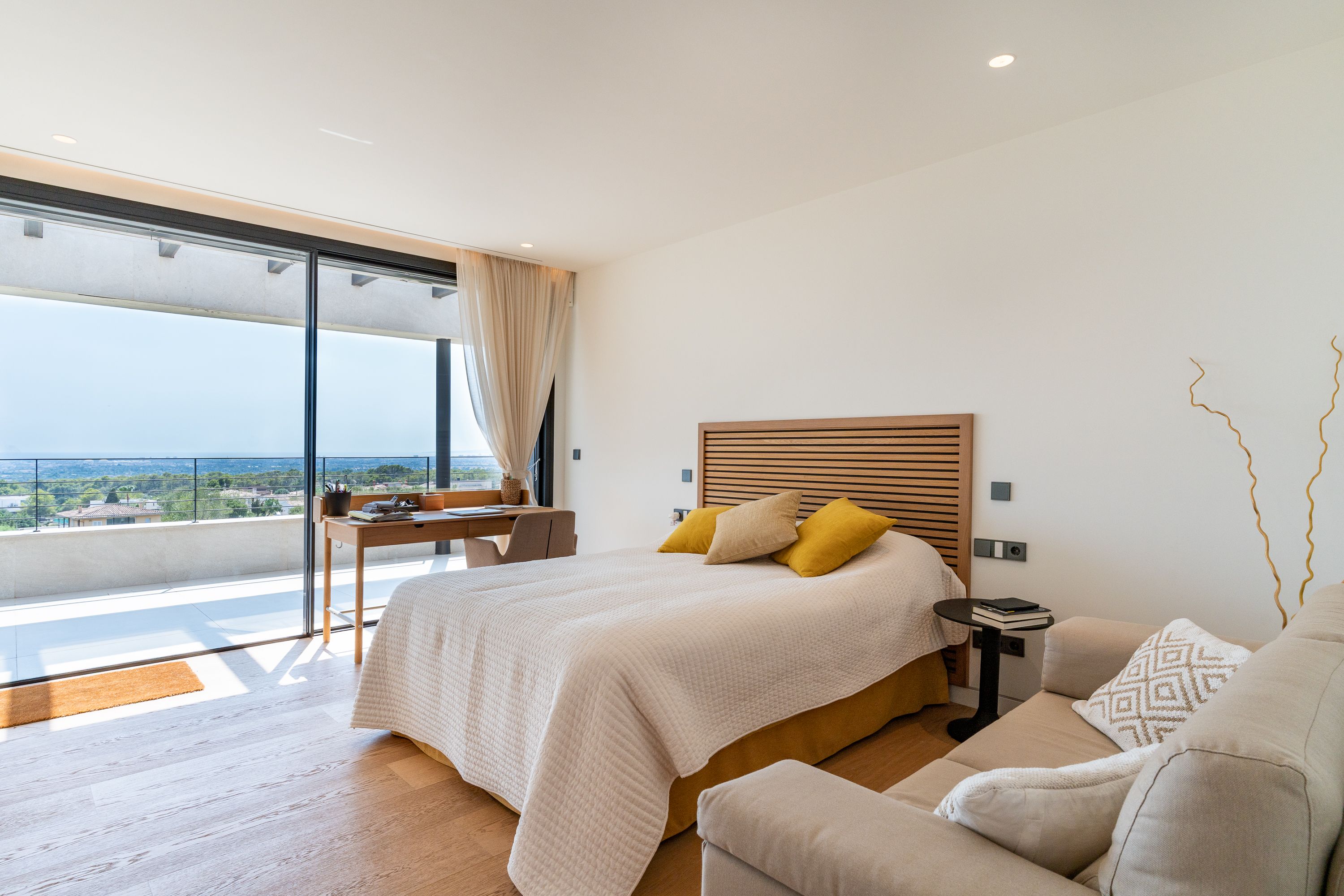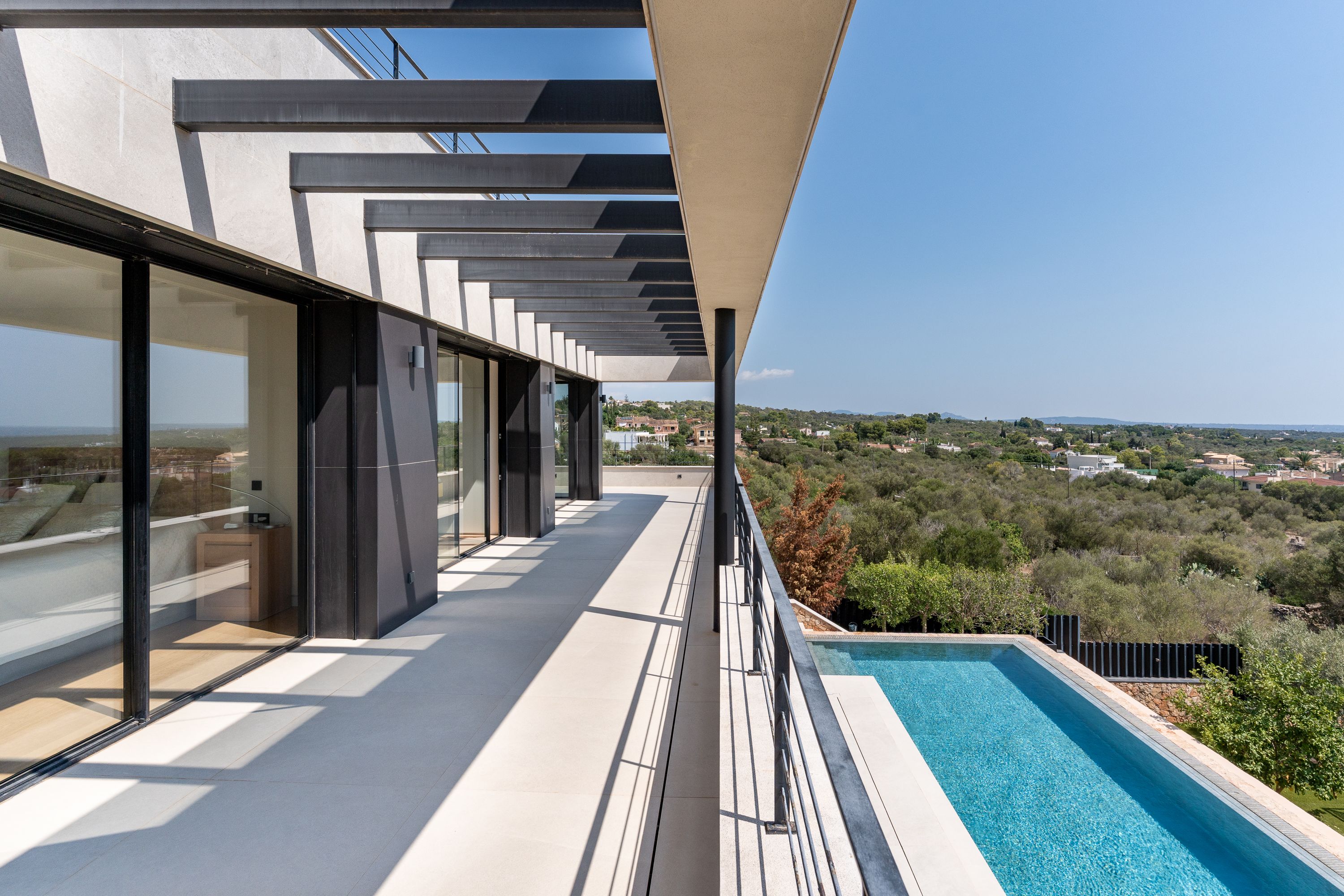 Deze uniek ontworpen villa in Sa Cabaneta is een luxueus toevluchtsoord dat privacy, licht en ruimte harmonieus combineert. Met indrukwekkend uitzicht op Palma en de baai biedt het de rust van een mediterrane omgeving zonder de nabijheid van de stad op te offeren.