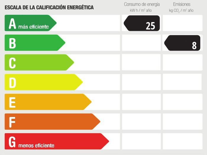 Bouwjaar: 2019 • Energieverbruiks index: 25.48 kWh/(m2*a) • CO2-uitstoot: 8.0 kg/m2 • CO2-emissie klasse: B • Energie-efficiëntieklasse: A