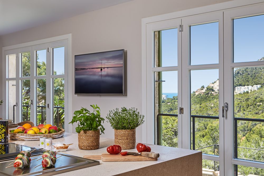 Dit smaakvol gerenoveerde huis op Montport in Port Andratx met een woonoppervlakte van 192 m² ligt op een perceel van 1430 m². De villa met 2 slaapkamers en 2 badkamers, beide en suite, biedt luxe wooncomfort in de beste omstandigheden. Een extra slaapkamer met eigen badkamer ligt naast de villa. Het pand maakt indruk met zijn elegante sfeer en de naadloze overgang tussen binnen- en buitenruimtes. De hoogwaardige inrichting met natuurstenen vloeren en een volledig uitgeruste keuken met wijnbodega, met apart sanitair en ingebouwde kasten, benadrukken het luxueuze karakter. Het pand biedt uitzicht op zee en de bergen. Hoogtepunten zijn de privétuin, het uitnodigende zoutwaterzwembad en de open haard, die zorgt voor gezellige avonden. De complete renovatie uitgevoerd in 2020 garandeert maximaal comfort. Extra voorzieningen zoals een alarmsysteem en een veiligheidsdeur zorgen voor een hoge mate van veiligheid. Een aparte bijkeuken binnen maakt het aanbod compleet. Een garage en een parkeerplaats bieden ruimte voor voertuigen. Deze unieke woning combineert mediterrane stijl met moderne luxe en biedt een ongeëvenaarde woonervaring in Port Andratx. Er is een bouwvergunning voor een gastenverblijf met 136 m2 woonruimte en een extra zwembad. Foto's door Marco Richter.