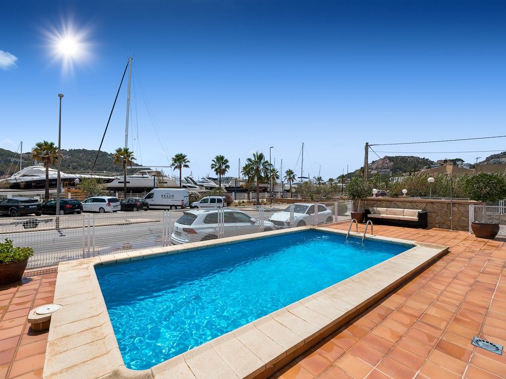 De flat maakt indruk met zijn locatie en een prachtig uitzicht op de haven overdag en 's nachts! De flat is gerenoveerd in 2024 en ligt in een klein complex. De woning heeft een ruime open woon- en eetkamer met terras en 2 slaapkamers, elk met een eigen badkamer en suite. Winkels, restaurants, bars en de beroemde jachtclub "Club de Vela" liggen op loopafstand. Speciale kenmerken zijn onder andere: Airconditioning warm/koud, vloerverwarming, 2 badkamers en suite, een Amerikaanse keuken, 1 parkeerplaats en een gemeenschappelijk zwembad. Gestoffeerd.