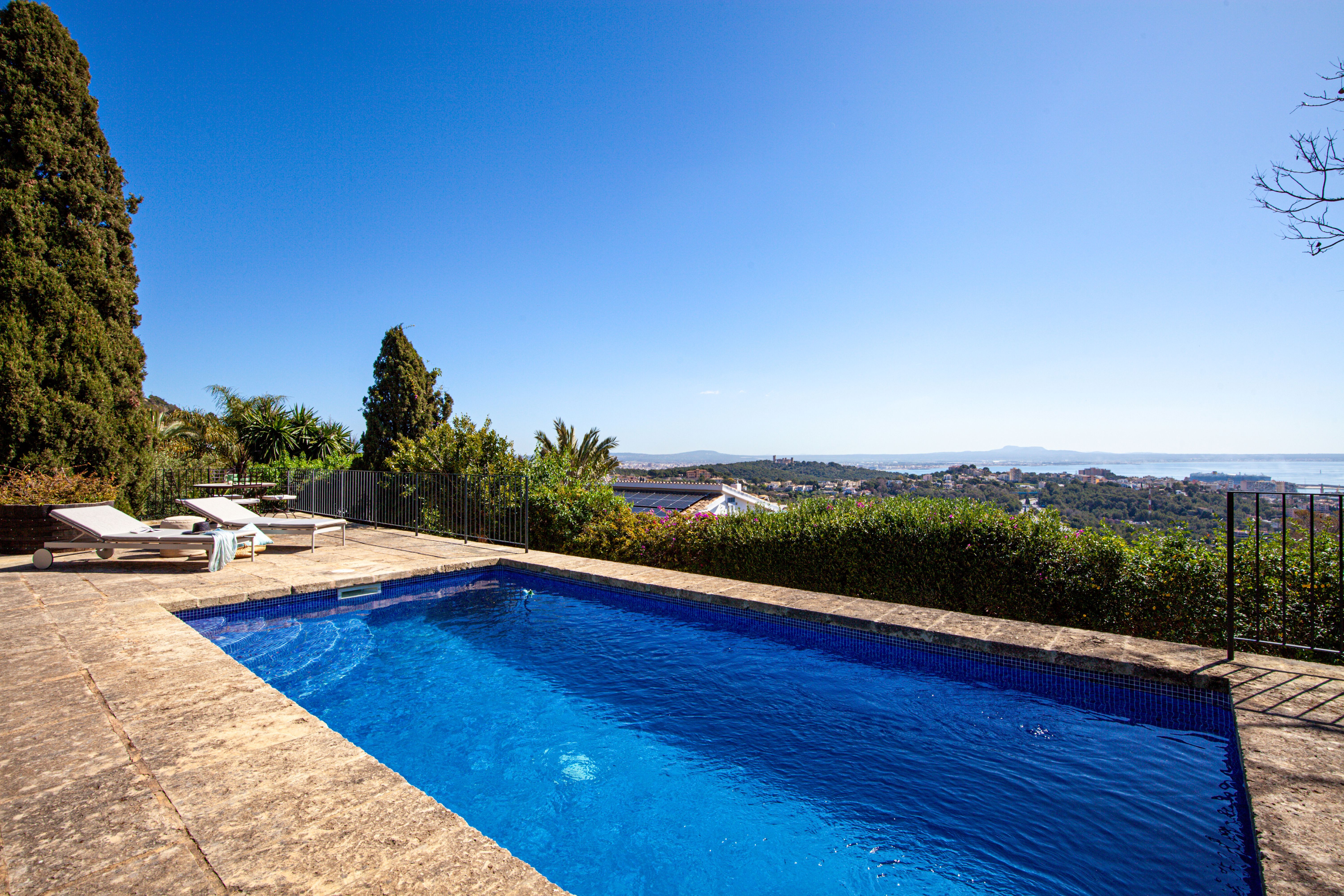 Deze prachtige finca uit 1930 is gerenoveerd met veel aandacht voor detail. De woning ligt op een perceel van ca. 1800m2 met absolute privacy en toch in de directe omgeving van Palma. Het hoofdhuis bestaat uit ruime kamers, die zijn onderverdeeld in twee slaapkamers met eigen badkamer en een open woon- en eetkamer met toegang tot het terras. In het gastenverblijf is er nog een slaapkamer met badkamer en prachtig uitzicht. Er is nog een kamer op het zwembadniveau, die ook kan worden gebruikt als slaapkamer of als aparte kamer. Verdere kenmerken: Centrale airconditioning warm/koud, elektrische radiatoren, open haard, vloerverwarming in de badkamers, wasmachine en droger.