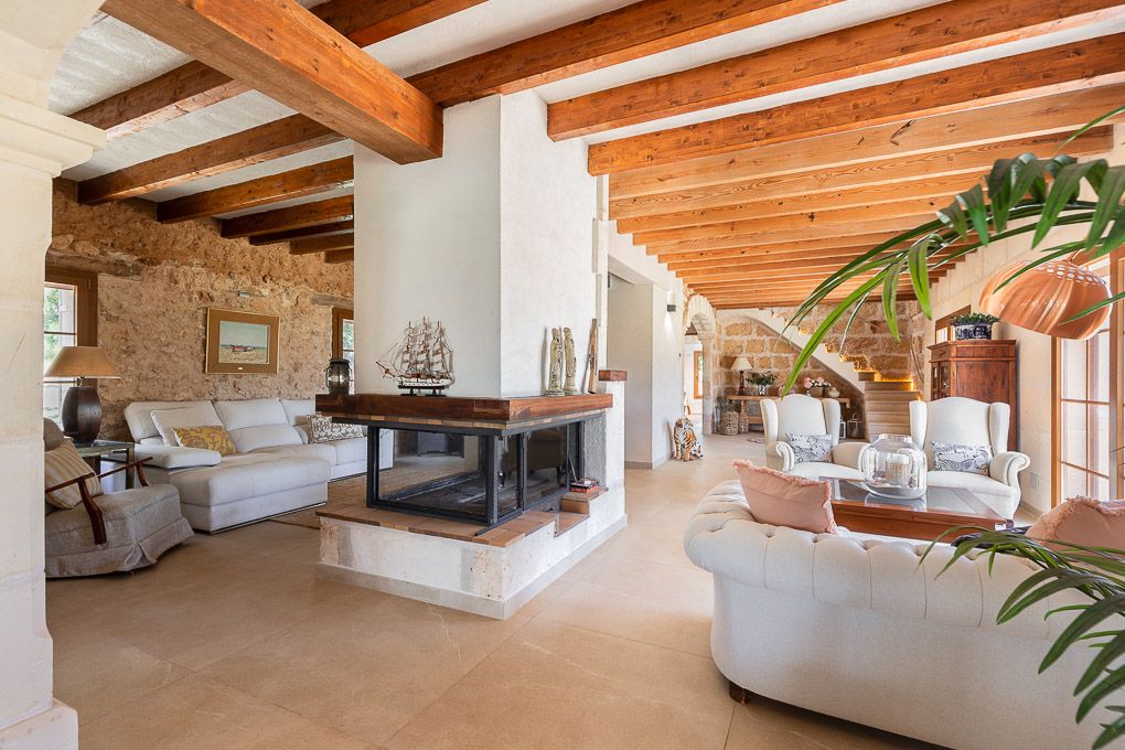 Deze fantastische finca ligt tussen Llubi en Inca en biedt een goede verbinding met de stranden en Palma. Het is gerenoveerd in 2022 en veel originele details zijn bewaard gebleven en gecombineerd met een moderne stijl. De omliggende velden worden bewerkt, men geniet hier van een prachtig weids uitzicht in de natuur. Het huis is voorzien van vloerverwarming (olie) en airconditioning, de elektriciteit wordt ondersteund door zonnepanelen. Op de begane grond bevindt zich de open woonkamer met grote open haard, eethoek en keuken met berging en bijkeuken. Het overloopzwembad met een charmant BBQ-huisje maakt de prachtige buitenruimte compleet. Verder bevinden zich op de begane grond de grote ouderslaapkamer met badkamer en inloopkast en een gastentoilet. Op de eerste verdieping is er een open galerieruimte, die momenteel wordt gebruikt als bibliotheek, evenals vier slaapkamers en twee badkamers, waarvan een en suite. Andere kenmerken: open keuken en woonkamer, alarmsysteem, vloerverwarming, AC, schoorsteen.