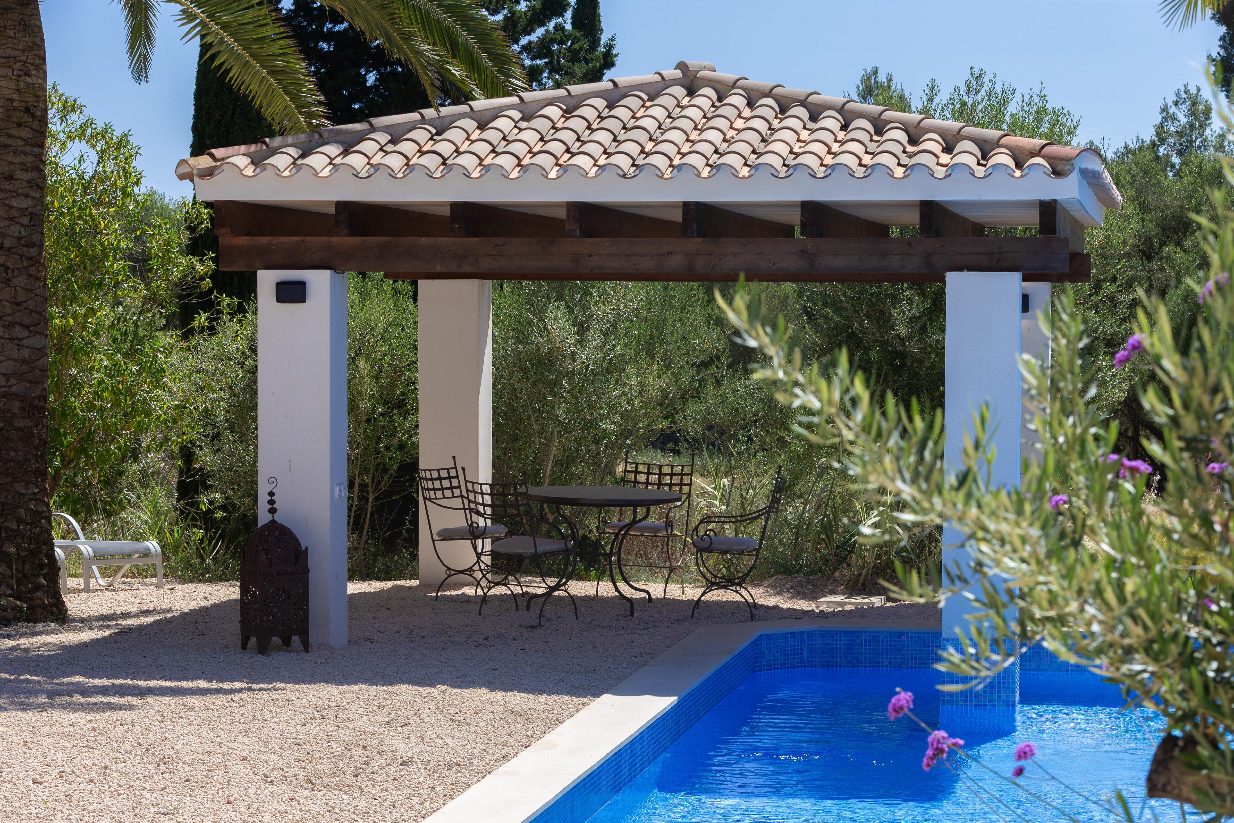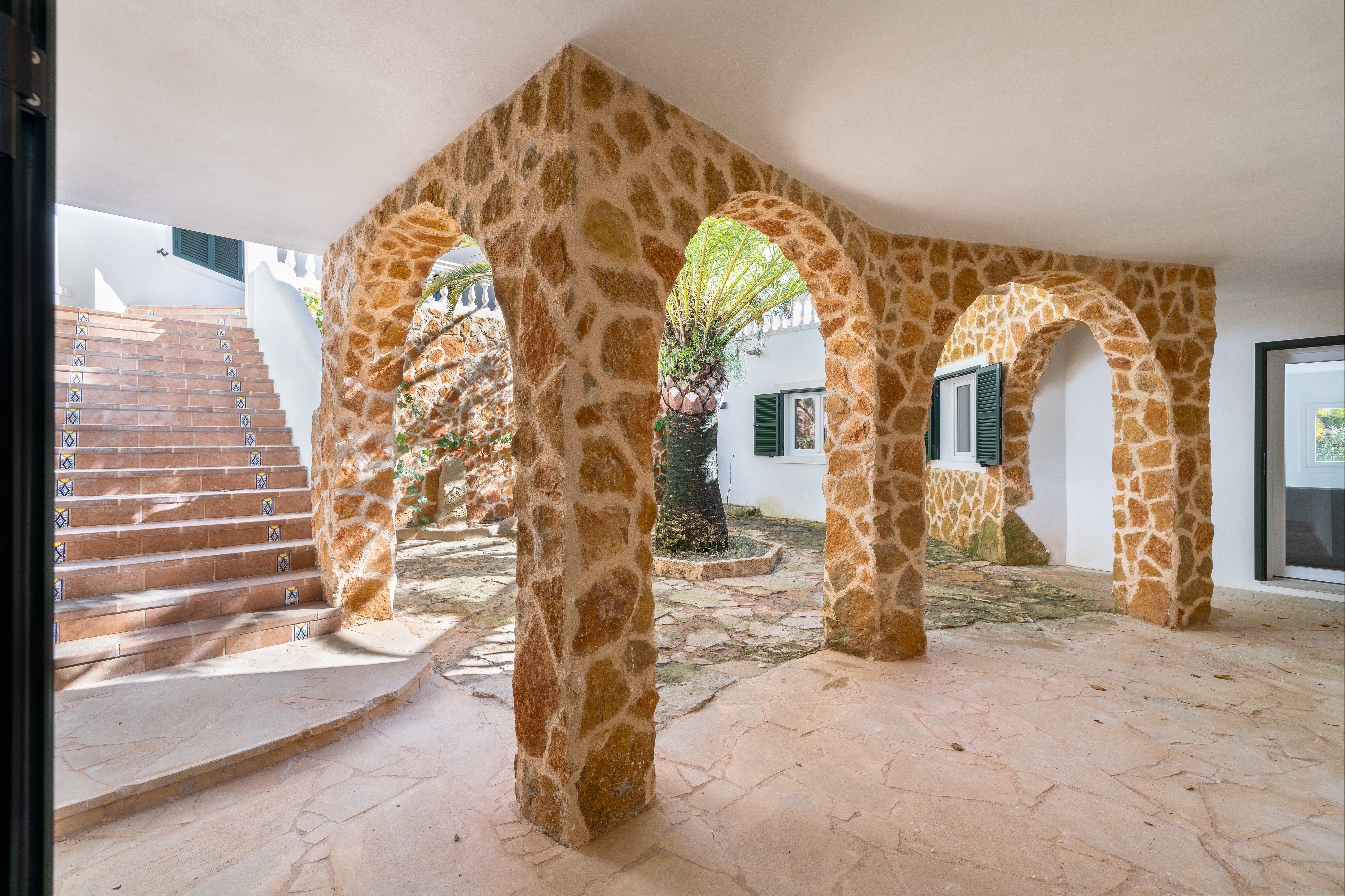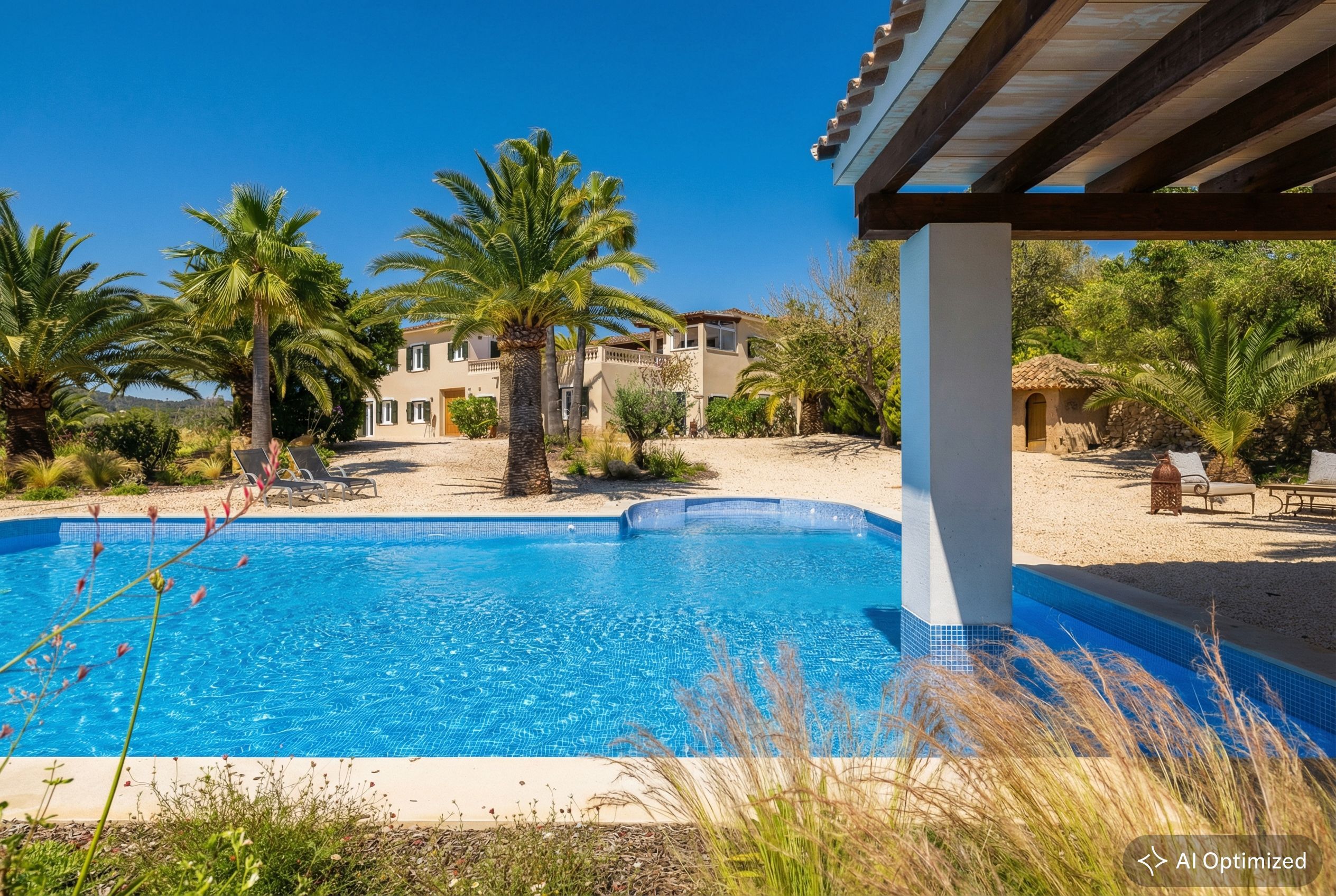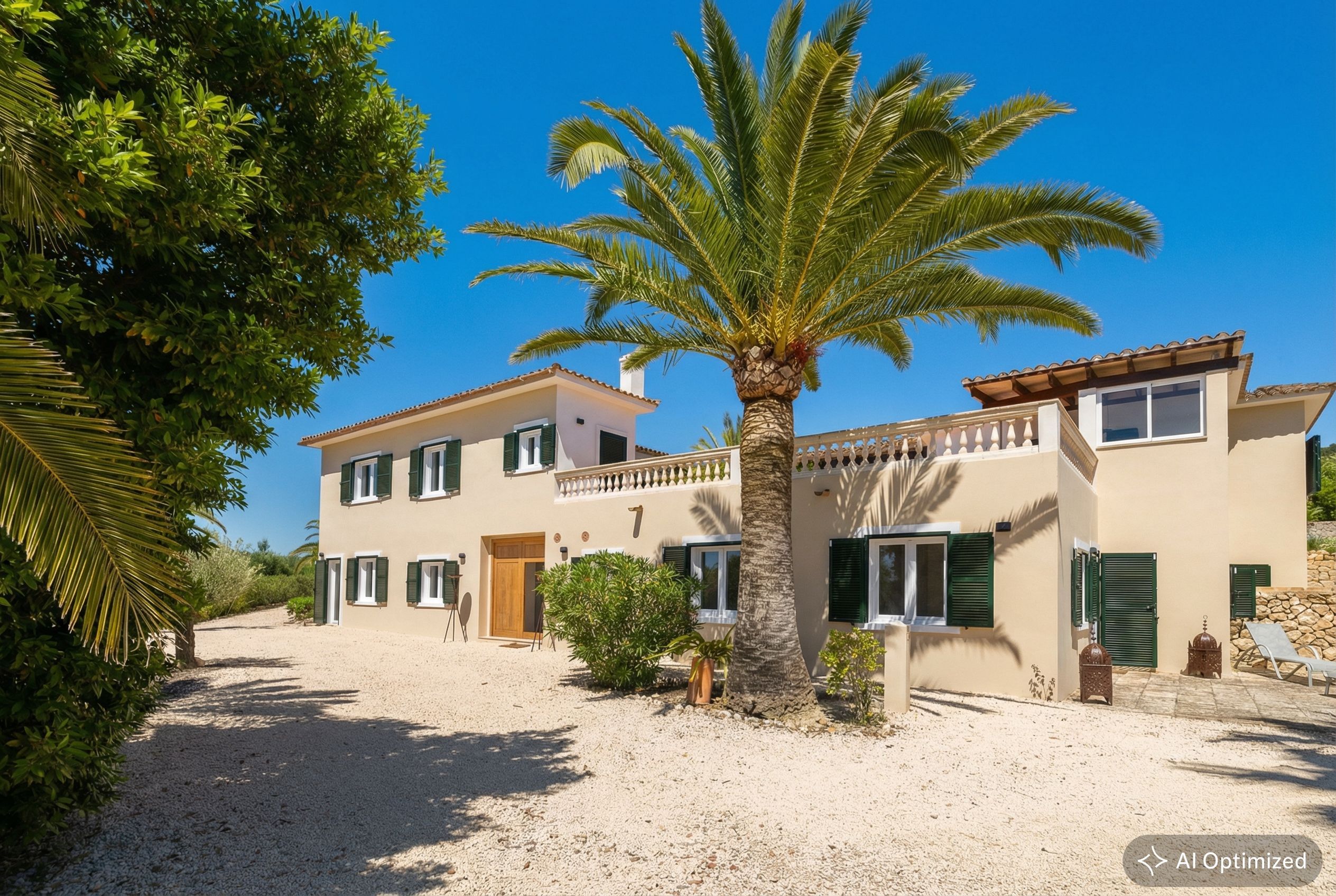 Exclusief landhuisjuweel in Llucmajor - Mediterrane flair ontmoet moderne elegantie. Dit liefdevol gerenoveerde landhuis aan de rand van Llucmajor is een echt juweeltje dat verrukt met zijn onmiskenbare combinatie van mediterrane charme en modern design. Een idyllische oase van rust die privacy, stijl en natuur harmonieus combineert. Het ruime pand strekt zich uit over twee verdiepingen en is onlangs gemoderniseerd met een scherp gevoel voor esthetiek en kwaliteit. Zodra je binnenkomt, word je begroet door een lichte, moderne keuken die naadloos overloopt in de open woon- en eetruimte. Vanaf hier heb je direct toegang tot de uitnodigende buitenruimte. De ruime slaapkamers bieden niet alleen een buitengewoon gevoel van ruimte, maar ook een adembenemend uitzicht. De elegante badkamers, uitgerust met hoogwaardige materialen zoals stenen wastafels en sfeervolle LED-verlichting, zijn kleine wellnessoases. Aan alles is tot in het kleinste detail gedacht om een bijzonder wooncomfort te creëren. Een pittoreske binnenplaats met romantische natuurstenen bogen en een ruim dakterras met een nieuwe buitenkeuken nodigen je uit om te genieten van de mediterrane sfeer - of het nu gaat om ontspannende momenten alleen of gezellig samenzijn met vrienden en familie. De goed onderhouden tuin, omzoomd met imposante palmbomen, leidt je direct naar het zwembad. Een gezellige veranda en een stijlvolle chill-out ruimte wachten hier op je - perfect om tot rust te komen en te genieten van het leven. Dit unieke toevluchtsoord is meer dan alleen een huis - het is een plek waar mediterrane levensvreugde samenkomt met een moderne woonambiance. Wacht niet langer: realiseer je droom van het perfecte thuis!