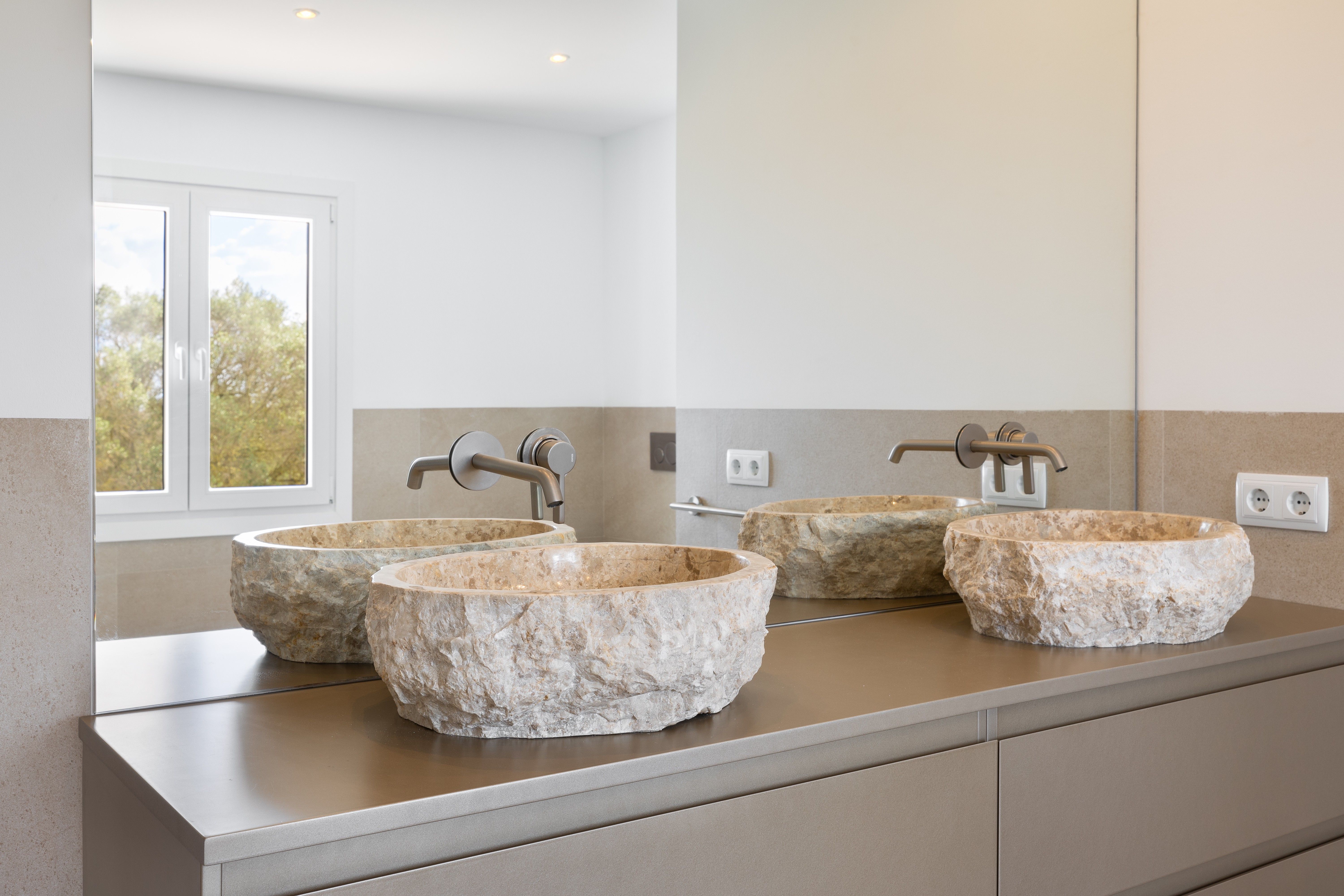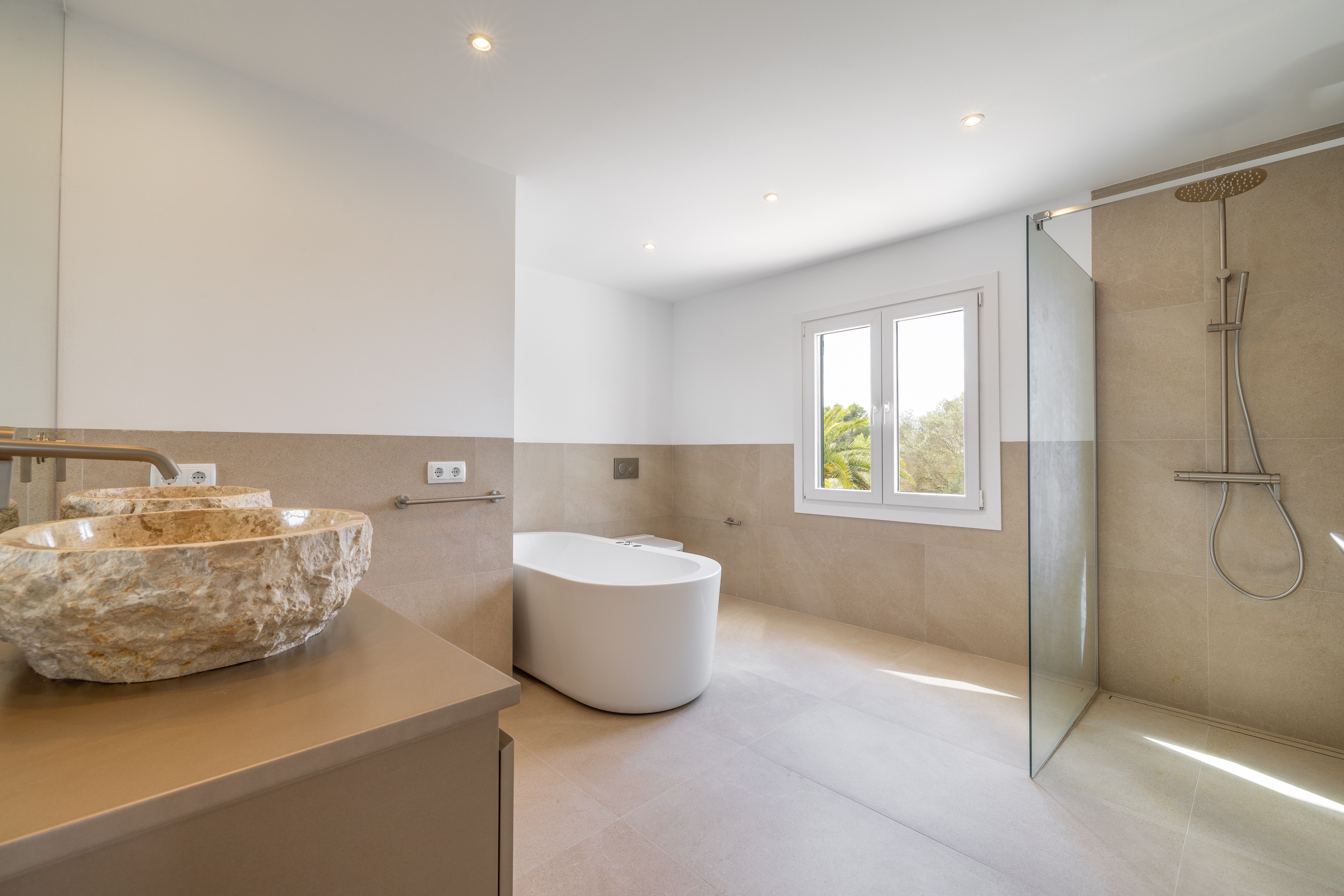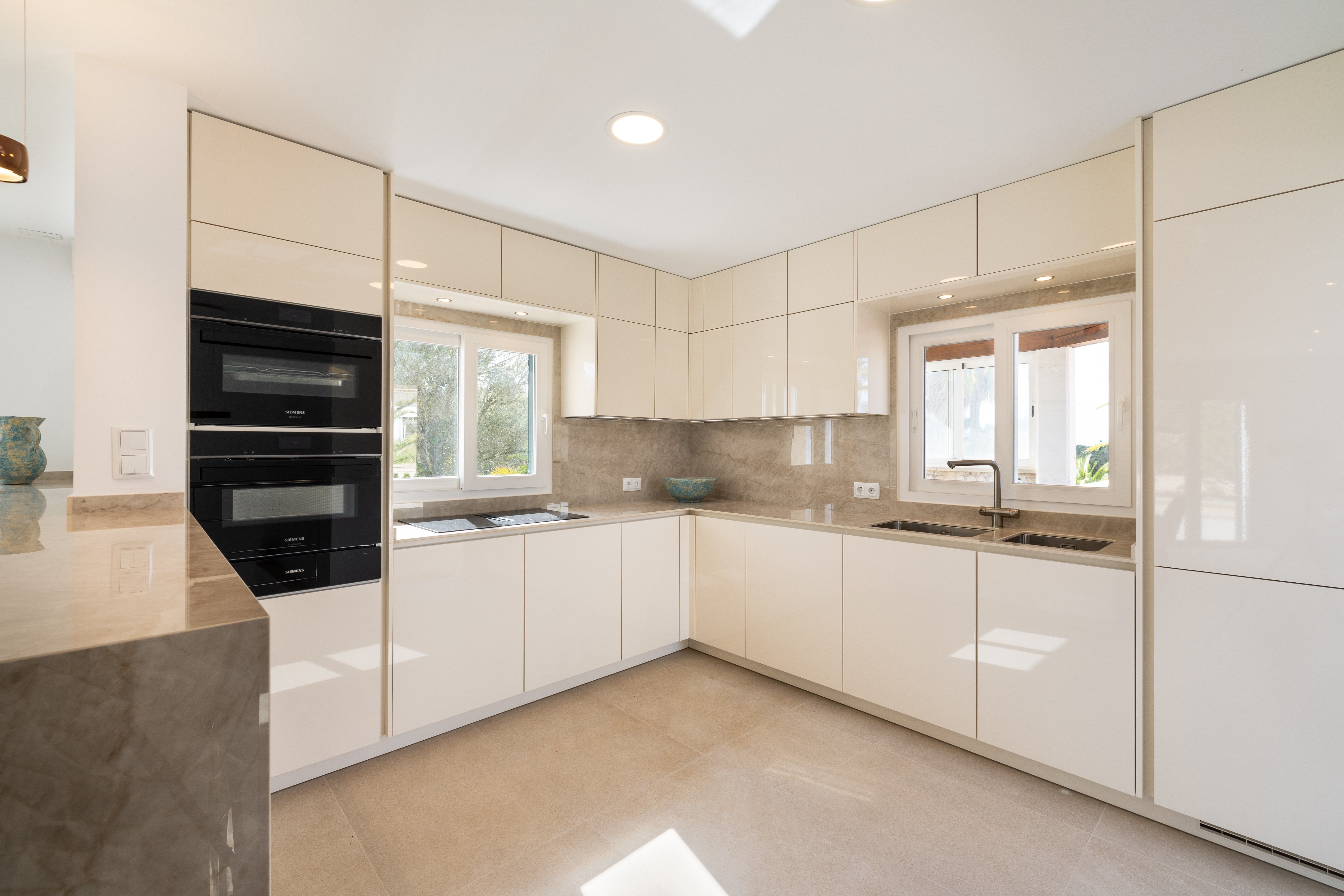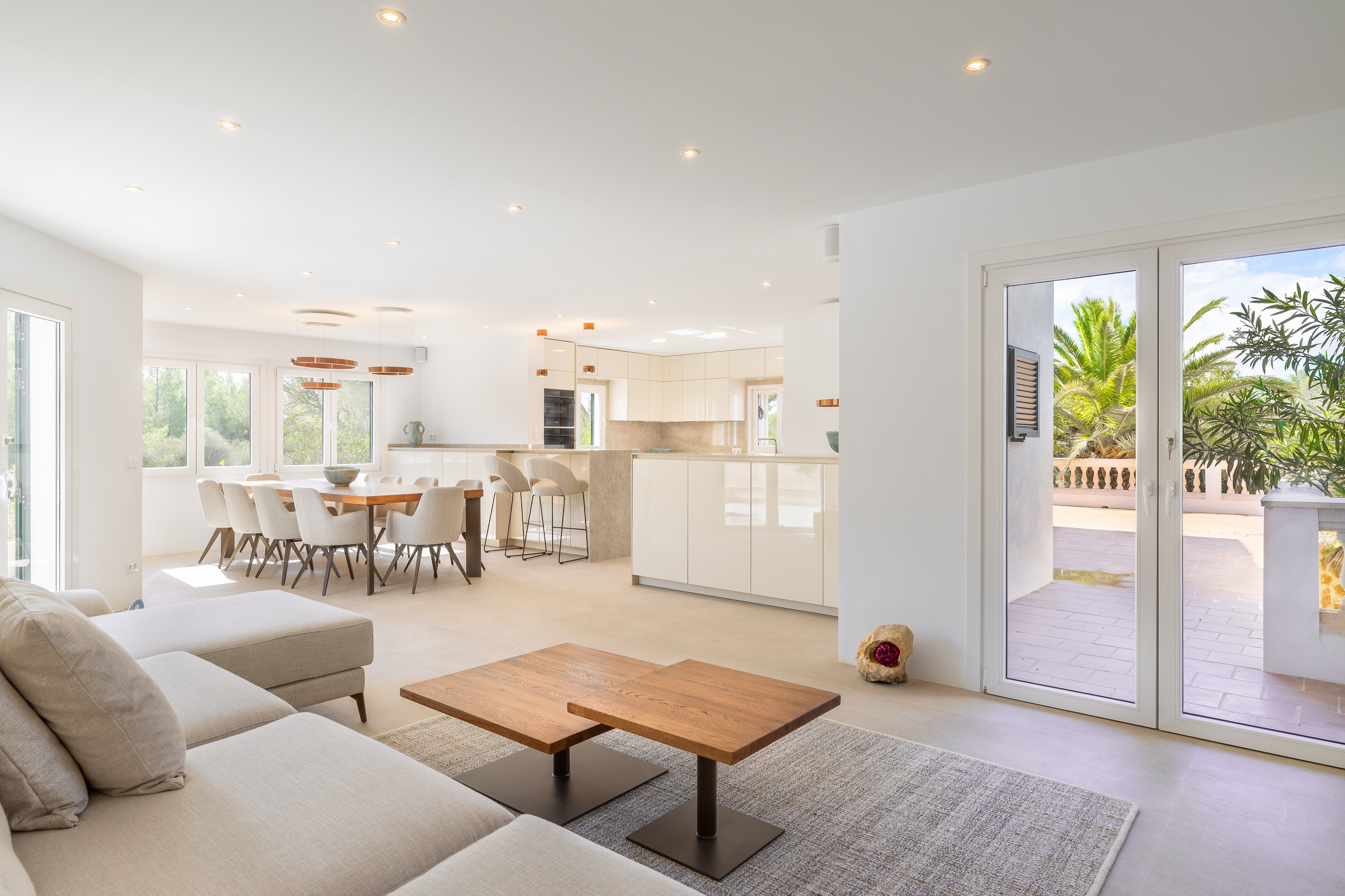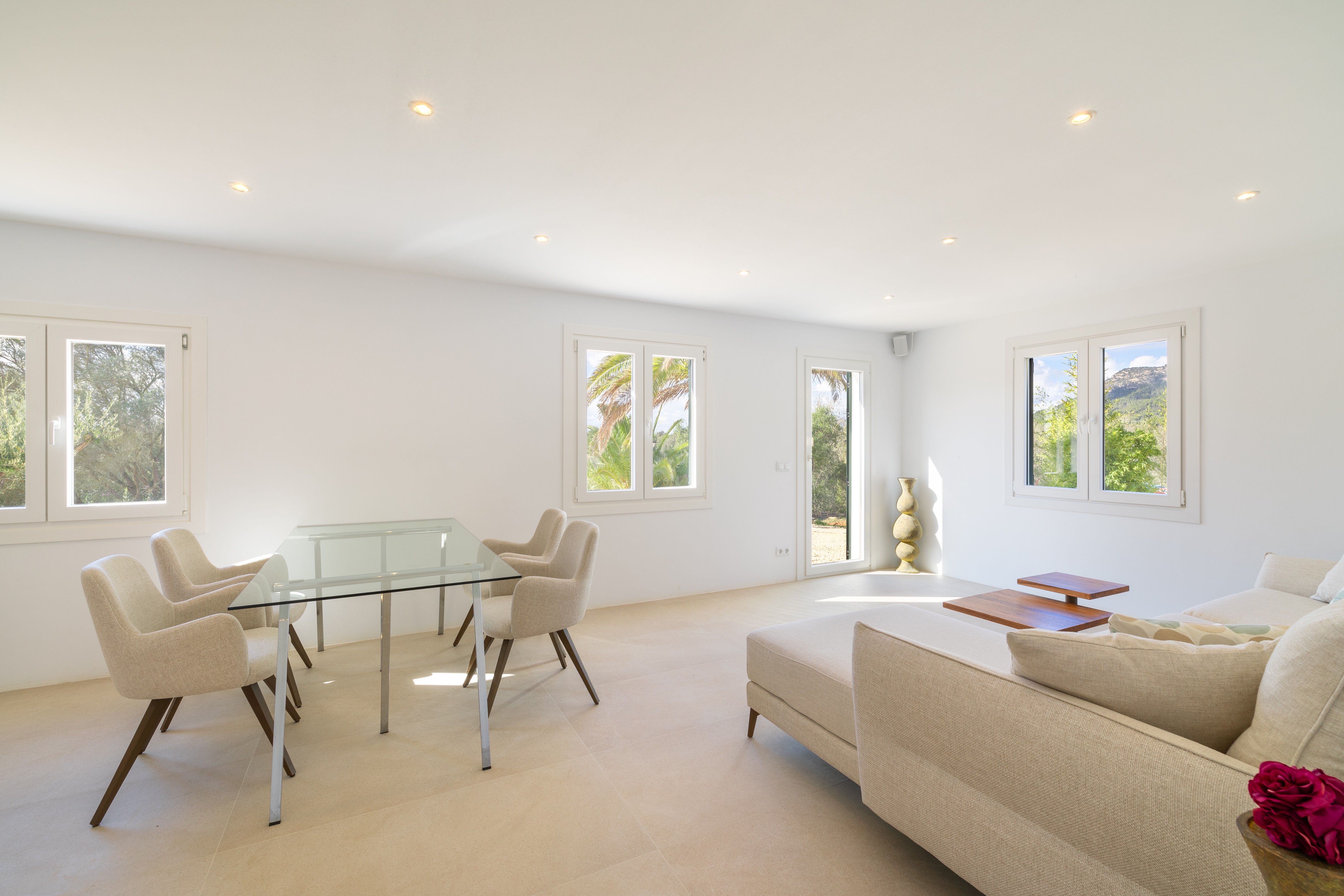 Exclusief landhuisjuweel in Llucmajor - Mediterrane flair ontmoet moderne elegantie. Dit liefdevol gerenoveerde landhuis aan de rand van Llucmajor is een echt juweeltje dat verrukt met zijn onmiskenbare combinatie van mediterrane charme en modern design. Een idyllische oase van rust die privacy, stijl en natuur harmonieus combineert. Het ruime pand strekt zich uit over twee verdiepingen en is onlangs gemoderniseerd met een scherp gevoel voor esthetiek en kwaliteit. Zodra je binnenkomt, word je begroet door een lichte, moderne keuken die naadloos overloopt in de open woon- en eetruimte. Vanaf hier heb je direct toegang tot de uitnodigende buitenruimte. De ruime slaapkamers bieden niet alleen een buitengewoon gevoel van ruimte, maar ook een adembenemend uitzicht. De elegante badkamers, uitgerust met hoogwaardige materialen zoals stenen wastafels en sfeervolle LED-verlichting, zijn kleine wellnessoases. Aan alles is tot in het kleinste detail gedacht om een bijzonder wooncomfort te creëren. Een pittoreske binnenplaats met romantische natuurstenen bogen en een ruim dakterras met een nieuwe buitenkeuken nodigen je uit om te genieten van de mediterrane sfeer - of het nu gaat om ontspannende momenten alleen of gezellig samenzijn met vrienden en familie. De goed onderhouden tuin, omzoomd met imposante palmbomen, leidt je direct naar het zwembad. Een gezellige veranda en een stijlvolle chill-out ruimte wachten hier op je - perfect om tot rust te komen en te genieten van het leven. Dit unieke toevluchtsoord is meer dan alleen een huis - het is een plek waar mediterrane levensvreugde samenkomt met een moderne woonambiance. Wacht niet langer: realiseer je droom van het perfecte thuis!