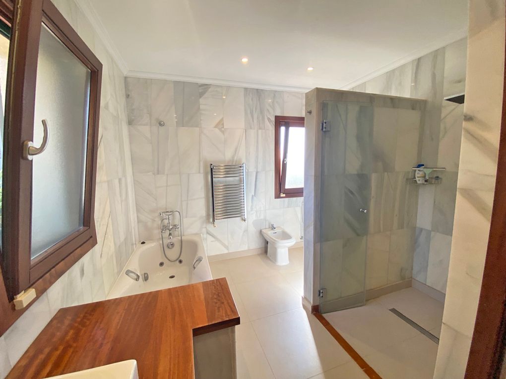 Deze finca ligt in Puntiro vlakbij de hoofdstad Palma en laat niets te wensen over. Op een grondstuk van 9.000 m² zijn er verschillende buitenruimtes met zitjes en uitzicht over de baai van Palma. De liefdevol aangelegde tuin en een chloorzwembad worden verzorgd door een tuinman, die bij de huurprijs is inbegrepen. Er is een dubbele garage met toegang tot het huis. Op de begane grond is er een grote woonkamer en eetkamer met open keuken, evenals 4 slaapkamers en een gastentoilet en 2 badkamers. Vanuit alle kamers heb je toegang tot het terras. Op de 1e verdieping is er een tweede woonkamer. Het hele huis is voorzien van centrale verwarming op olie en bovendien hebben alle slaapkamers airconditioners. Het huis wordt direct gemeubileerd verhuurd. BESCHIKBAAR VAN OKTOBER TOT APRIL